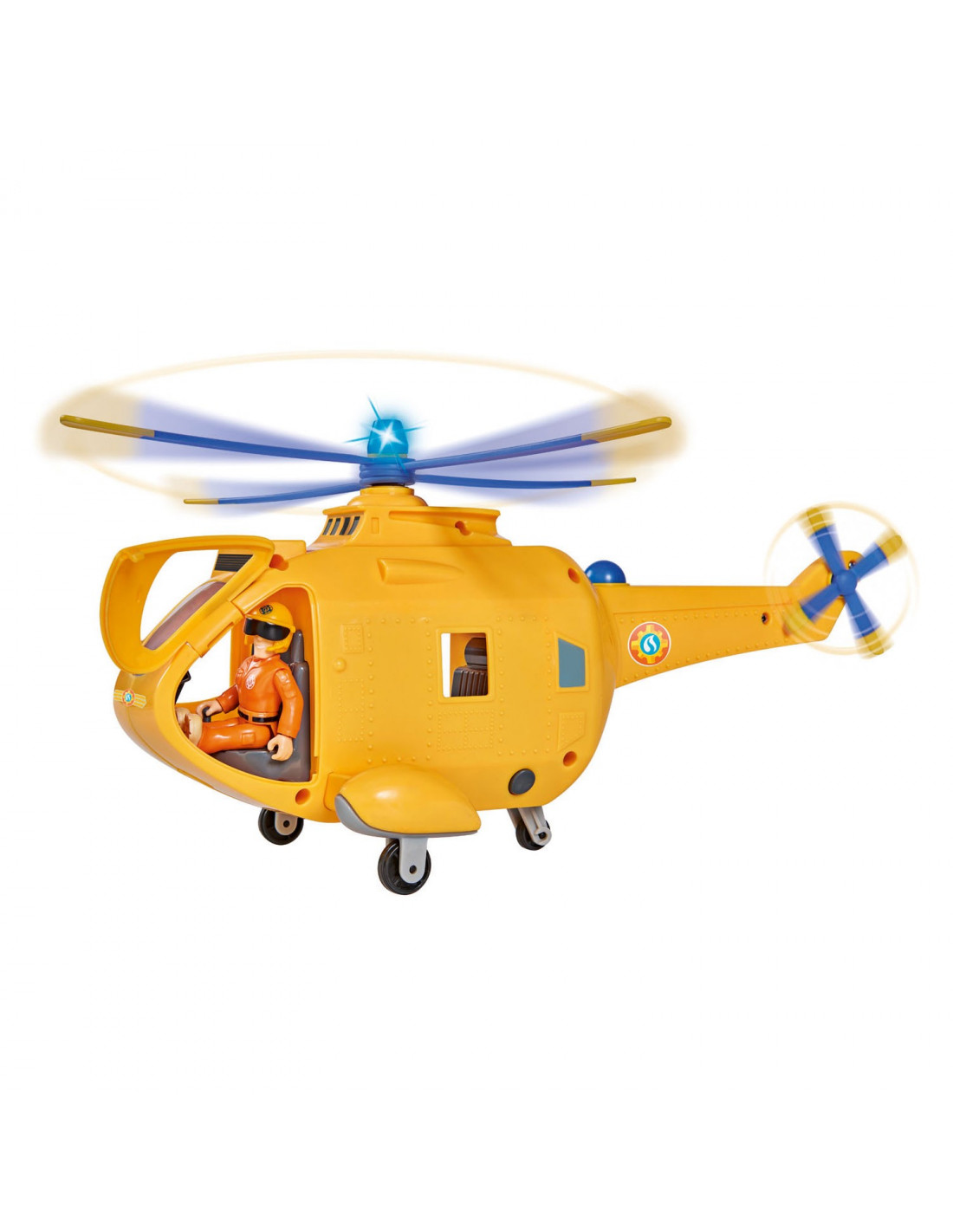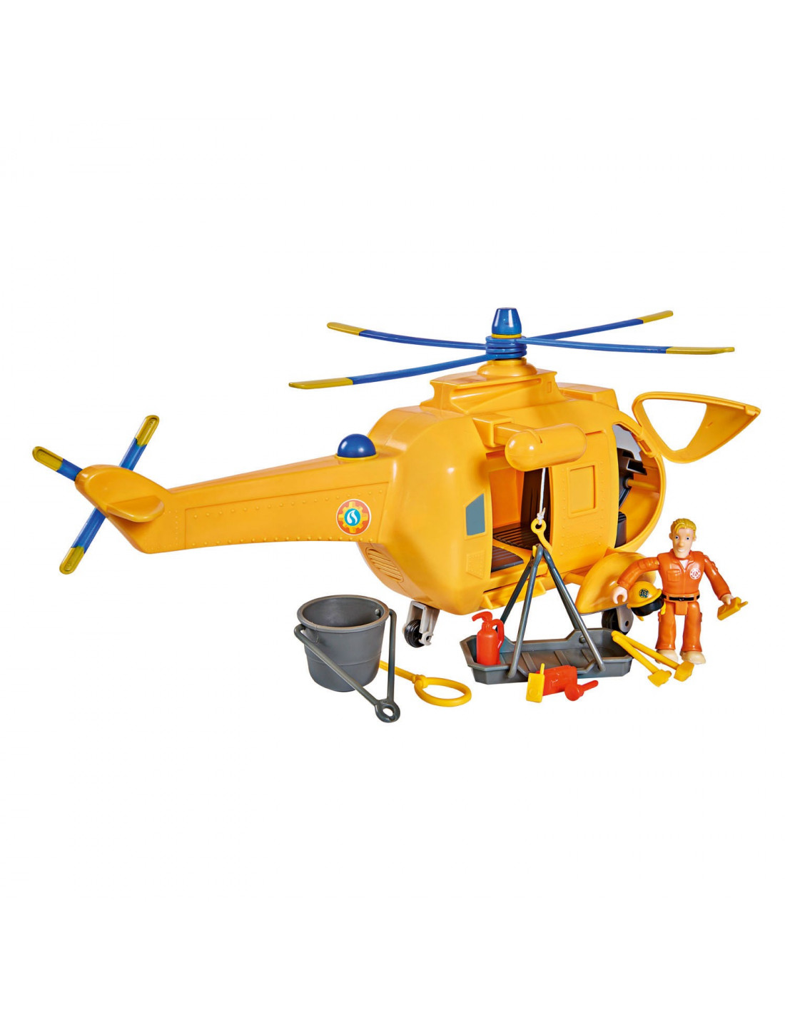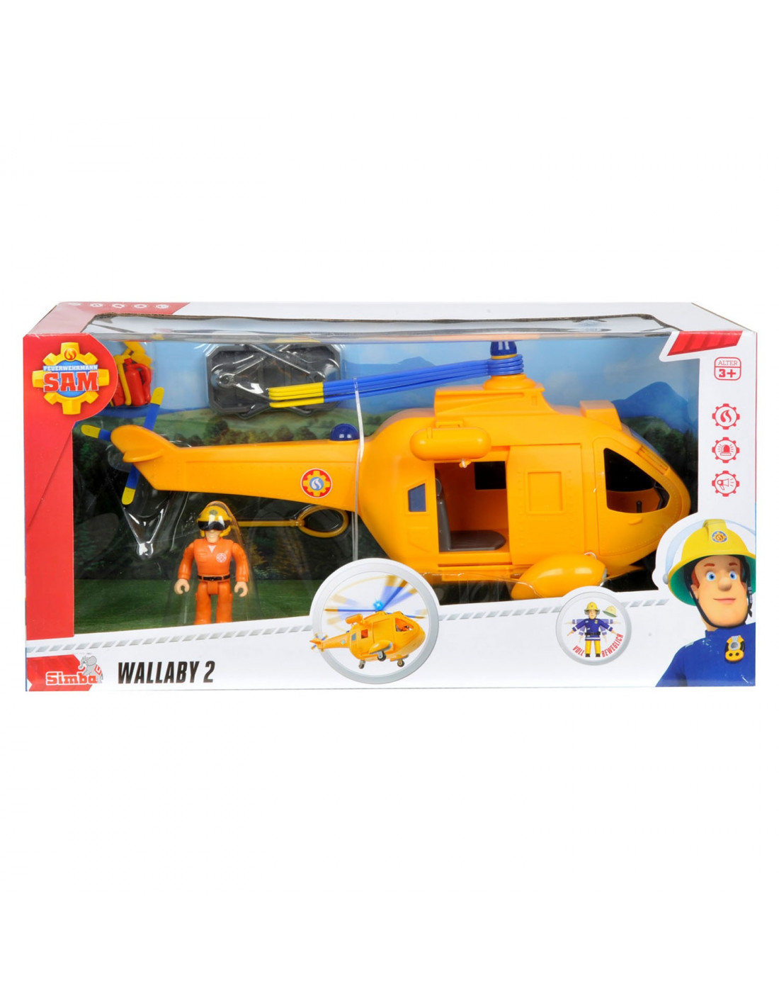 Ga op een spannend reddingsavontuur met Brandweerman Sam met deze Wallaby helikopter. Brandweerman Sam stuurt vandaag speelfiguur Tom op pad met de helikopter. Vlieg naar het rampgebied, laat je via de takel naar beneden zakken en red de drenkelingen uit het water. Dankzij de speciale geluiden en zwaailampen hoor en zie je de helikopter al van verre aankomen. Inclusief accessoires zoals een brancard, een lus, gereedschap, een emmer en een brandblusser. Batterijen niet inbegrepen.
