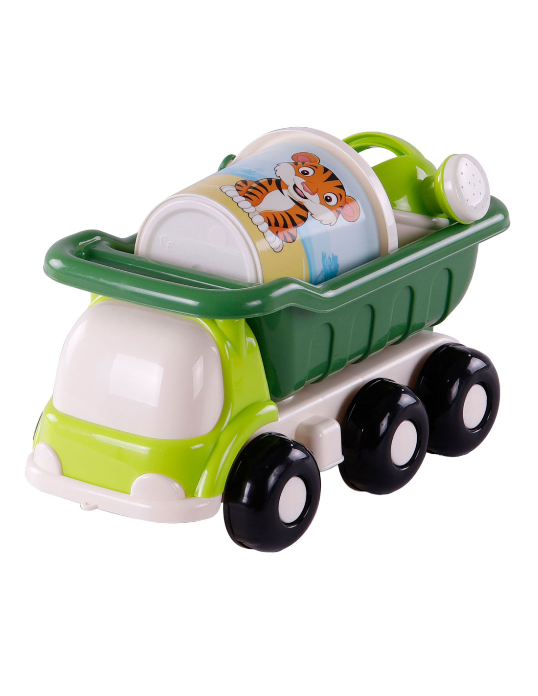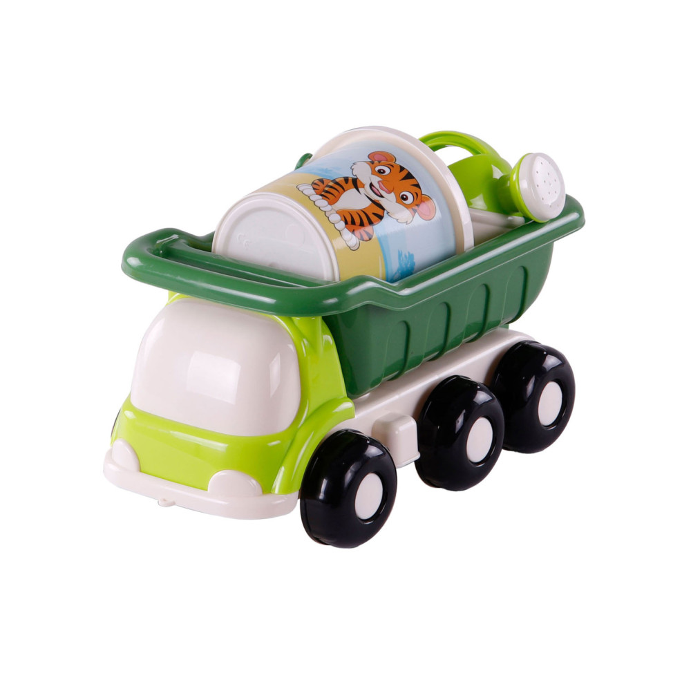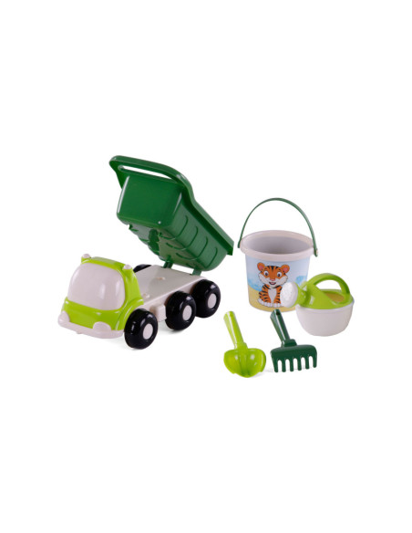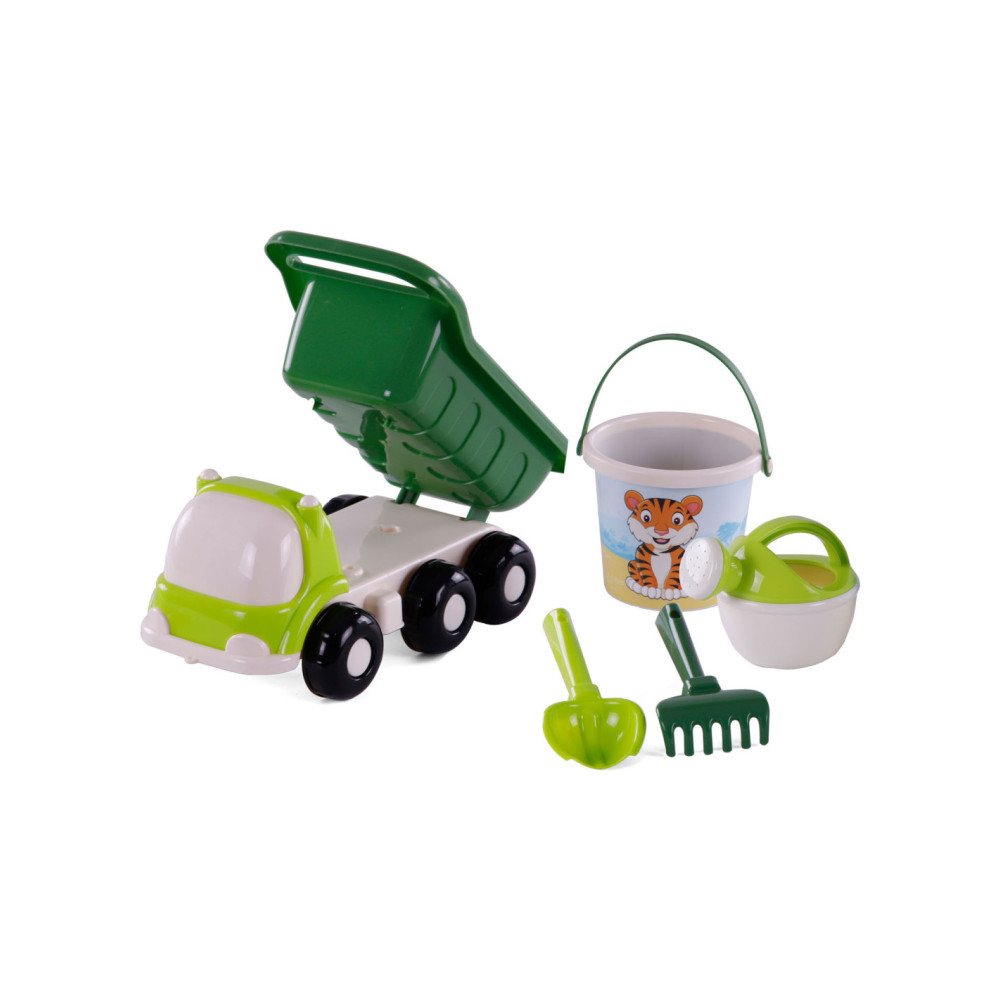 Breng de strandvreugde naar binnen met de Strand Kiepwagen en Emmerset met 3 stukken gereedschap! Deze kleurrijke truck komt niet alleen met een handige kiepbak, maar ook met een emmer vol speelse gereedschappen, inclusief een schattig diertje op de voorkant. Afmetingen: 29 x 15,1 x 14,5 centimeter. Geschikt vanaf 12 maanden.