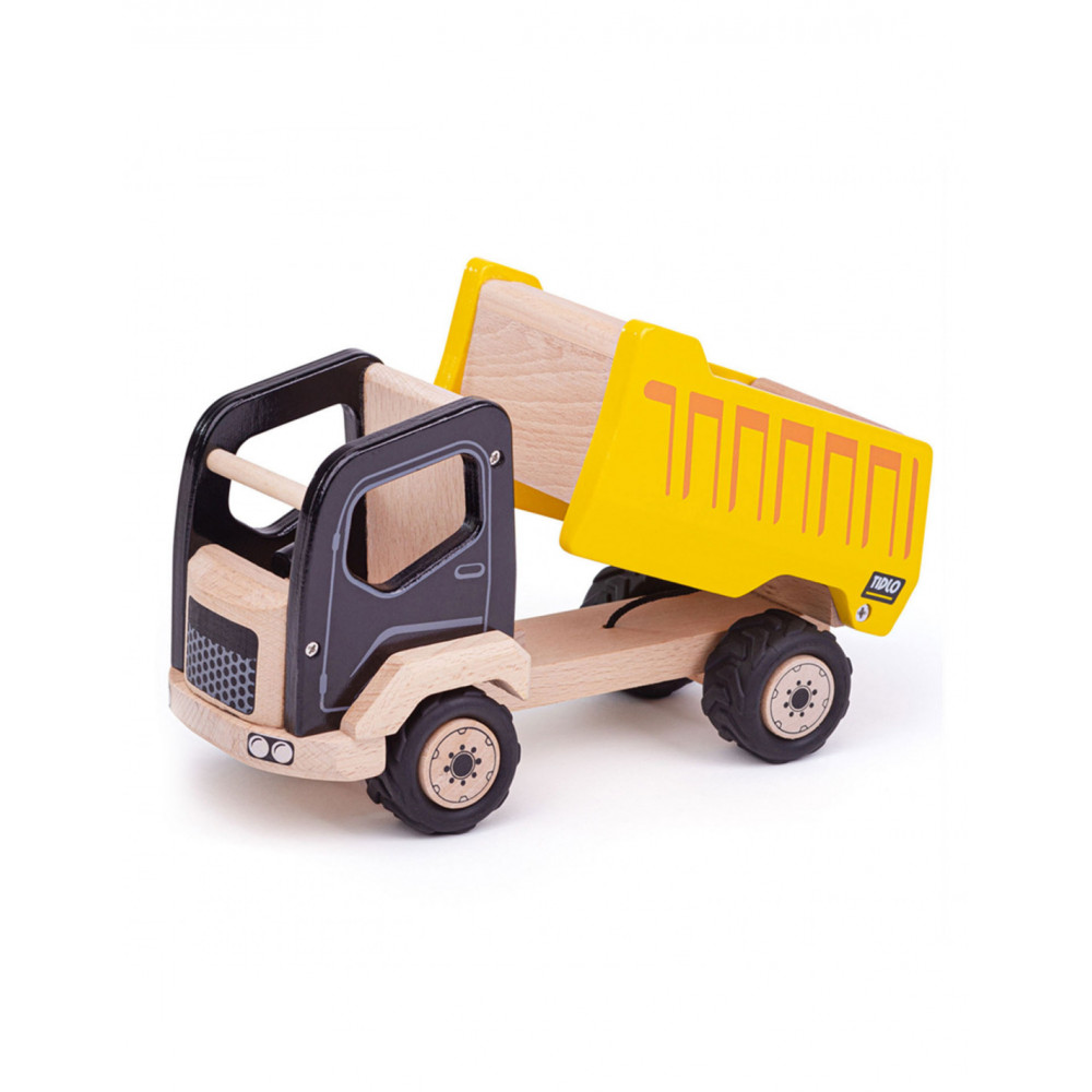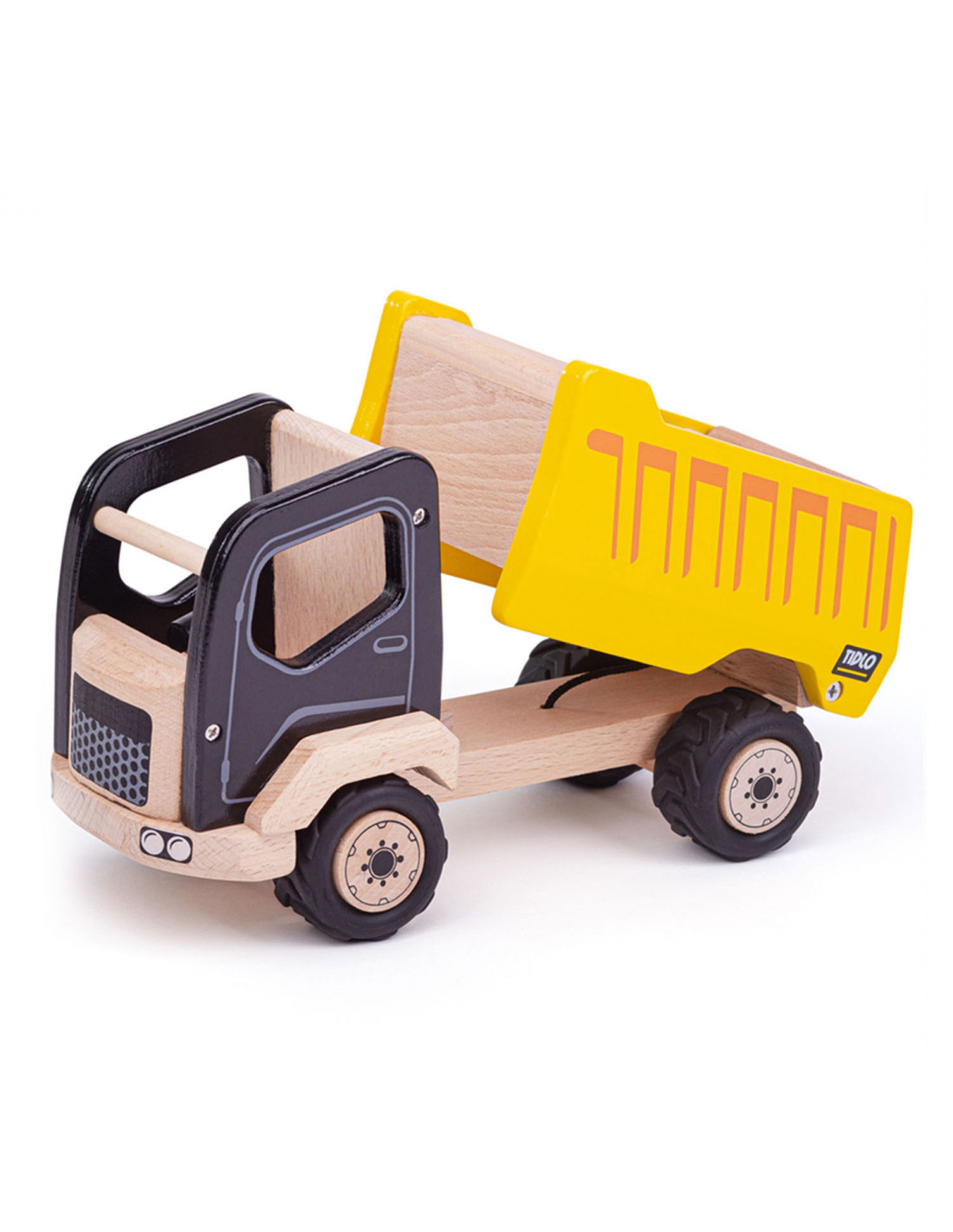 Al dat vuil moet ergens heen! Deze duurzame, gedetailleerde houten kiepvrachtwagen kan ladingen van de graafmachine en lader nemen en de inhoud gemakkelijk legen met behulp van de handgreep op de werkende kiepbak. Voorzien van een bewegende achterklep. De grote, stevige rubberen banden zijn ideaal voor grip op gladde oppervlakken en de ronde, gemakkelijk vast te houden vorm is perfect voor kleine handjes. Dankzij het open ontwerp van de cabine passen kleine arbeiders er gemakkelijk in. Een geweldige manier om creatieve en fantasierijke speelsessies aan te moedigen. Ontwikkelt hand-oogcoördinatie en fijne motoriek. Gemaakt van hoogwaardige, verantwoorde materialen. Voldoet aan de huidige Europese veiligheidsnormen.
