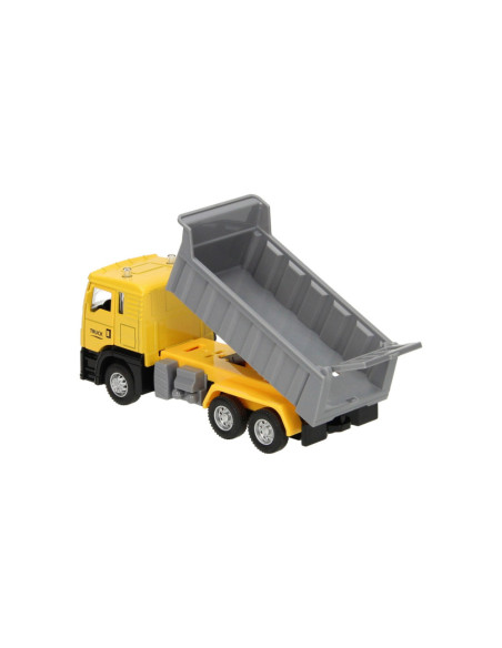 Kiepwagen met pull-backfunctie en licht en geluid. De kiepbak kiept naar achter en via het luik valt het materiaal uit de bak. De deurtjes van de cabine kunnen open en dicht. Geschikt voor kinderen vanaf 3 jaar.
