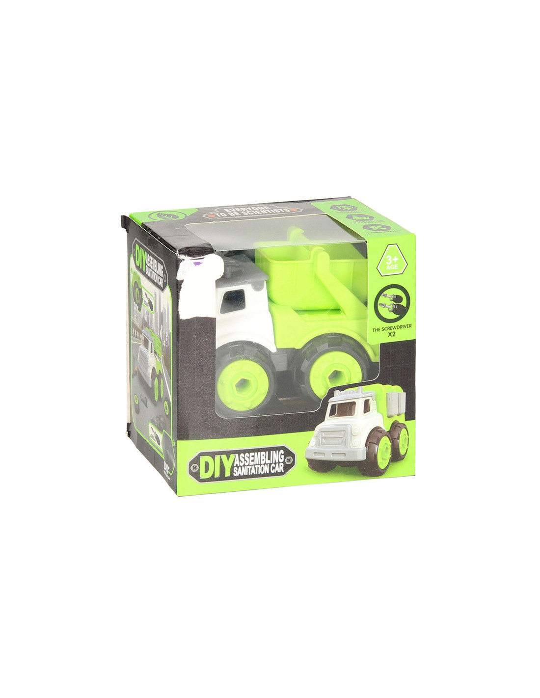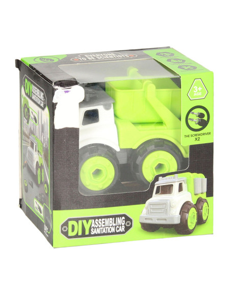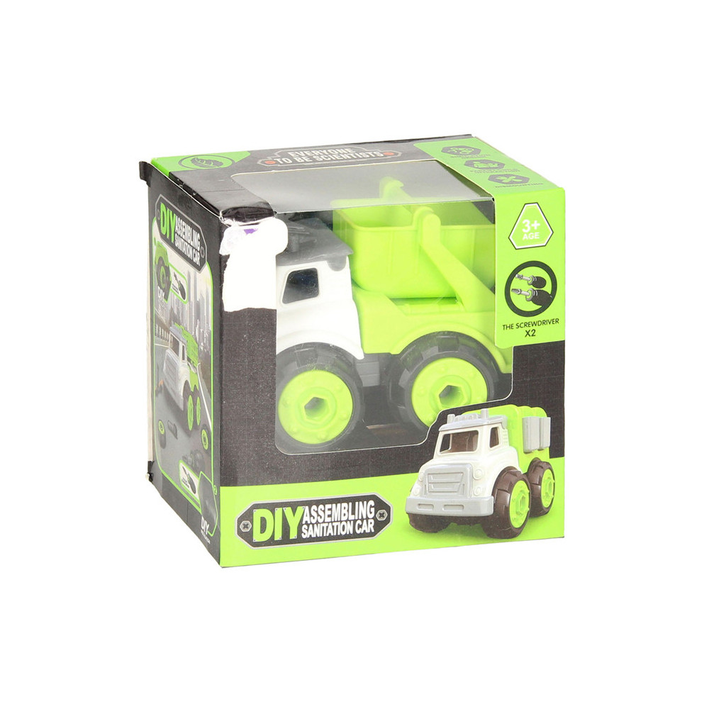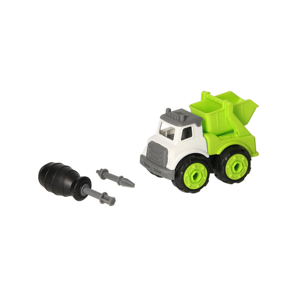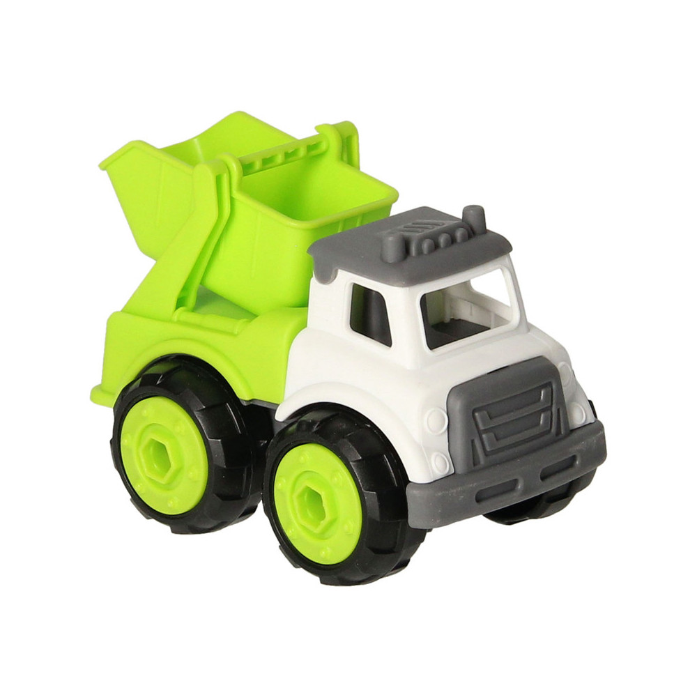 Groene kiepwagen waarbij je zelf de wielen kunt losschroeven. Inclusief 2 kunststof schroevendraaiers. Geschikt voor kinderen vanaf 3 jaar oud.