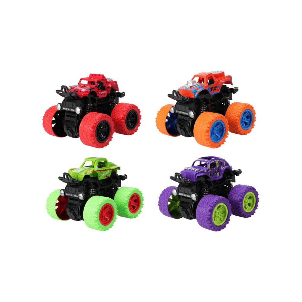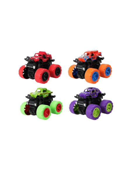 Deze oersterke monstertruck is klaar voor monsterlijke acties! Met zijn grote profielbanden en vette neonkleuren, is deze terreinveroveraar van 9 centimeter (schaal 1:36) groot een geweldig stuk speelgoed voor liefhebbers van auto's. Niet geschikt voor kinderen jonger dan 3 jaar. Gewicht: 82 gram.