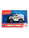 De auto heeft een schuiver aan de voorkant die gemakkelijk los te koppelen is. Achter de schuiver zit een haak die uitgerold kan worden. Als je op de rode knop aan de zijkant drukt maakt de politiewagen geluid en geven de sirenes licht.