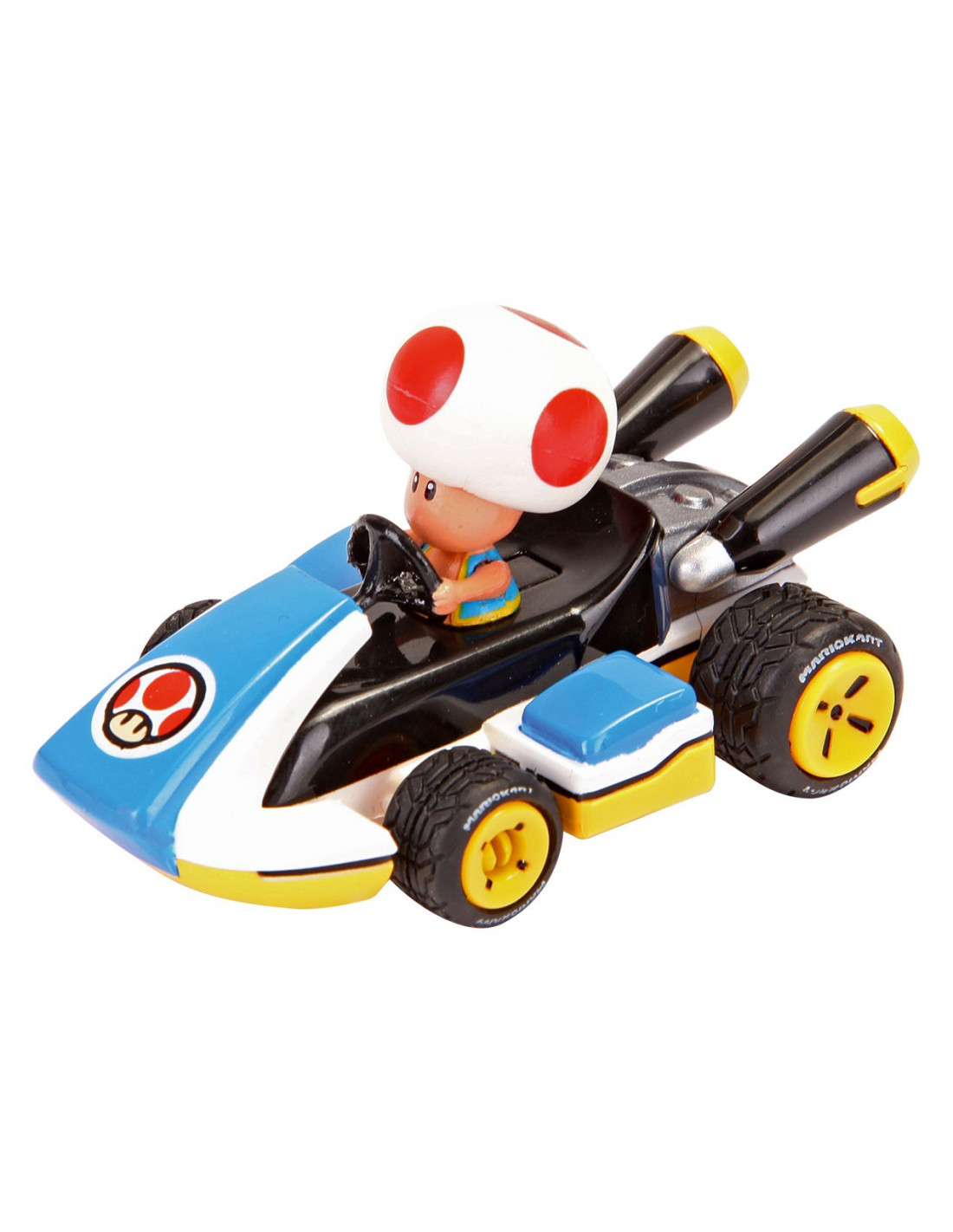 Speel de leukste raceavonturen na met deze Super Mario pullback kart van Toad. Rijd de kart naar achteren en laat hem weg racen. De kart is gemaakt van stevig kunststof op schaal 1:43 en zijn voorzien van een pullback motor. Verzamel ook de andere karts en organiseer een spannende wedstrijd. Wie rijdt er als eerste over de finish?