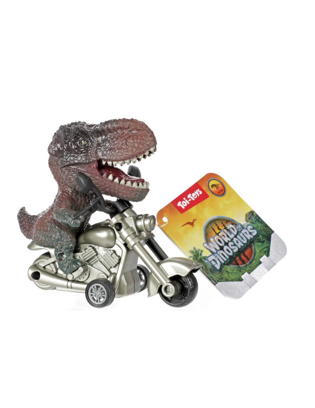 Speelgoeddino op motor (7x11x9 cm) met printbare poster. Niet geschikt voor kinderen jonger dan 3 jaar.