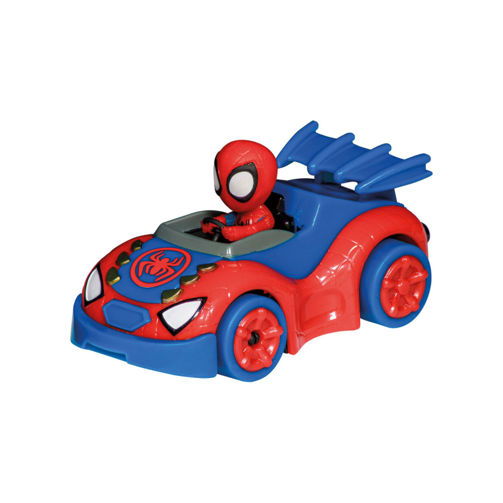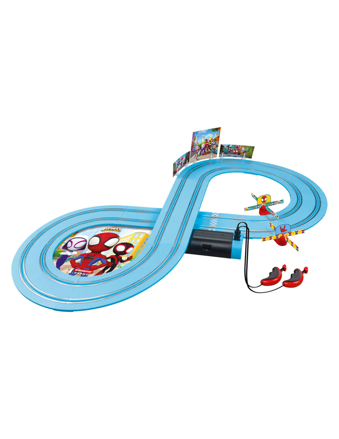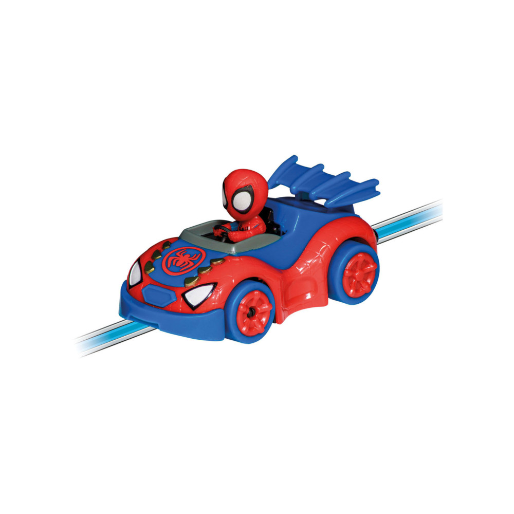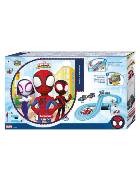 De jonge Peter Parker (kortweg Spidey) is al een populaire superheld, maar in de kinderserie ‘Spidey en zijn Supervrienden’ ontdekt hij al snel dat het nog makkelijker is om mensen te helpen met vrienden aan je zijde. In de Carrera FIRST-set 'It's Spidey Time' wordt hij vergezeld door zijn vriend Miles Morales, alias Spin, terwijl ze racen over de 2,4 meter lange baan. Kinderen vanaf 3 jaar racen over een batterij-aangedreven baan, uitgerust met een tol voor nog meer plezier. Talrijke decoratieve elementen met ontwerpen uit de serie sieren de baan, wat zorgt voor een echte Spidey-sfeer in de slaapkamer-motordromen.