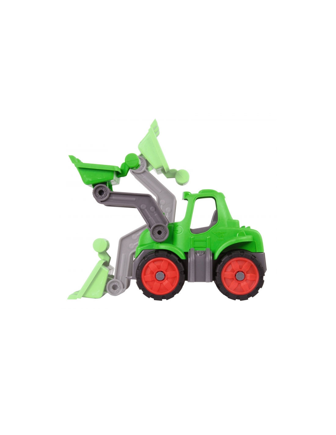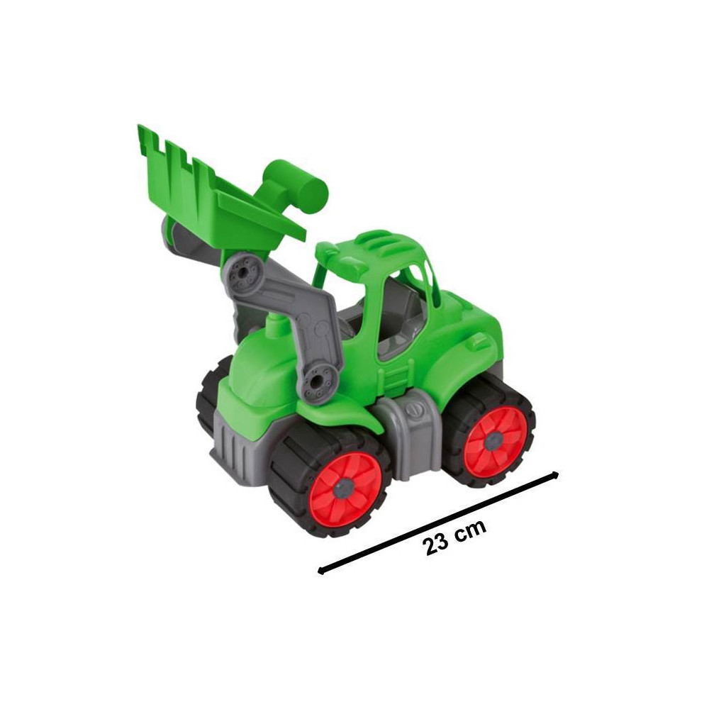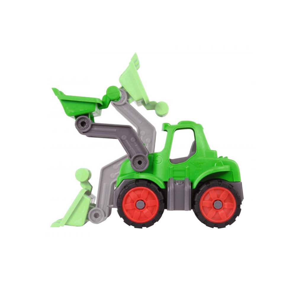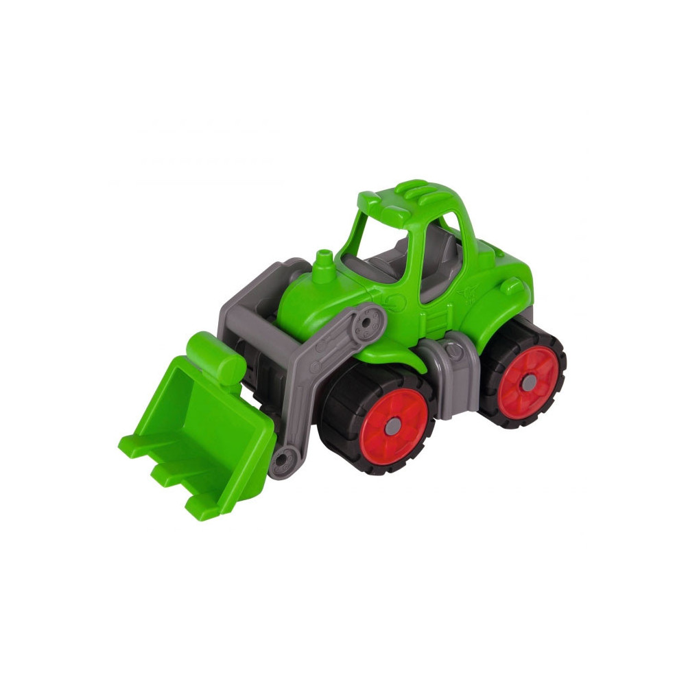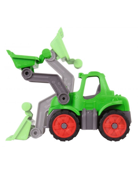 Stoere BIG Power Worker Tractor met gemakkelijk beweegbare arm om goederen mee te verplaatsen op of werkplaats. Met sterke softbanden, net zoals alle andere BIG-POWER-WORKER voertuigen en dus ook geschikt voor buiten.