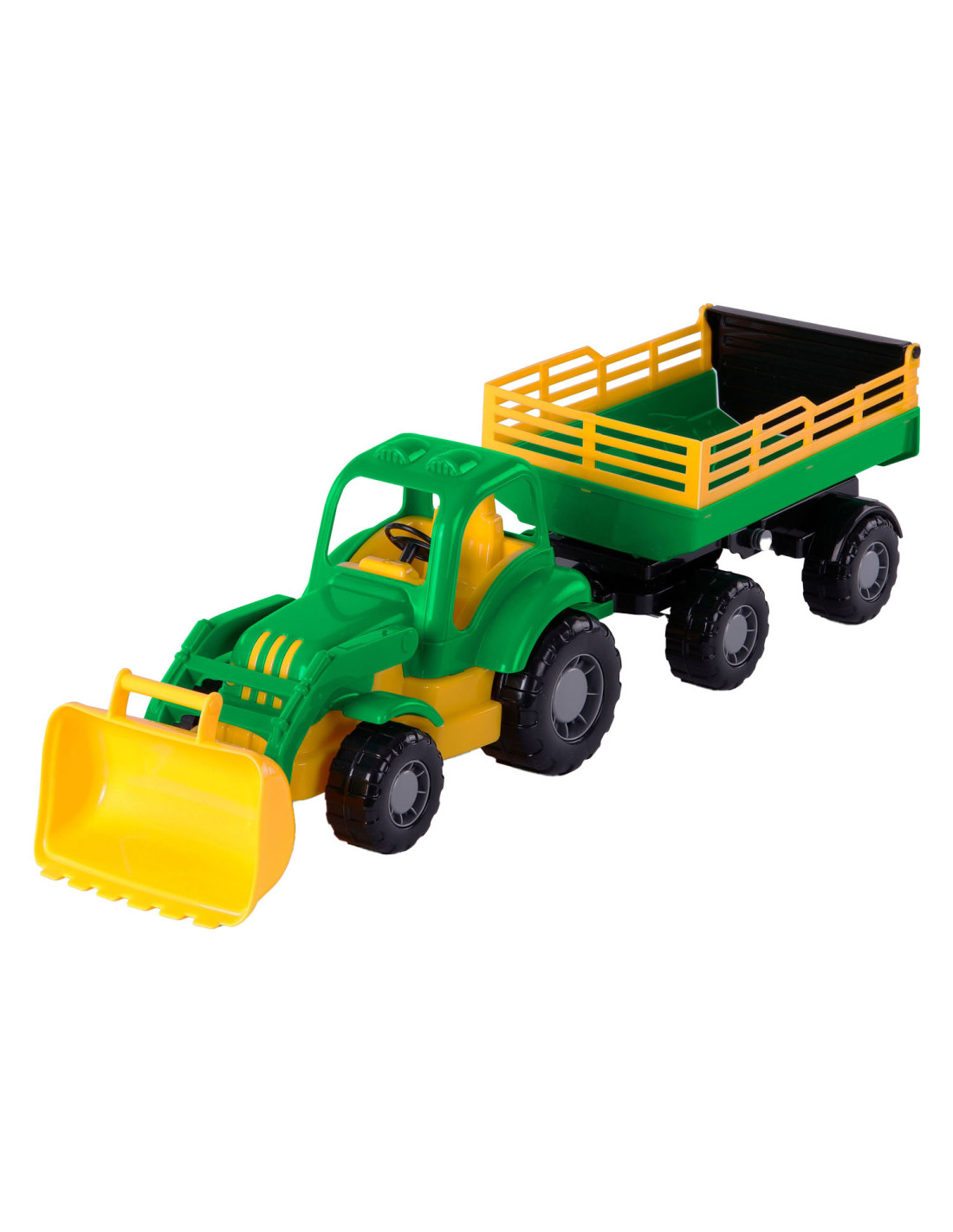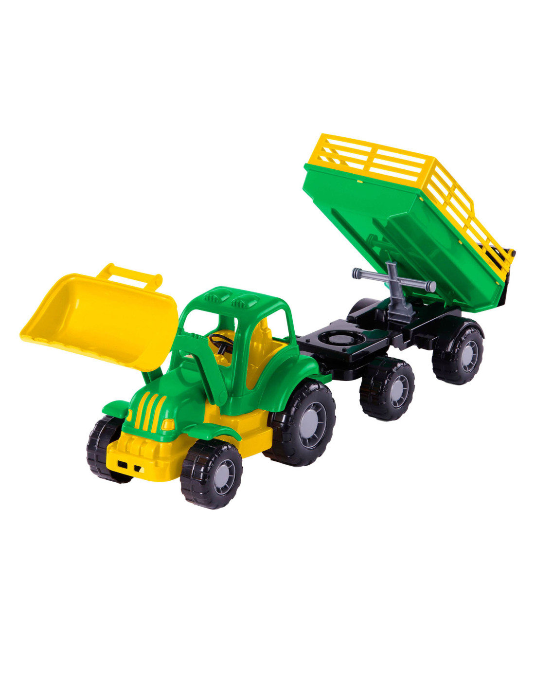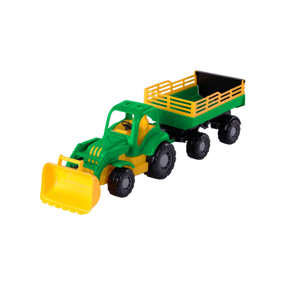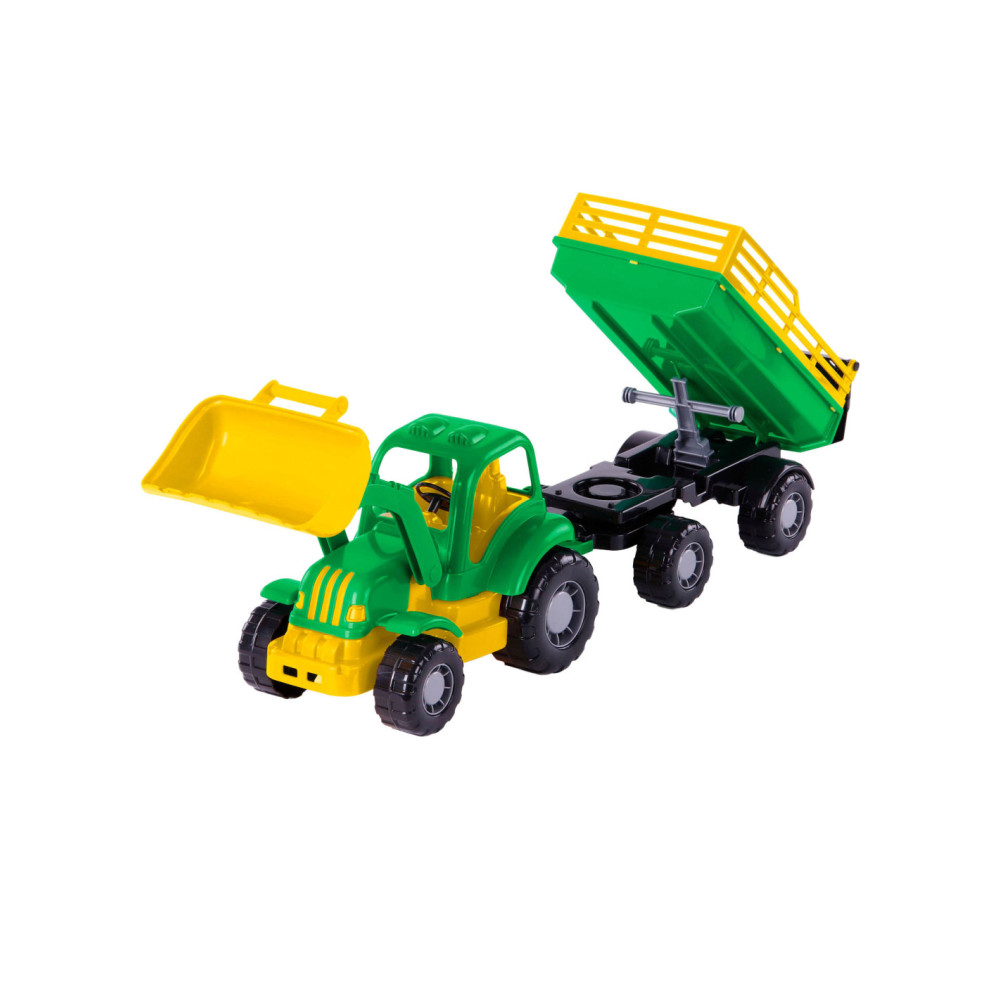 De Klassieke Tractor met Kiep Aanhangwagen! Deze tijdloze tractor wordt geleverd met een handige kiepaanhangwagen, waardoor kleintjes hun eigen ladingen kunnen vervoeren. De tractor is 66 x 17 x 18,5 centimeter groot en geschikt voor kinderen vanaf 12 maanden.