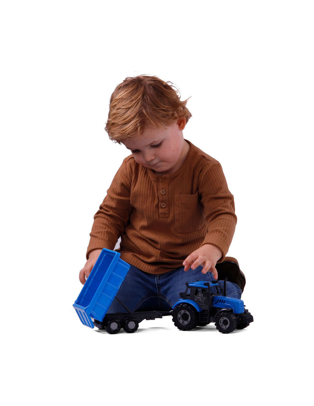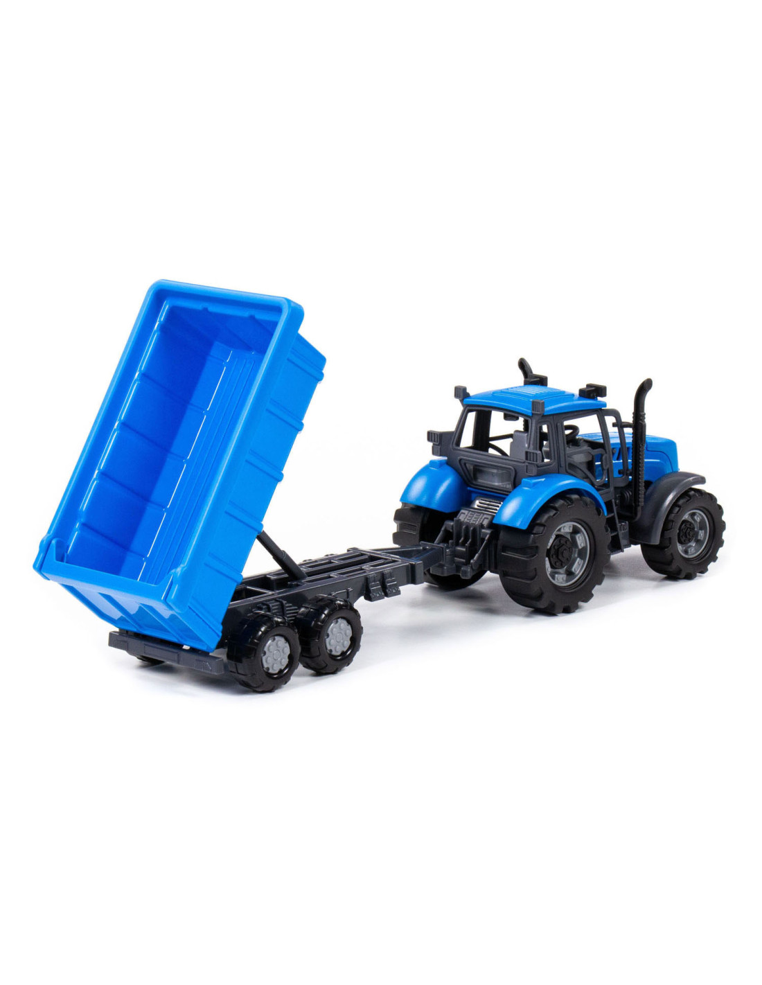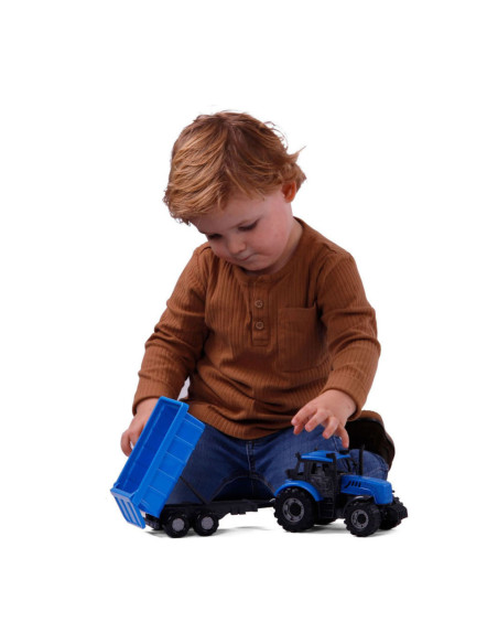 De Tractor met Kiepwagen Aanhangwagen op schaal 1:32! Compleet met een kiepwagen voor extra speelplezier. Deze miniatuurtractor in een prachtige blauwe kleur is perfect voor fantasierijke boerderijverhalen.
