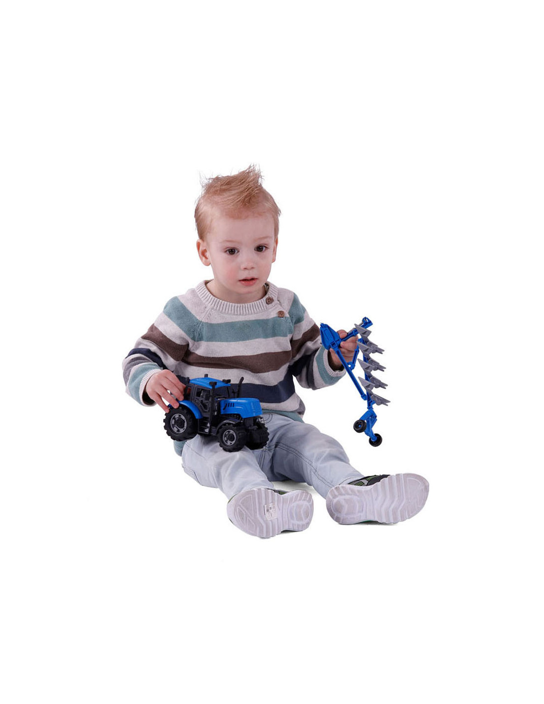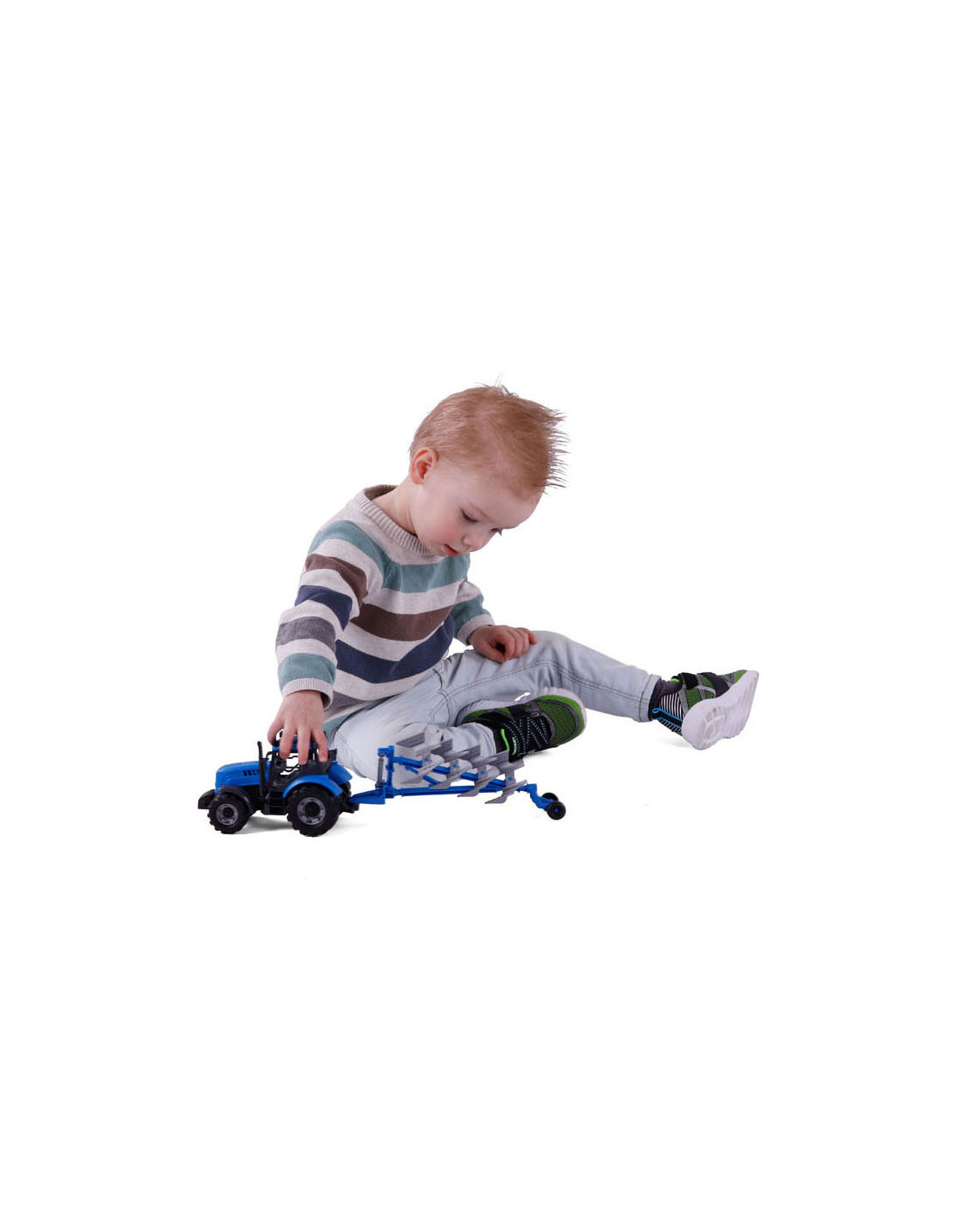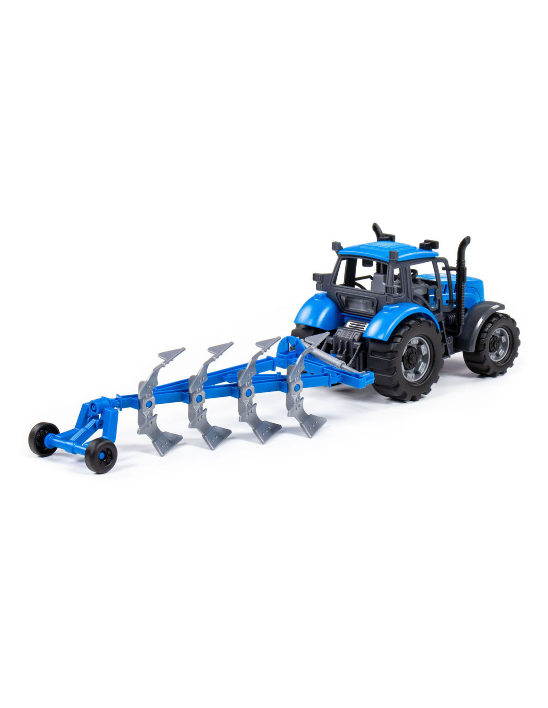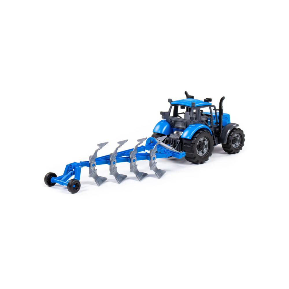 De Tractor met Ploeg op schaal 1:32! In een opvallende blauwe kleur! Ploegen ging nog nooit zo soepel en leuk. Laat de verbeelding van kinderen bloeien terwijl ze hun eigen boerderijverhalen creeren met deze gedetailleerde speelgoedtractor.