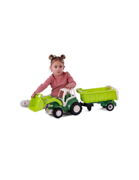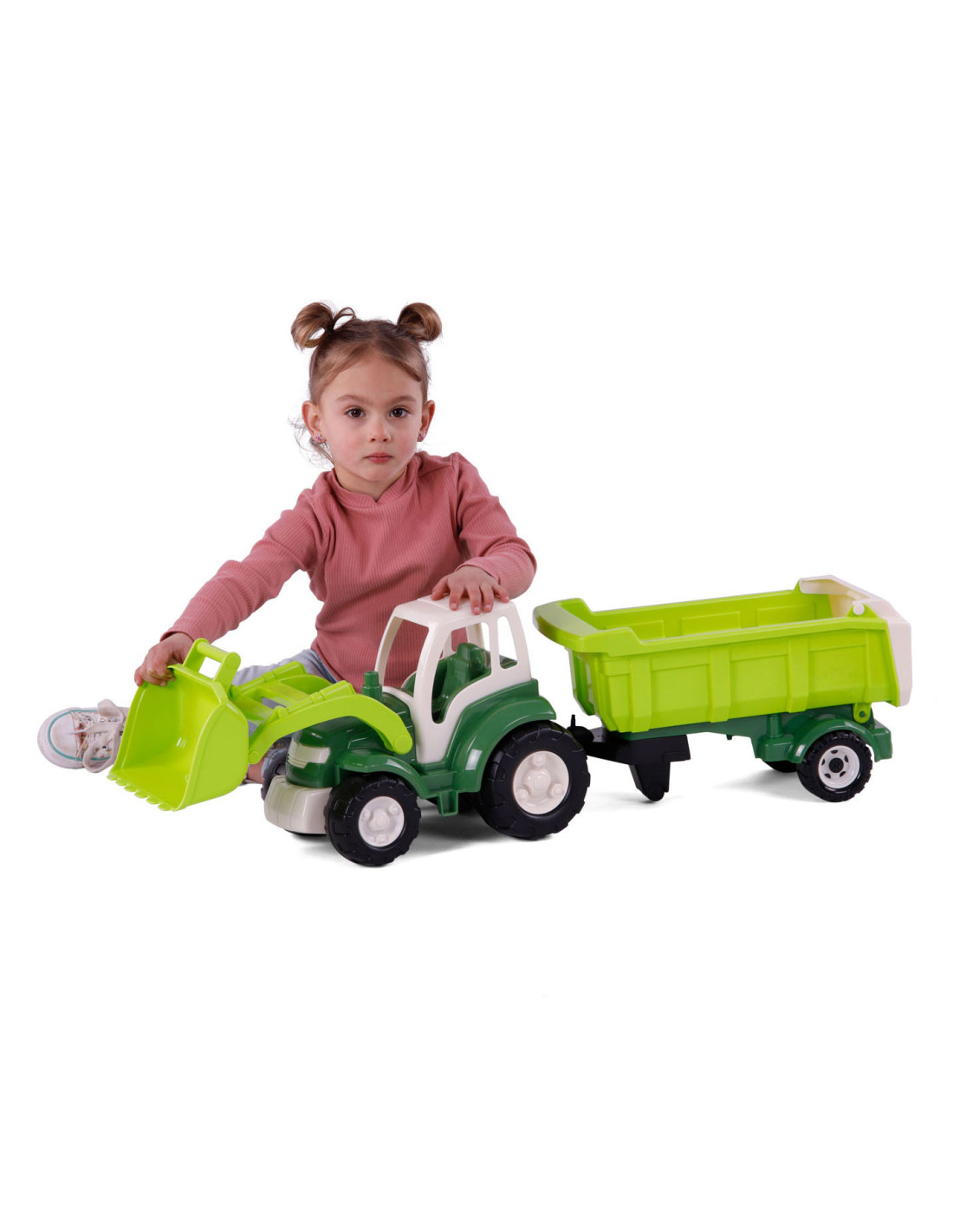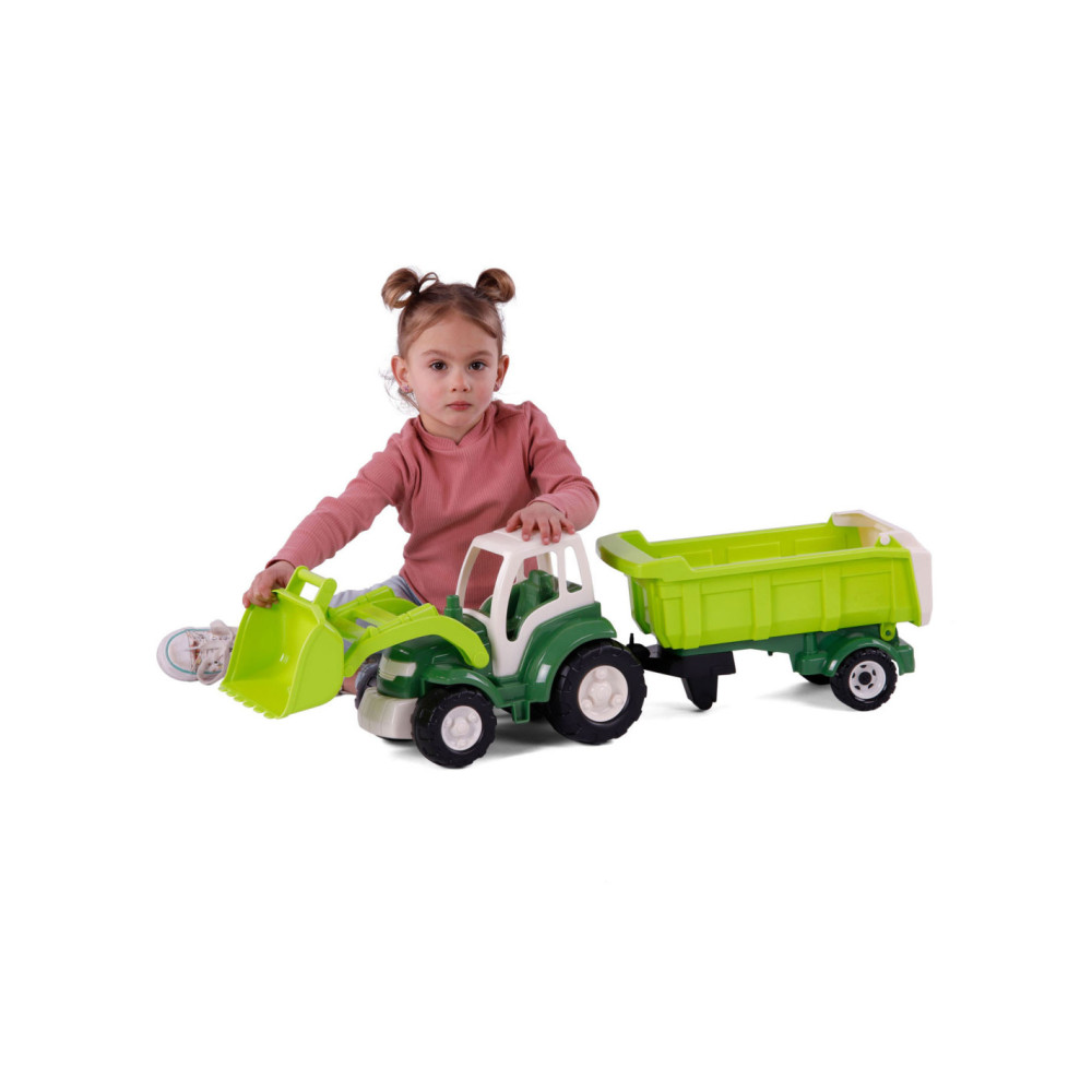 Betreed grootschalig speelplezier met de XL Tractor + Tipper Trailer! Deze grote tractor met bijpassende aanhangwagen tilt de speelervaring naar een hoger niveau. Laat je kleintjes de leiding nemen over de boerderij of bouwplaats terwijl ze leren laden en lossen met deze kleurrijke combinatie. Deze set is 86,5 X 22,5 X 26 centimeter groot en geschikt voor kinderen vanaf 12 maanden.