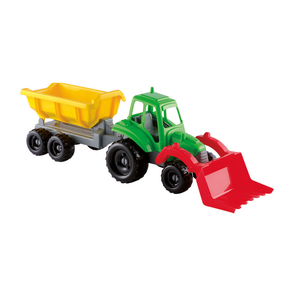 Beleef eindeloos speelplezier met de tractor en de aanhangwagen van Ecoiffier. Schuif het zand aan de kant of kiep het in de aanhangwagen om het te vervoeren.