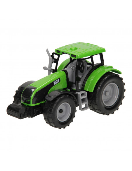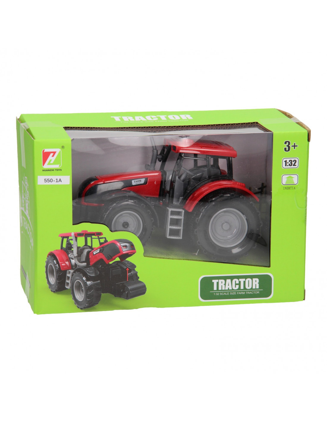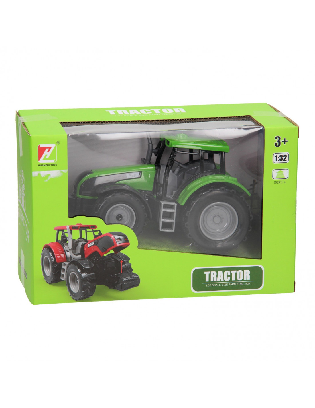 De motorkap van de tractor kan geopend worden en de tractor heeft ook een trekhaak voor een aanhanger.