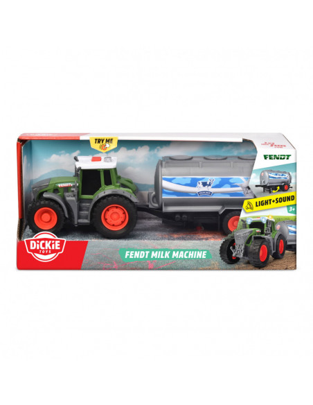 Majorette Fendt tractor en melk machine met licht en geluid.