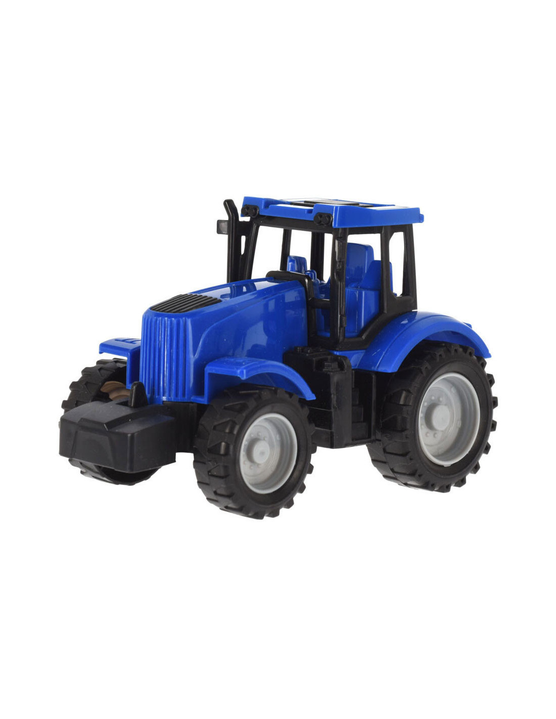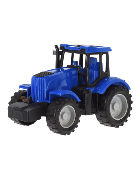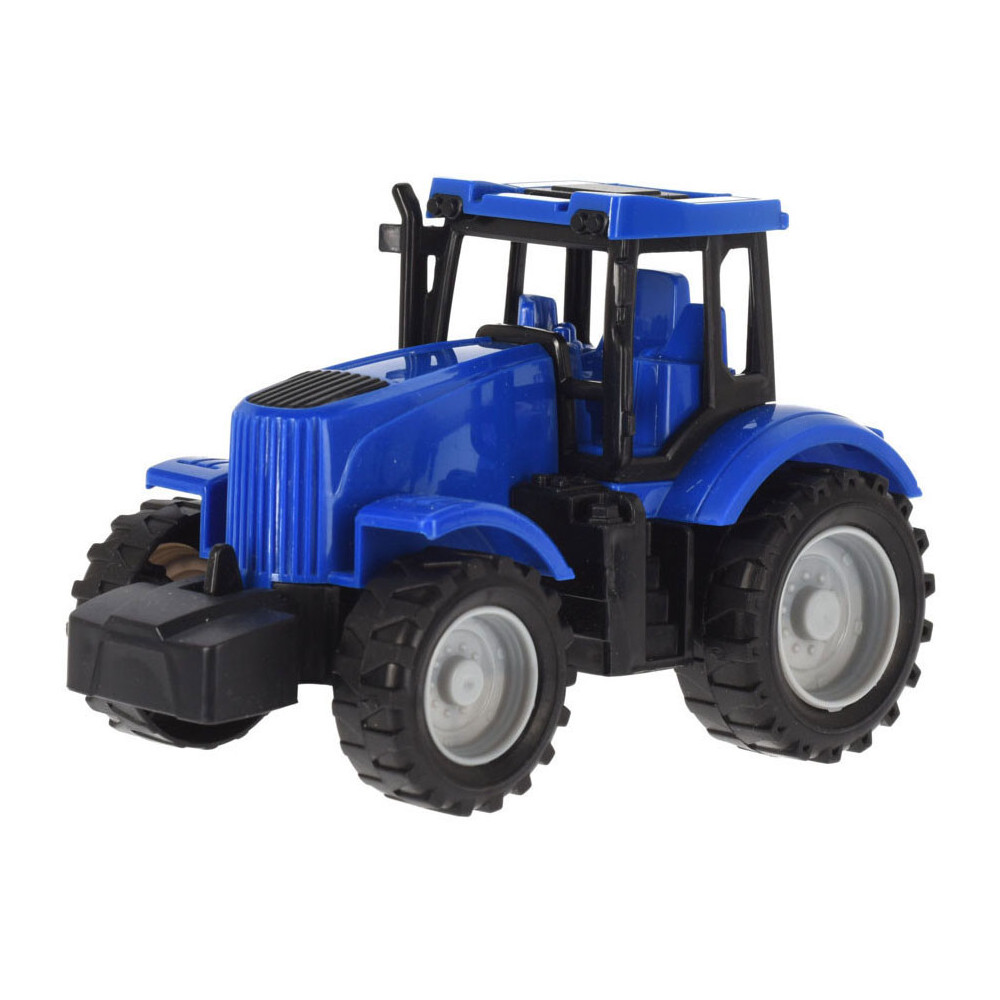 Gekleurde speelgoedtractor voor kinderen, ca. 14 centimeter groot. De trekker heeft stevige profielbanden.