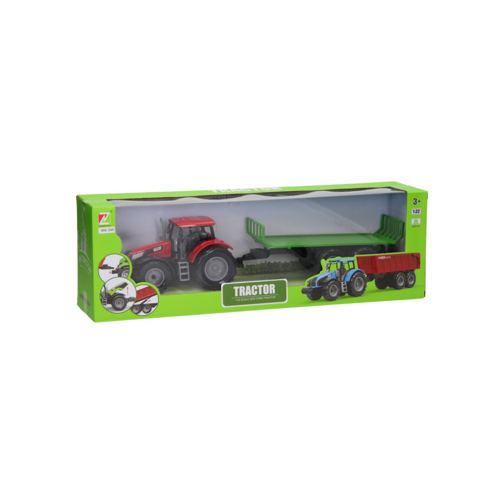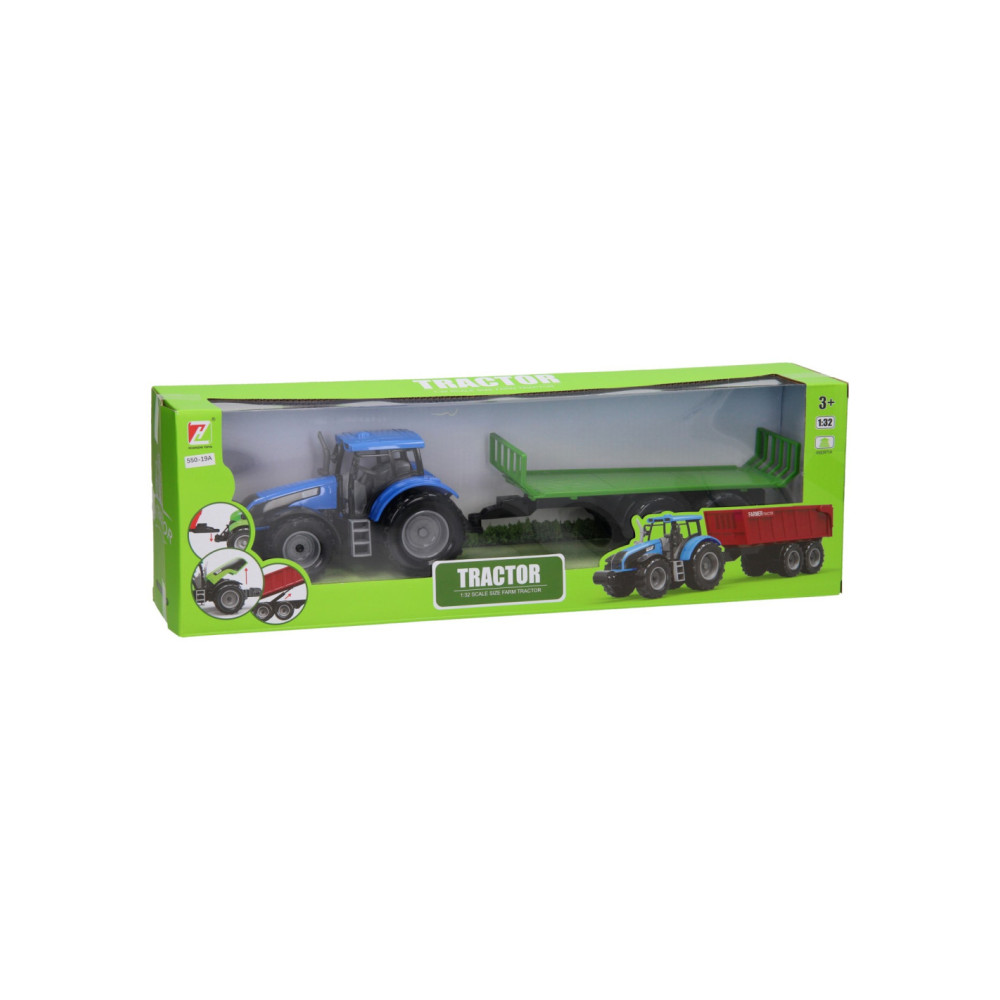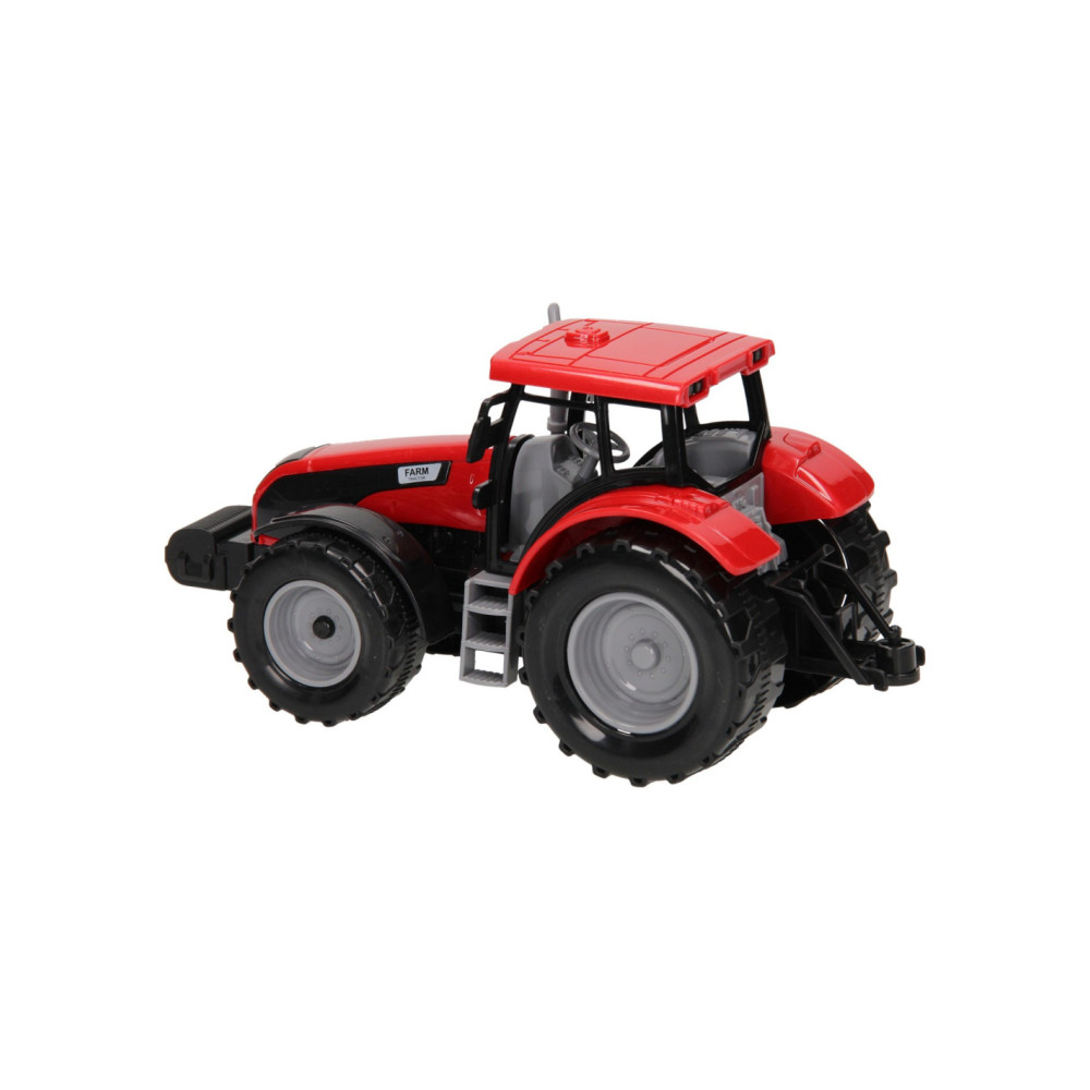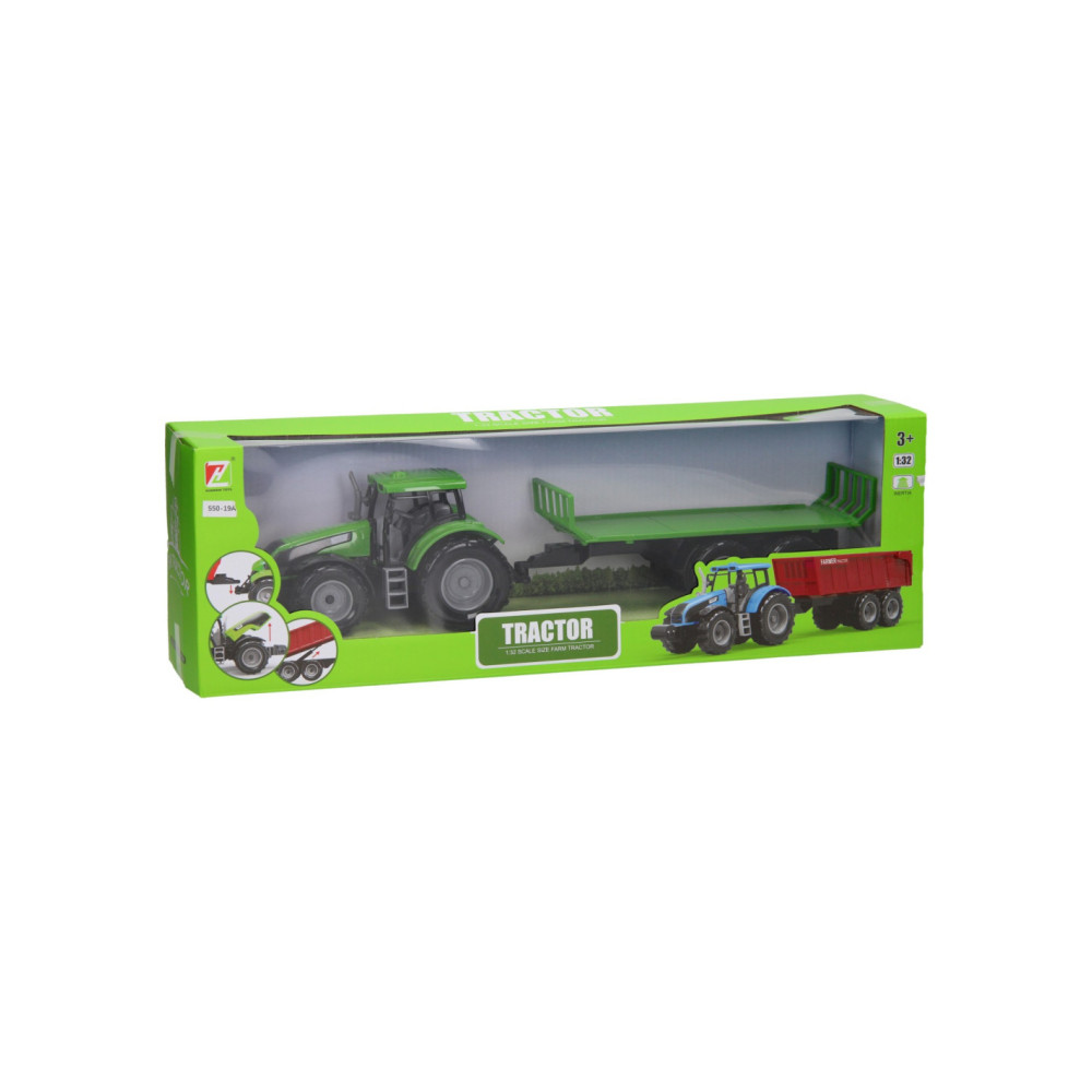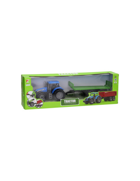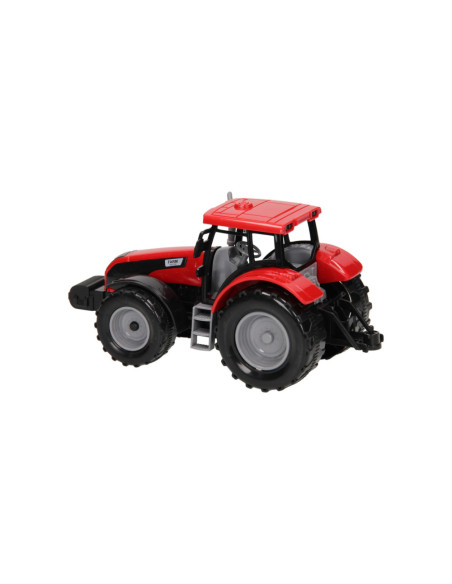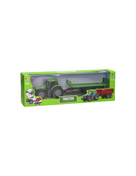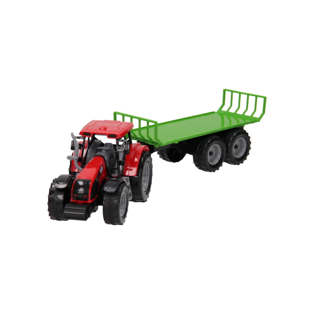 Deze kunststof tractor met kar kun je voor van alles gebruiken op de boerderij. De platte kar kan losgekoppeld worden van de tractor. De motorkap van de tractor kan ook omhoog. De tractor is 20 x 20 x 10 cm en de aanhanger heeft een lengte van 24 cm. De totale lengte van de tractor met aanhanger is 44 cm. Geschikt vanaf drie jaar. De tractor is verkrijgbaar in het groen, blauw en rood.