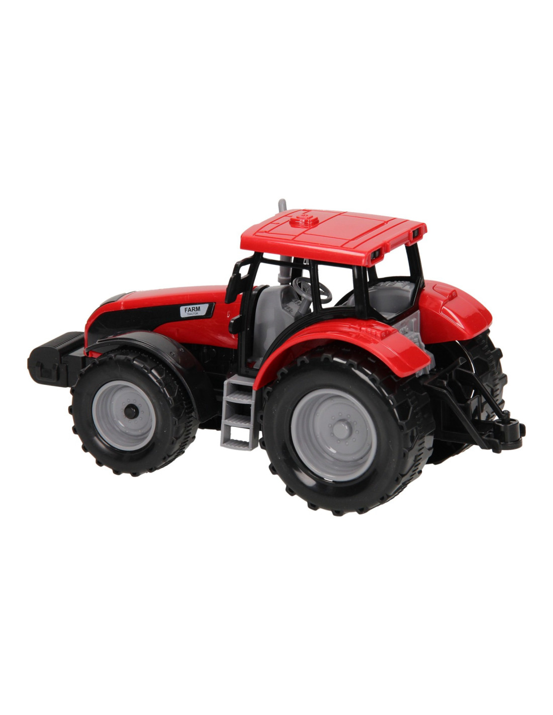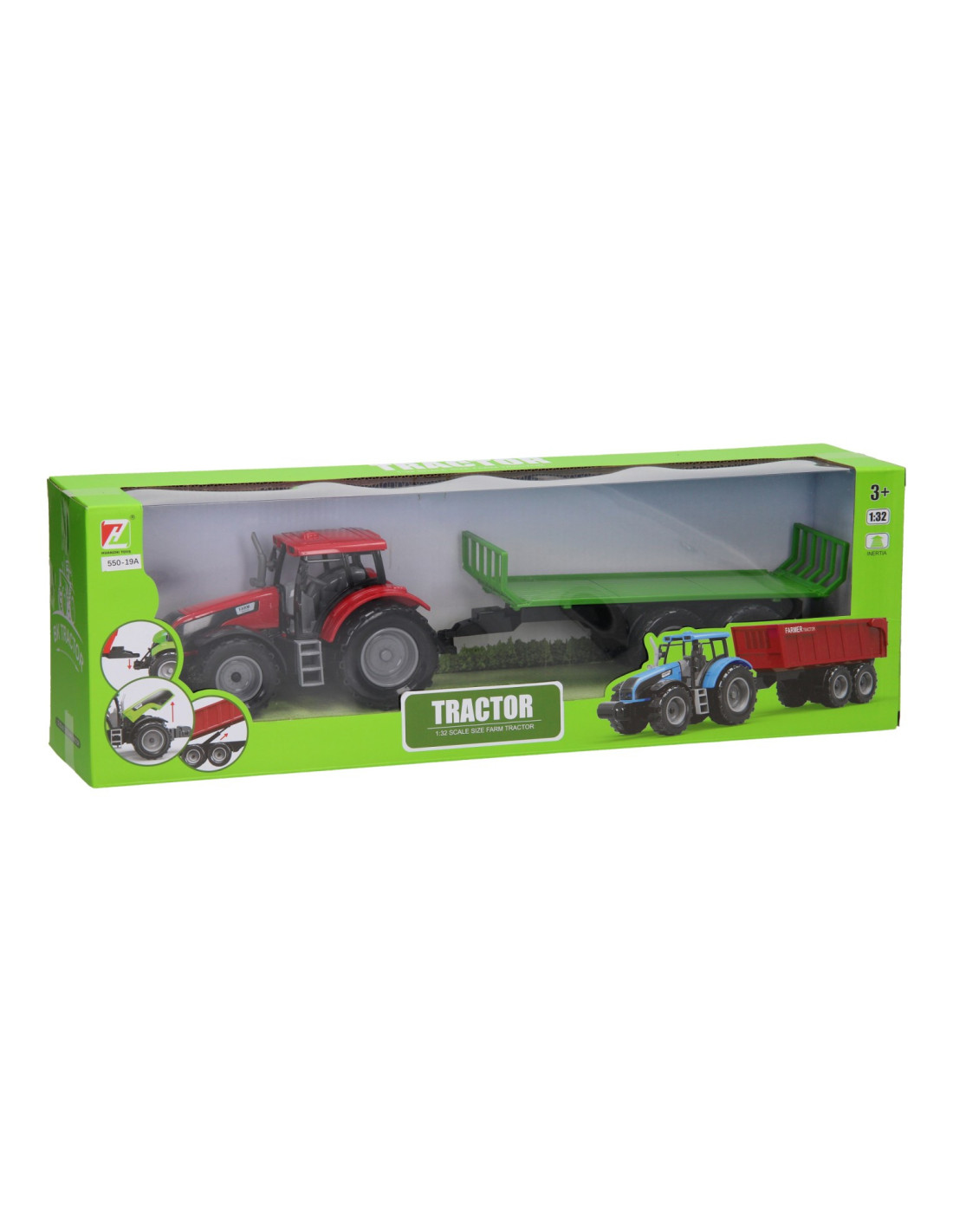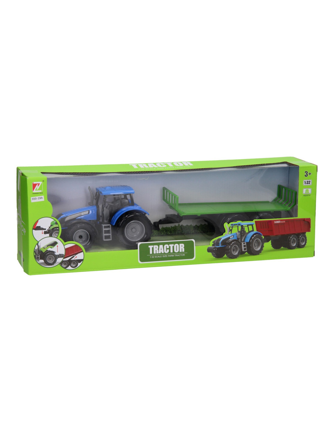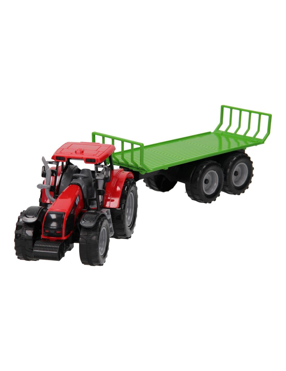 Deze kunststof tractor met kar kun je voor van alles gebruiken op de boerderij. De platte kar kan losgekoppeld worden van de tractor. De motorkap van de tractor kan ook omhoog. De tractor is 20 x 20 x 10 cm en de aanhanger heeft een lengte van 24 cm. De totale lengte van de tractor met aanhanger is 44 cm. Geschikt vanaf drie jaar. De tractor is verkrijgbaar in het groen, blauw en rood.