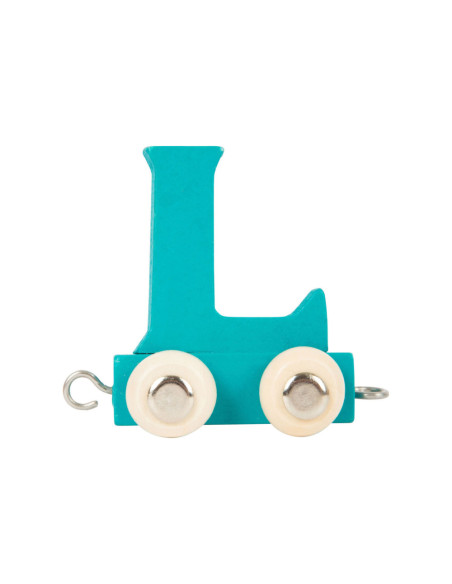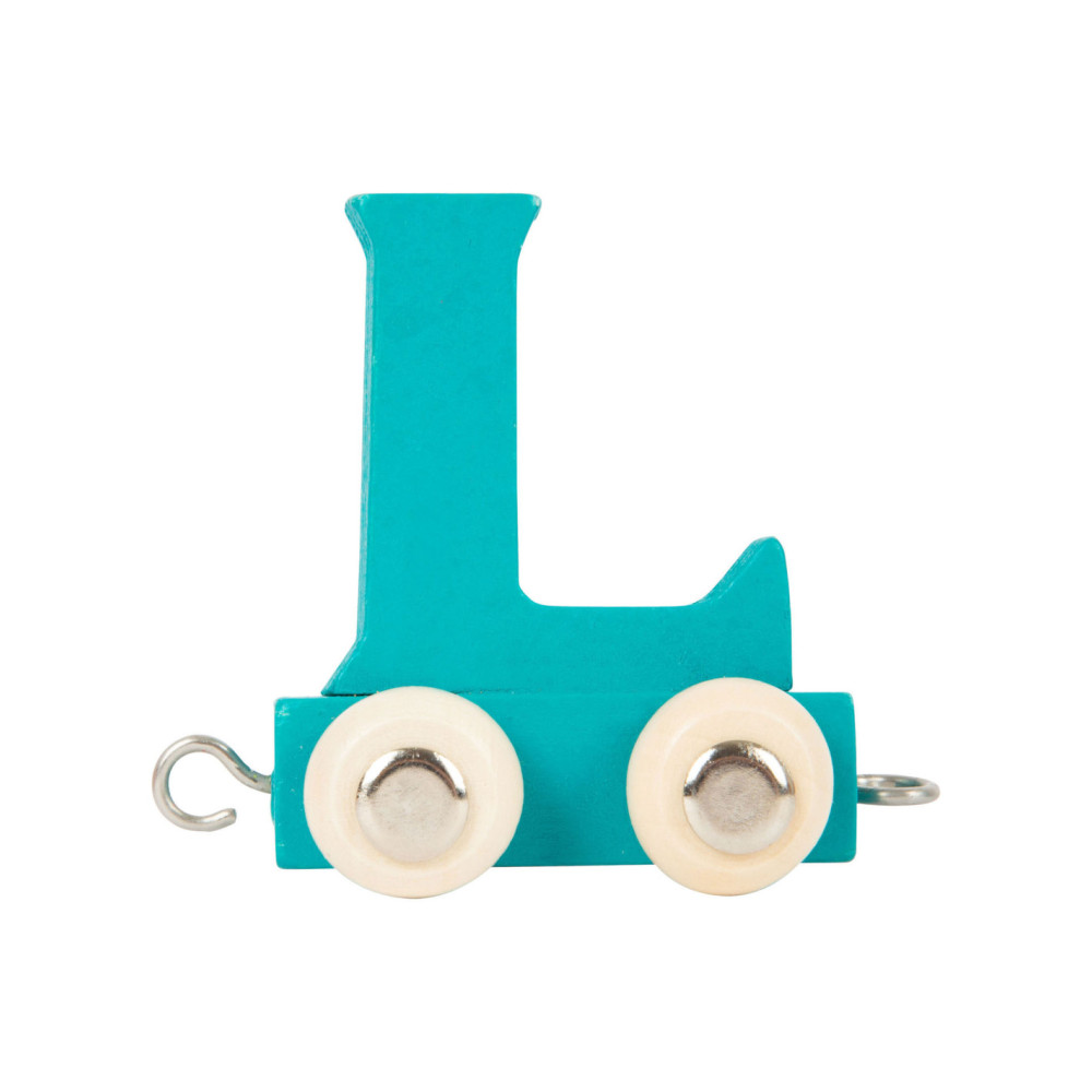 Houten letter L voor de lettertrein van Small Foot. Set gaat per 12 stuks. Kleur: petrol blauw. Afmetingen: 6,5 x 3 x 6 cm. Geschikt vanaf 3 jaar.