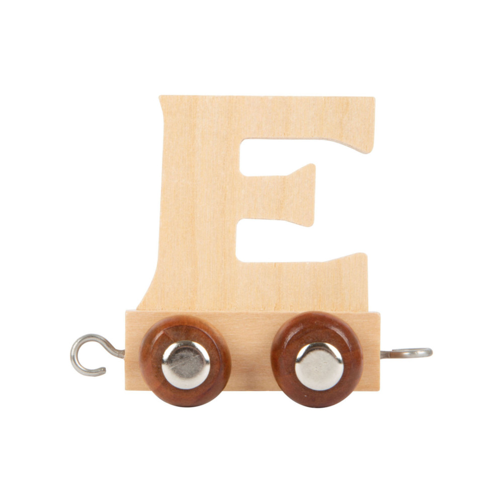 Houten letter E voor de lettertrein van Small Foot. Kleur: naturel. Afmetingen: 5 x 3,5 x 6 cm. Geschikt vanaf 3 jaar.