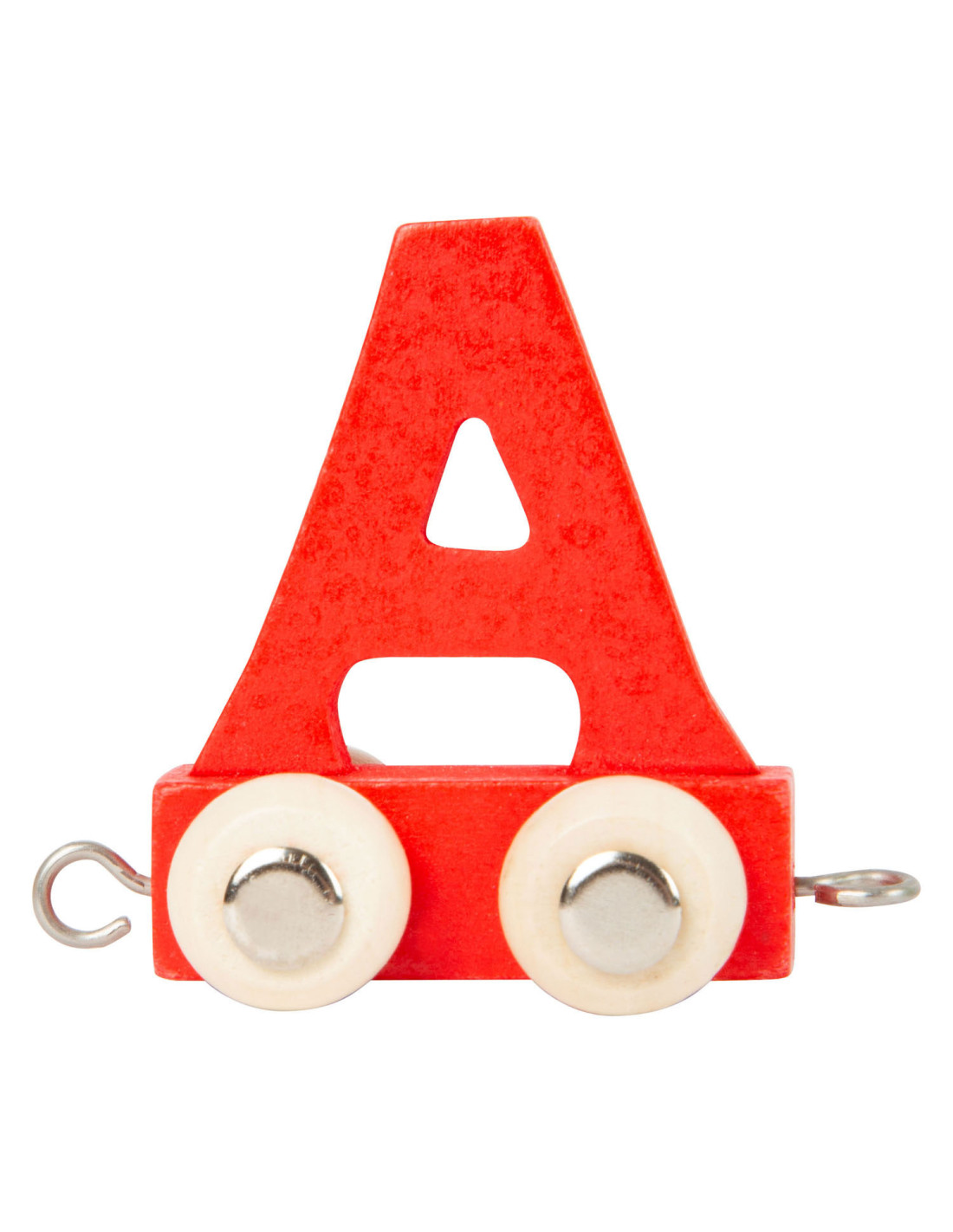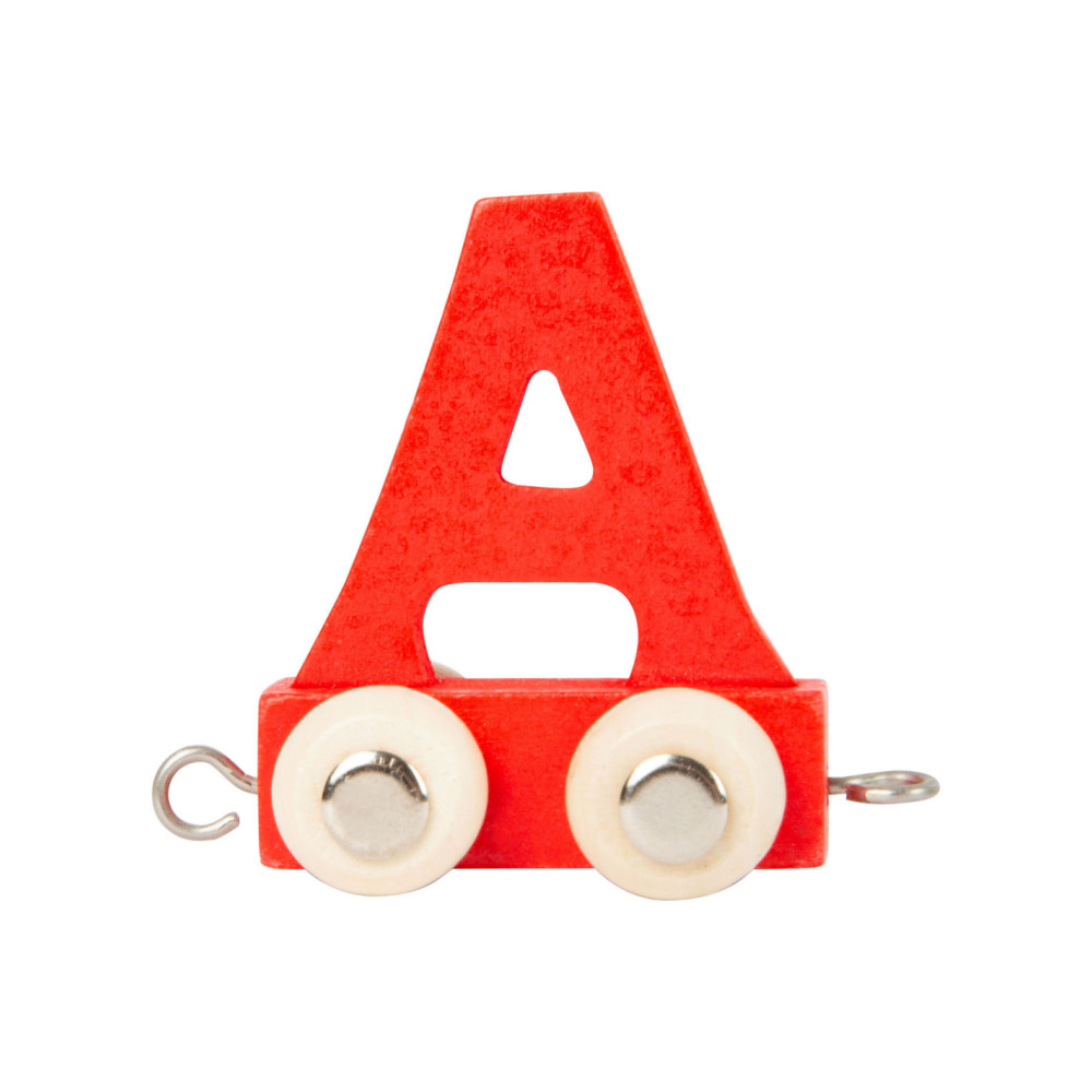 Houten letter A voor een lettertrein, bijvoorbeeld van Smallfoot. Kleur: rood. Afmetingen: 6,5 x 3 x 6 cm. Geschikt vanaf 3 jaar.
