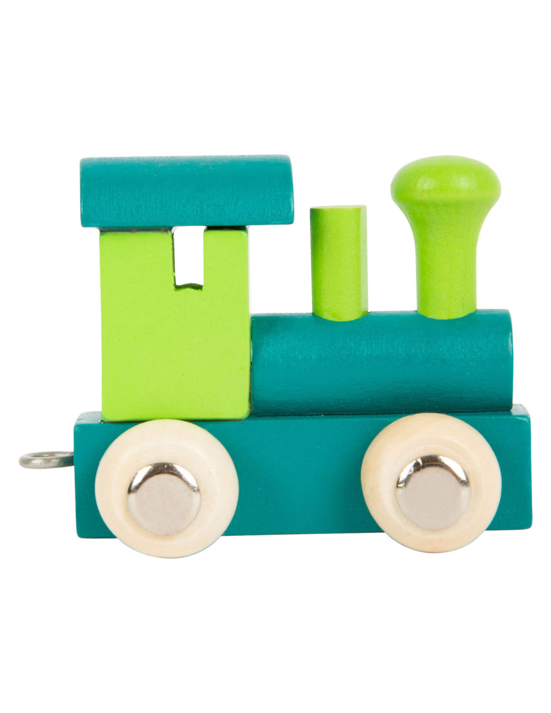 Locomotief voor de Small Foot houten lettertrein. Kleur: Groen. Geschikt om letterwagonnetjes achter te bevestigen. Afmetingen: 7 x 3,5 x 5.5 centimeter. Geschikt vanaf 3 jaar.