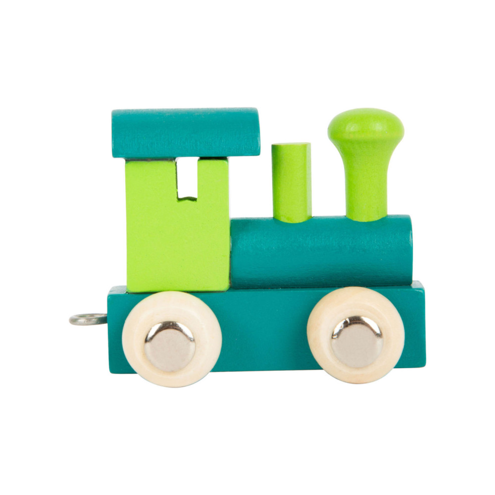 Locomotief voor de Smallfout houten lettertrein. Kleur: groen & petrol. Geschikt om letterwagonnetjes achter te bevestigen. Afmetingen: 7 x 3,5 x 5.5 centimeter. Geschikt vanaf 3 jaar.