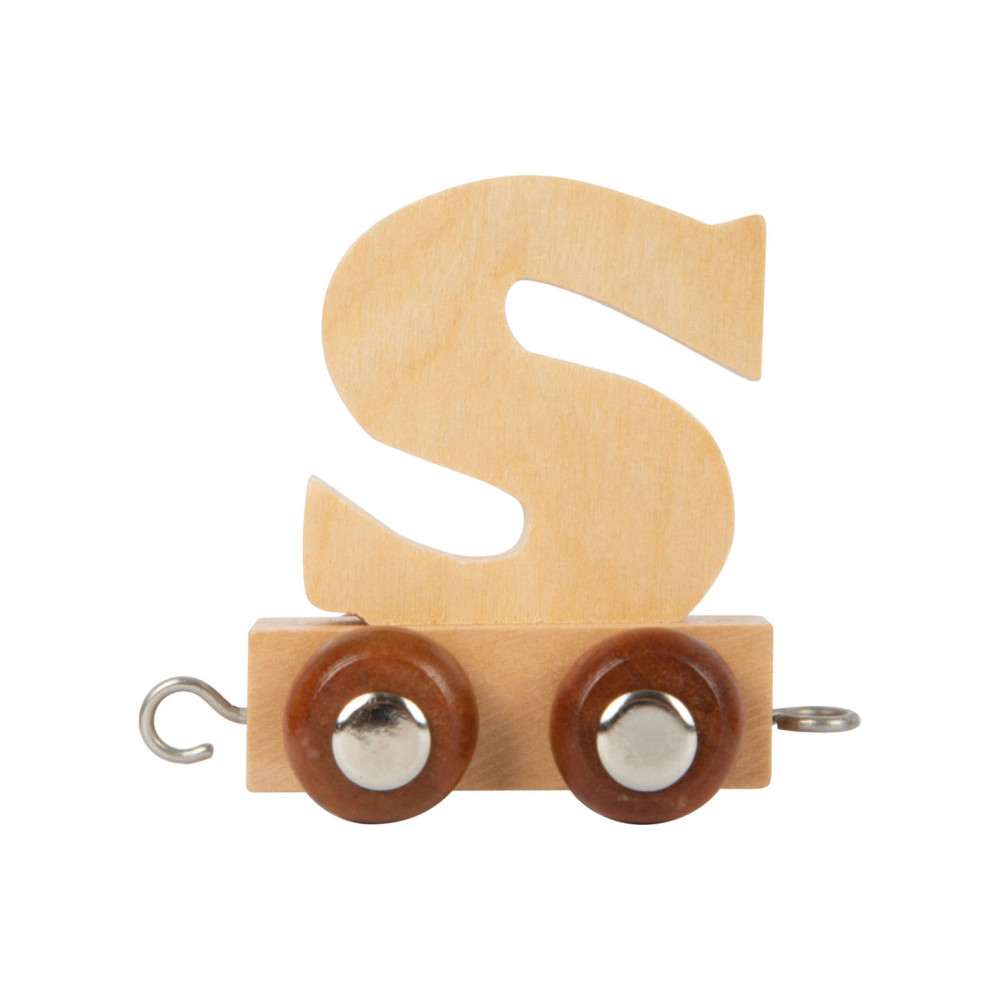 Houten letter S voor de lettertrein van Small Foot. Kleur: naturel. Afmetingen: 5 x 3,5 x 6 cm. Geschikt vanaf 3 jaar.