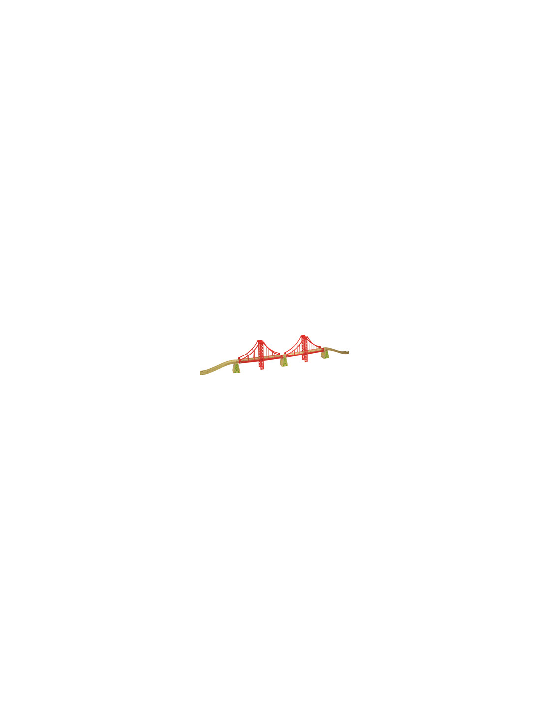 Dubbele Hangbrug BigJigs BJT136. Het merk Big Jigs heeft een mooi uitgevoerd houten treinprogramma dat zeer compleet is.Het sluit primaaan optreinsystemen van andere fabrikanten.Dit product bestaat uiteen dubbele hangbrug.Geschikt voor kinderen vanaf 3 jaar.