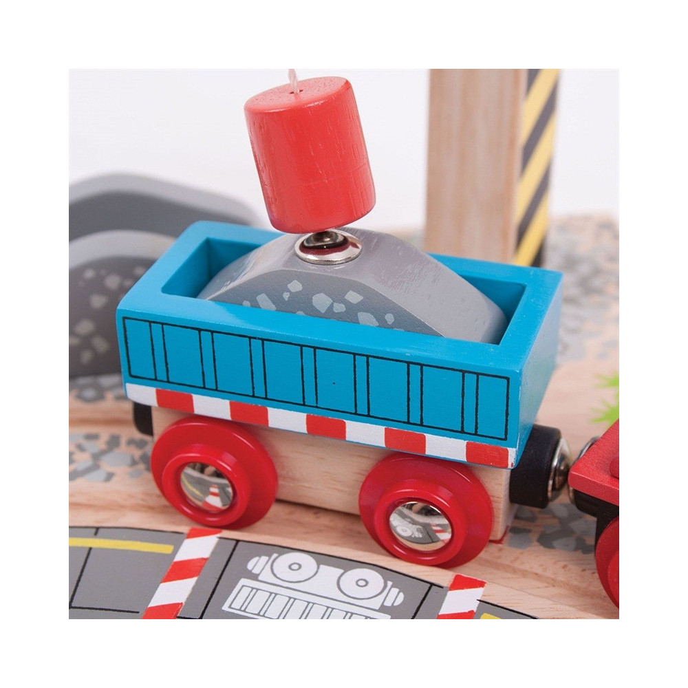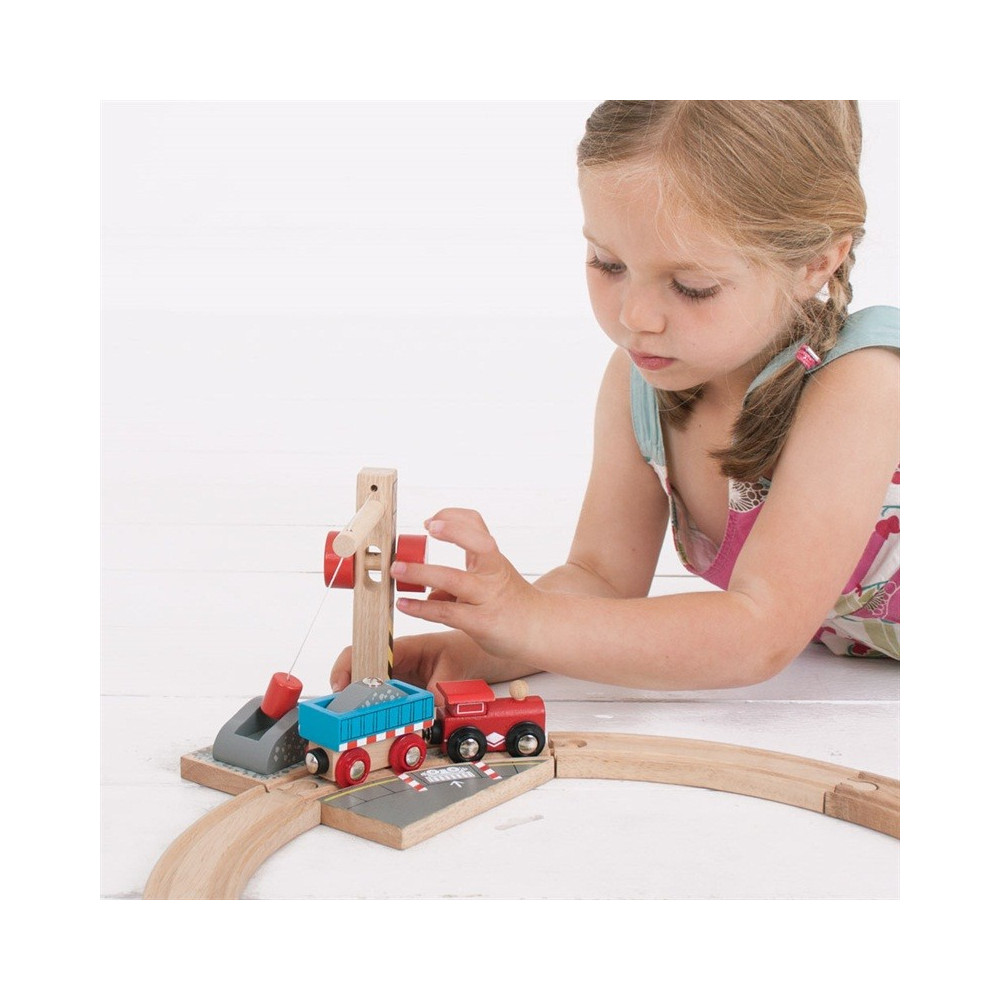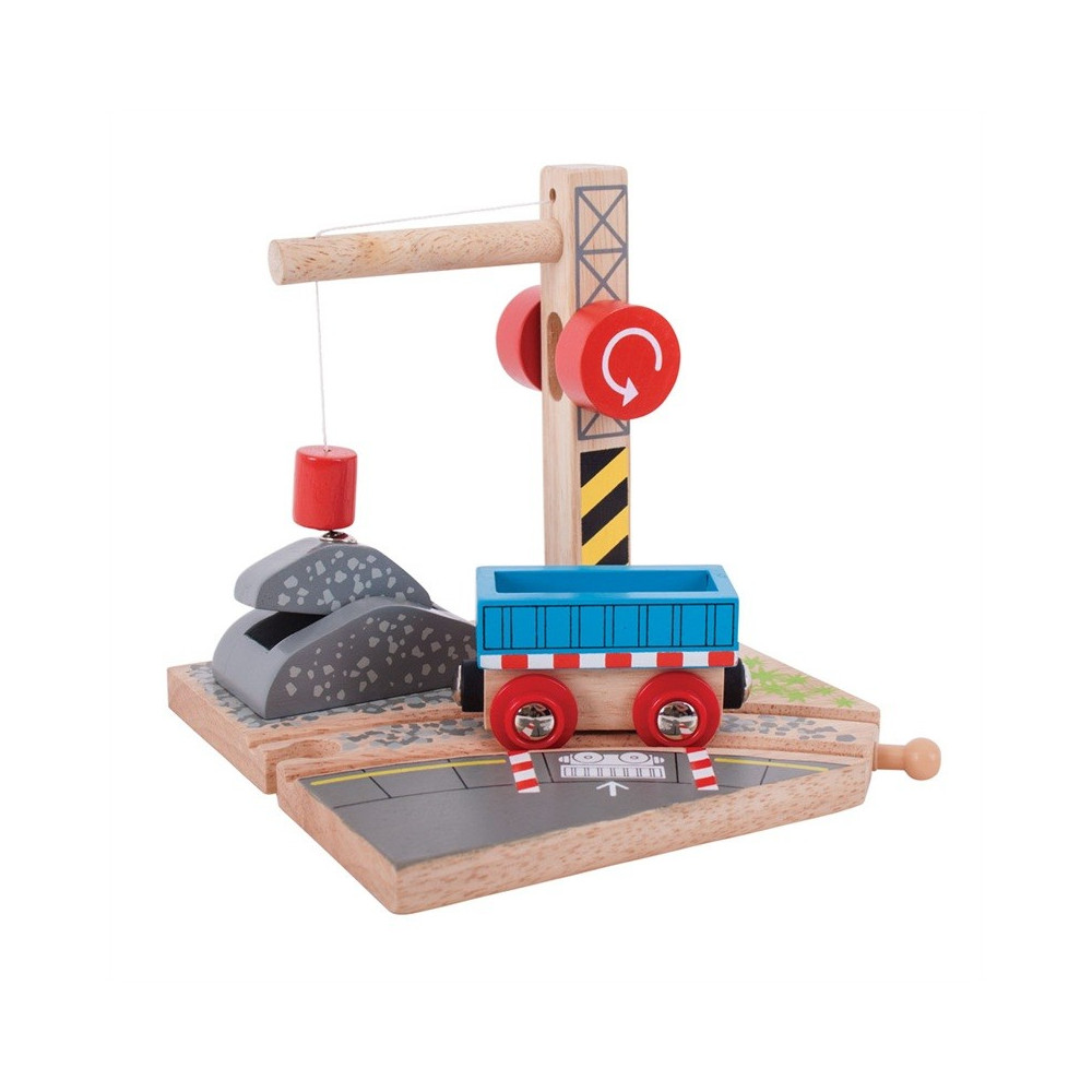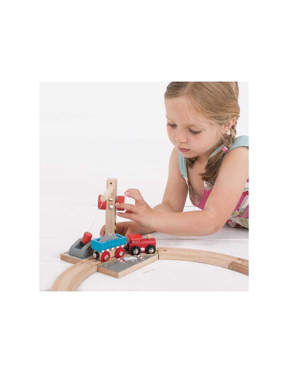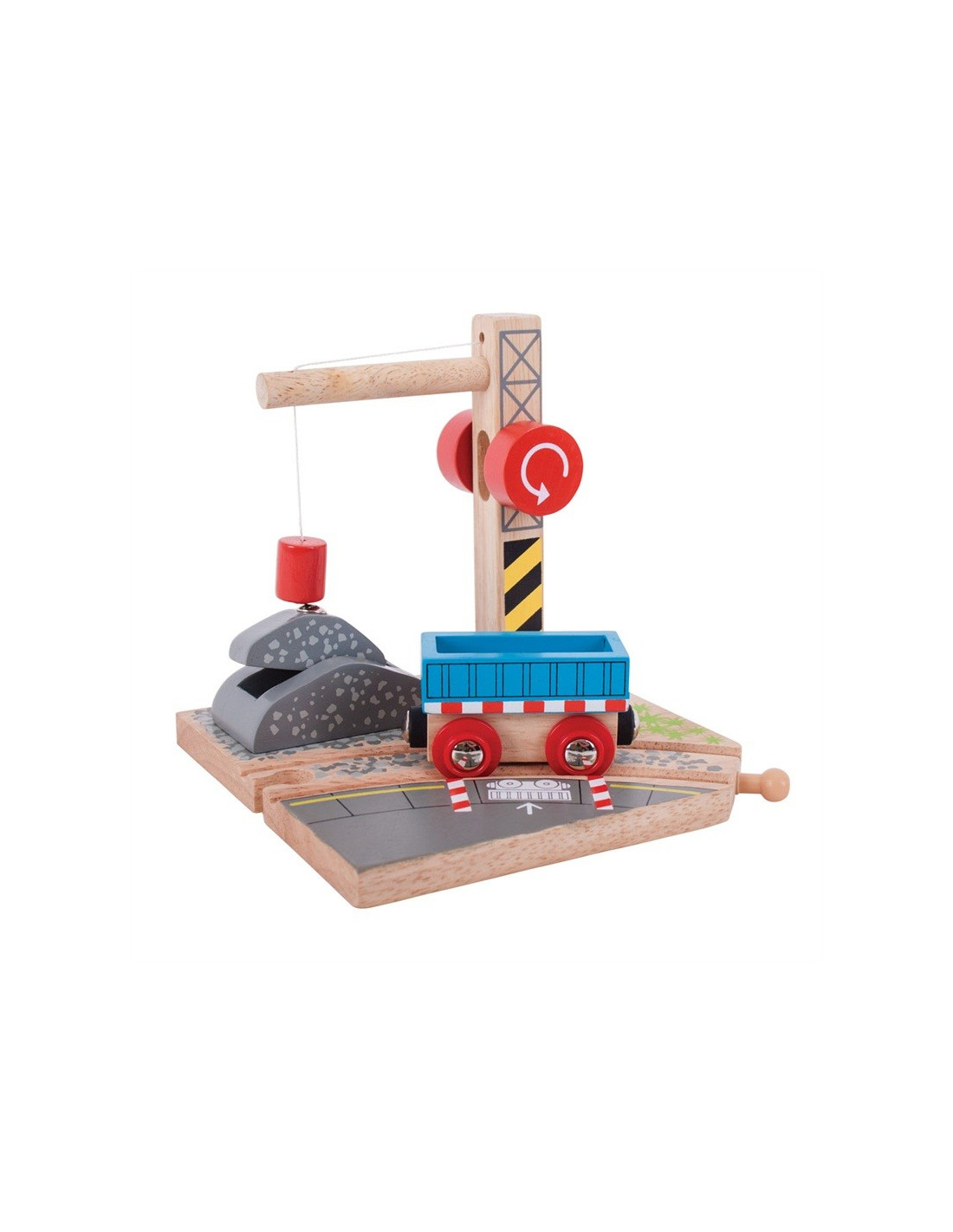Met behulp van de Bigjigs Grindkraan laad je de wagon vol met grindblokken en vervoer je ze per trein naar de plek van bestemming.