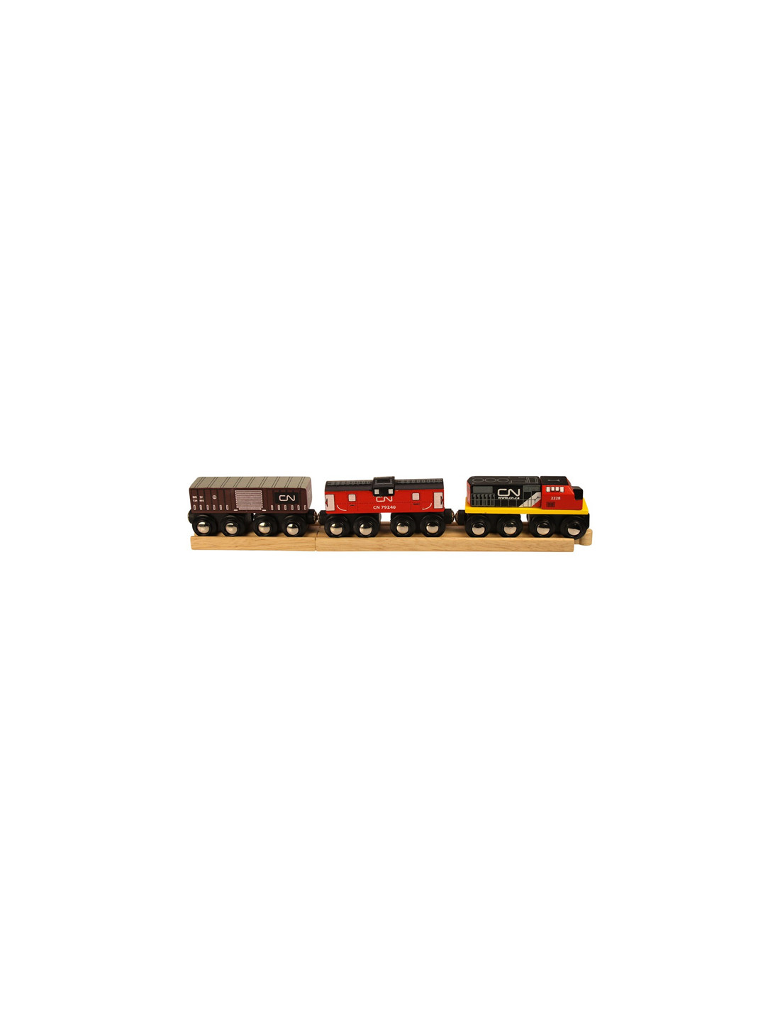 Het merk BigJigs heeft een mooi uitgevoerd houten treinprogramma dat zeer compleet is. Het sluit prima aan op treinsystemen van andere fabrikanten. Dit product bestaat uit een CN Trein.