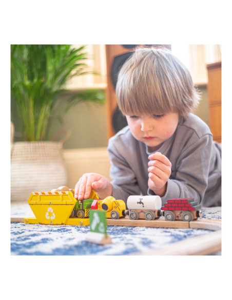 - Inclusief: 1x groene speelgoedtrein, 2x verwijderbare ladingen, 3x rijtuigen.