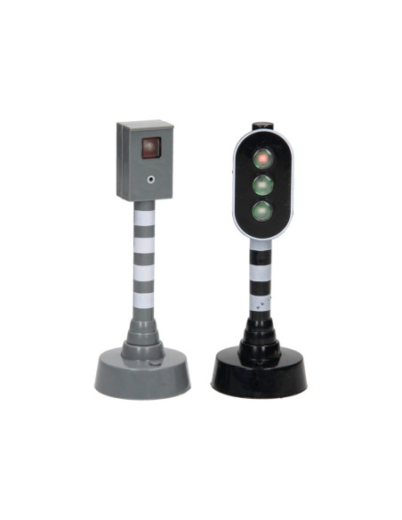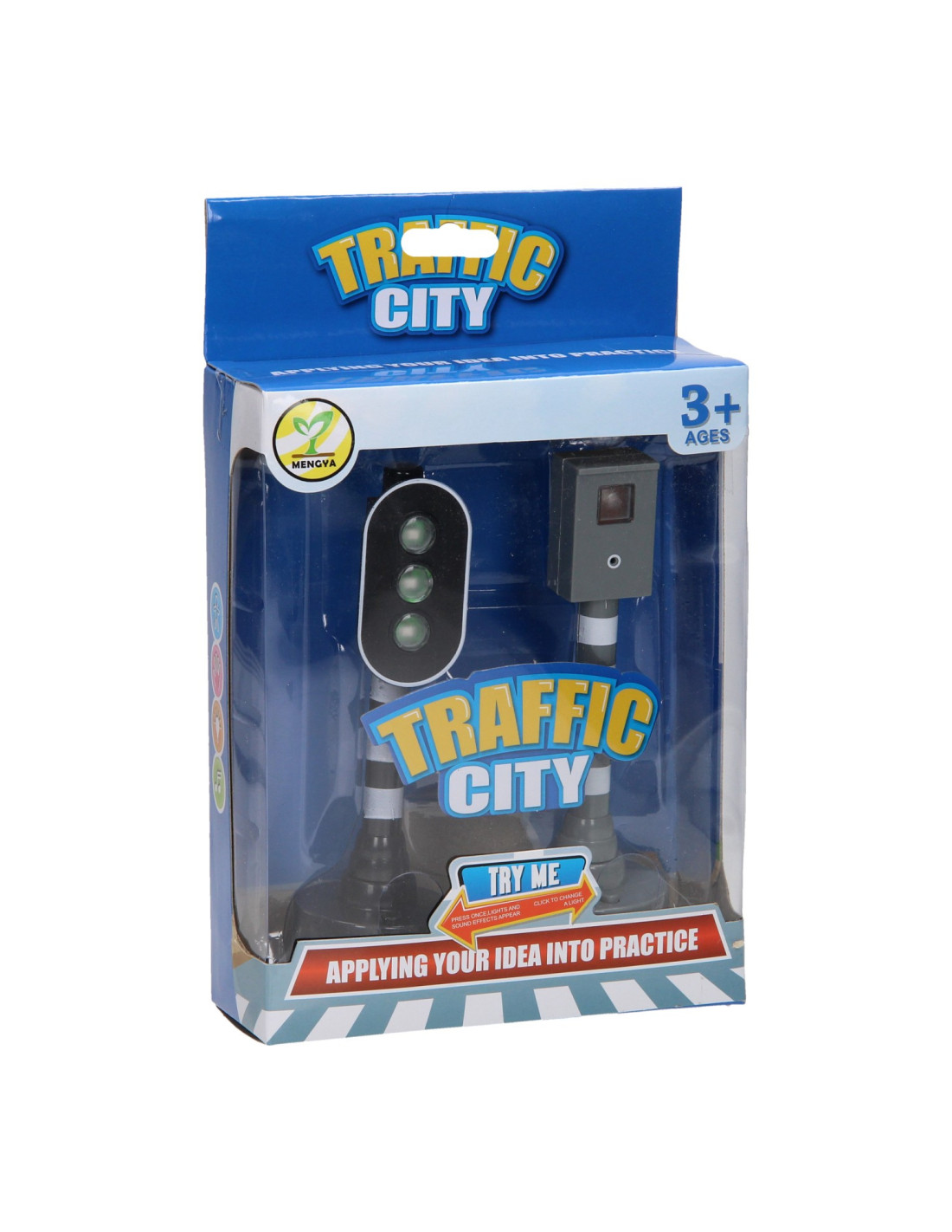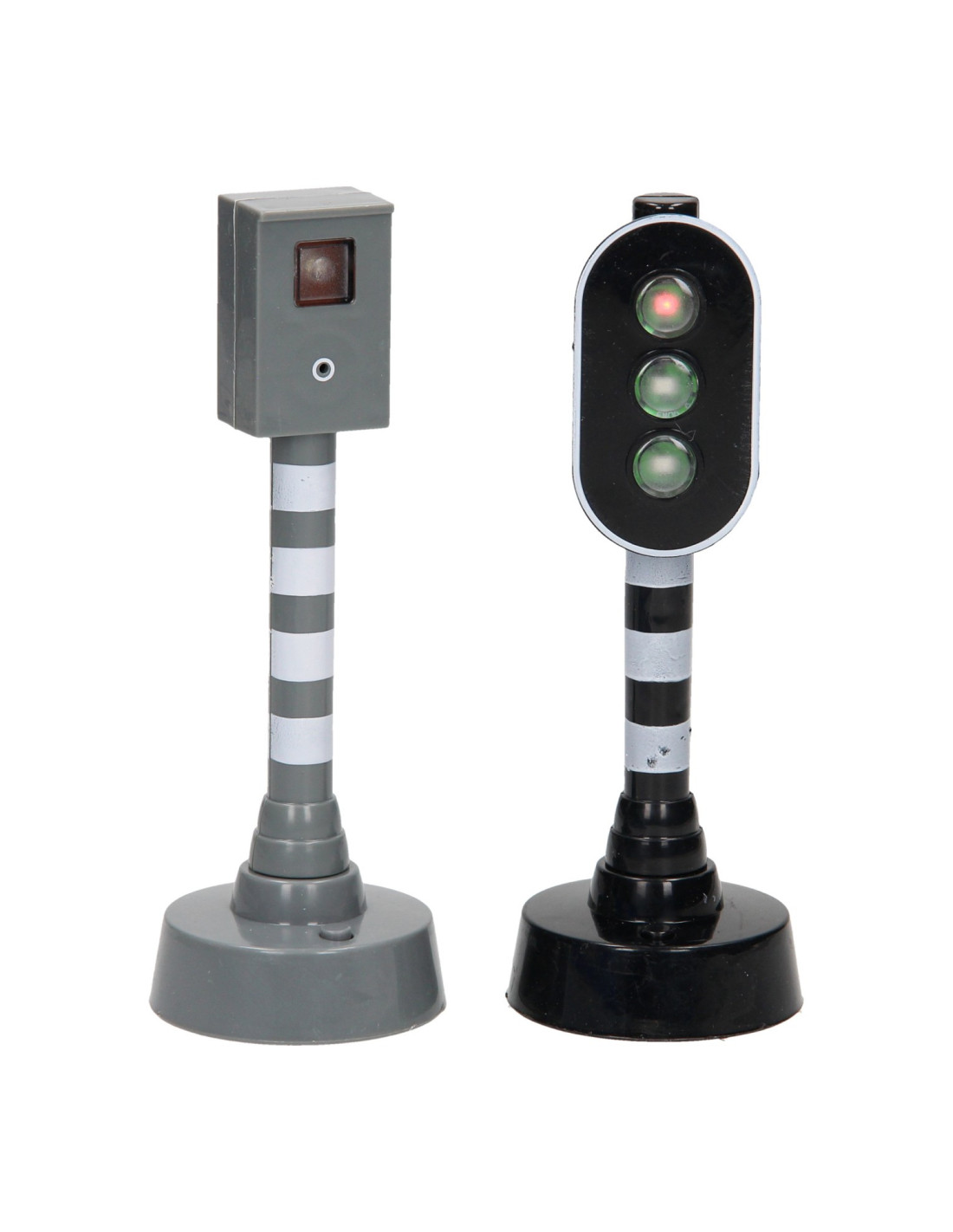 Dankzij het verkeerslicht en de flitspaal kunnen jouw autootjes nu veilig over straat. Beide hebben een lengte van 15 centimeter en geven echt licht. Druk op de knoppen en laat het verkeerslicht van rood, naar oranje naar groen springen en het flitslicht flitsen en geluid maken. Het Verkeerslicht en de Flitspaal werken allebei op 2 knoopcelbatterijen. Inclusief batterijen. Geschikt vanaf drie jaar.