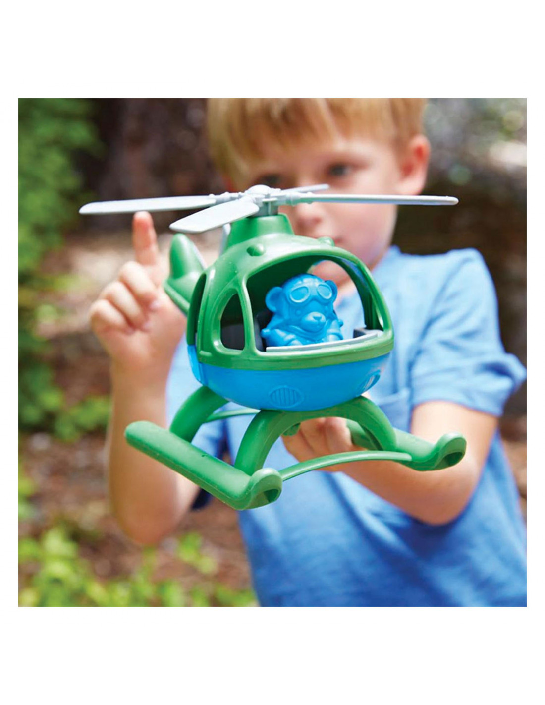 Onhoog en weg! Deze hoogvliegende Green Toys Helikopter is klaar voor actie! Deze milieuvriendelijke speelgoedhelikopter voor kinderen heeft twee draaiende rotors en gestroomlijnde glijders aan de onderkant voor gemakkelijke landingen.