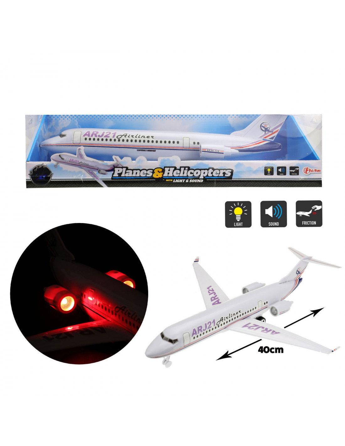 Passagiersvliegtuig met frictie + licht- en geluidseffecten.
