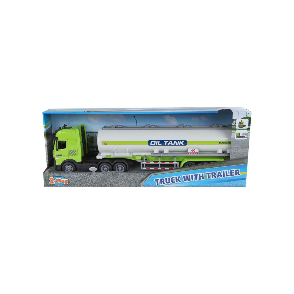 2-Play Vrachtwagen met tank-oplegger frictie, licht en geluid, 38 cm.