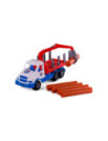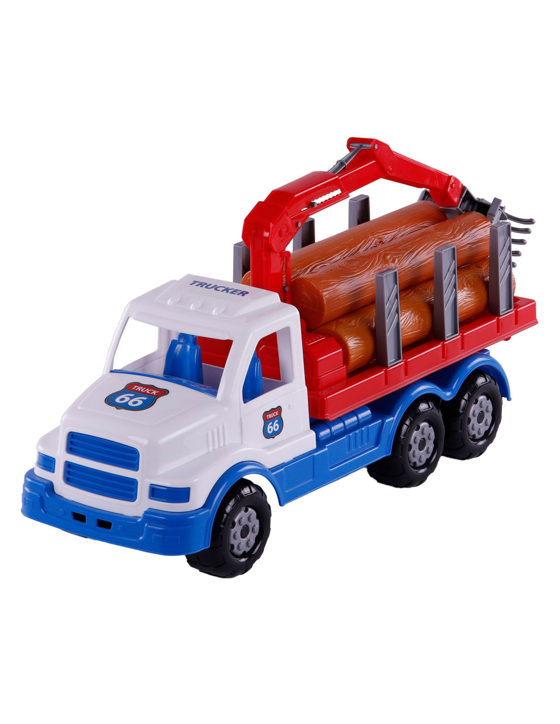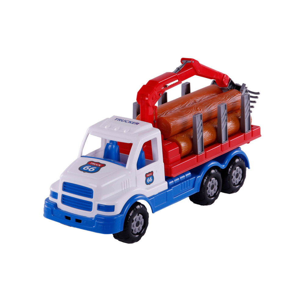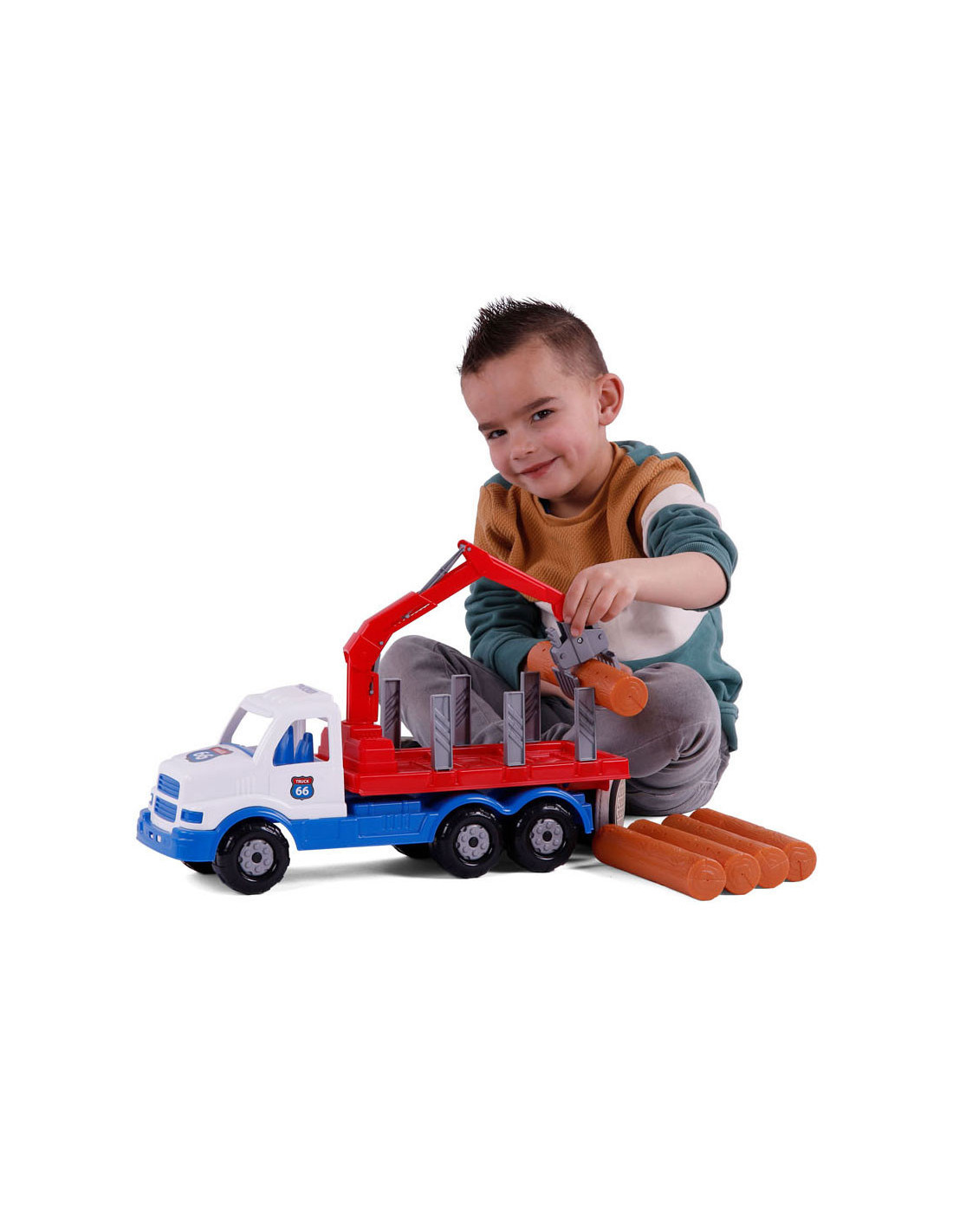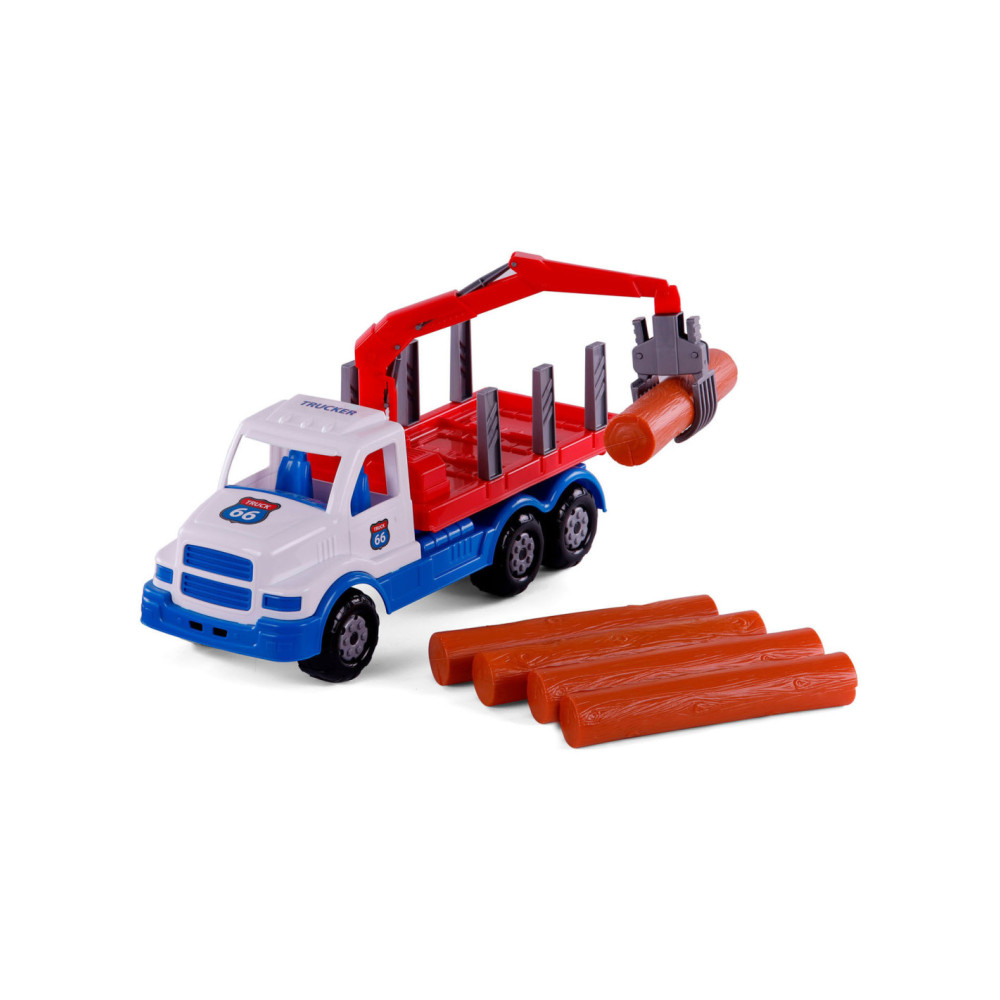 Deze grote vrachtwagen vervoert grote boomstammen! Met de grijparm tilt hij de boomstammen moeiteloos van de grond en laadt hij ze in zijn aanhanger. Wanner ze op de plaats van bestemming zijn gekomen, laadt hij de boomstammen weer uit. Extra leuk met de andere voertuigen uit deze serie van Cavallino. De boomstammen passen ook in de kiepbak van de XL Torpedo Tipper Truck (artikelcode 1450853)