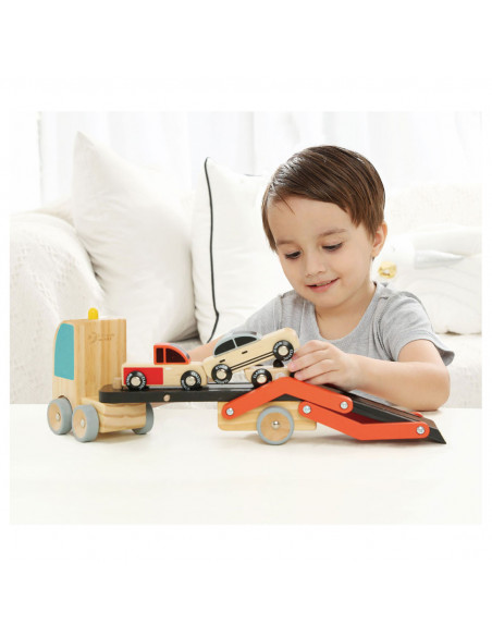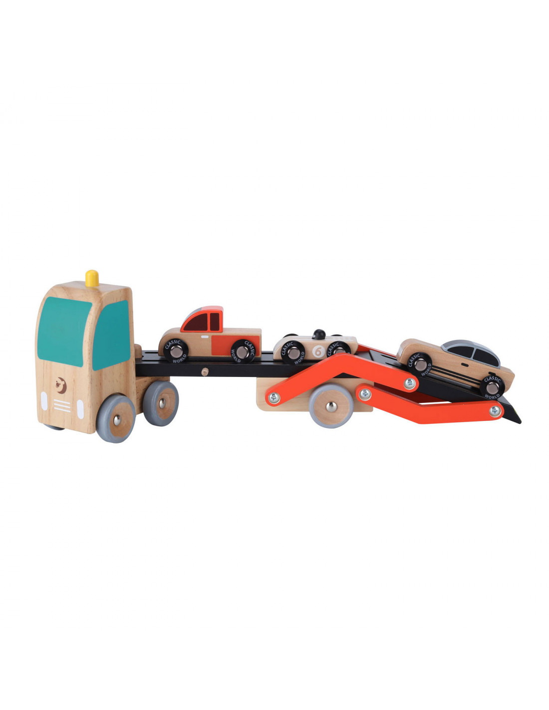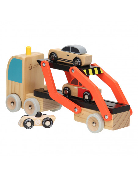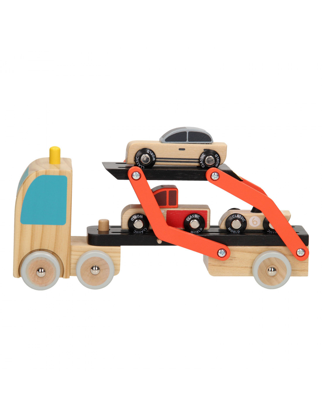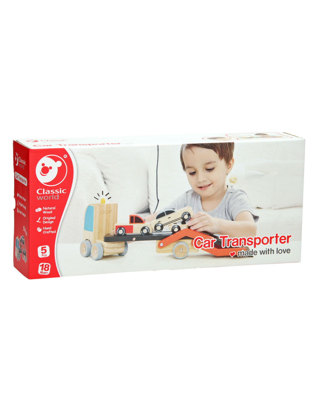 Verplaats auto’s en andere voertuigen met deze Houten Autotransporter van Classic World. Laad de auto op de wagen en rijd het avontuur tegemoet! De transporter is gemaakt van prachtig afgewerkt hout. Inclusief 3 houten auto's. Geschikt vanaf 18 maanden.