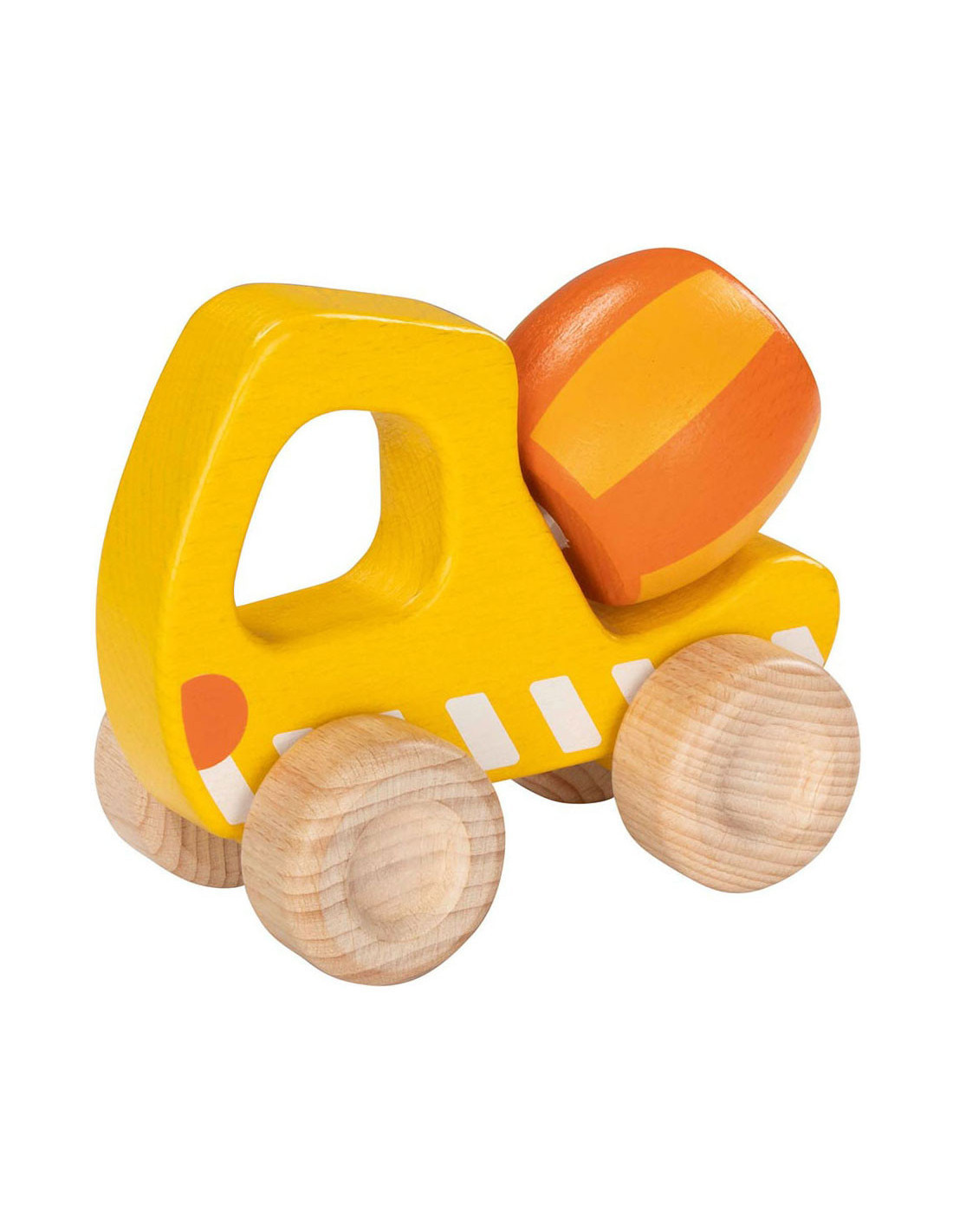 Goki houten duwauto in de vorm van een cementmixer. Afmetingen: 13 x 6 x 10 centimeter. Geschikt vanaf 24 maanden.