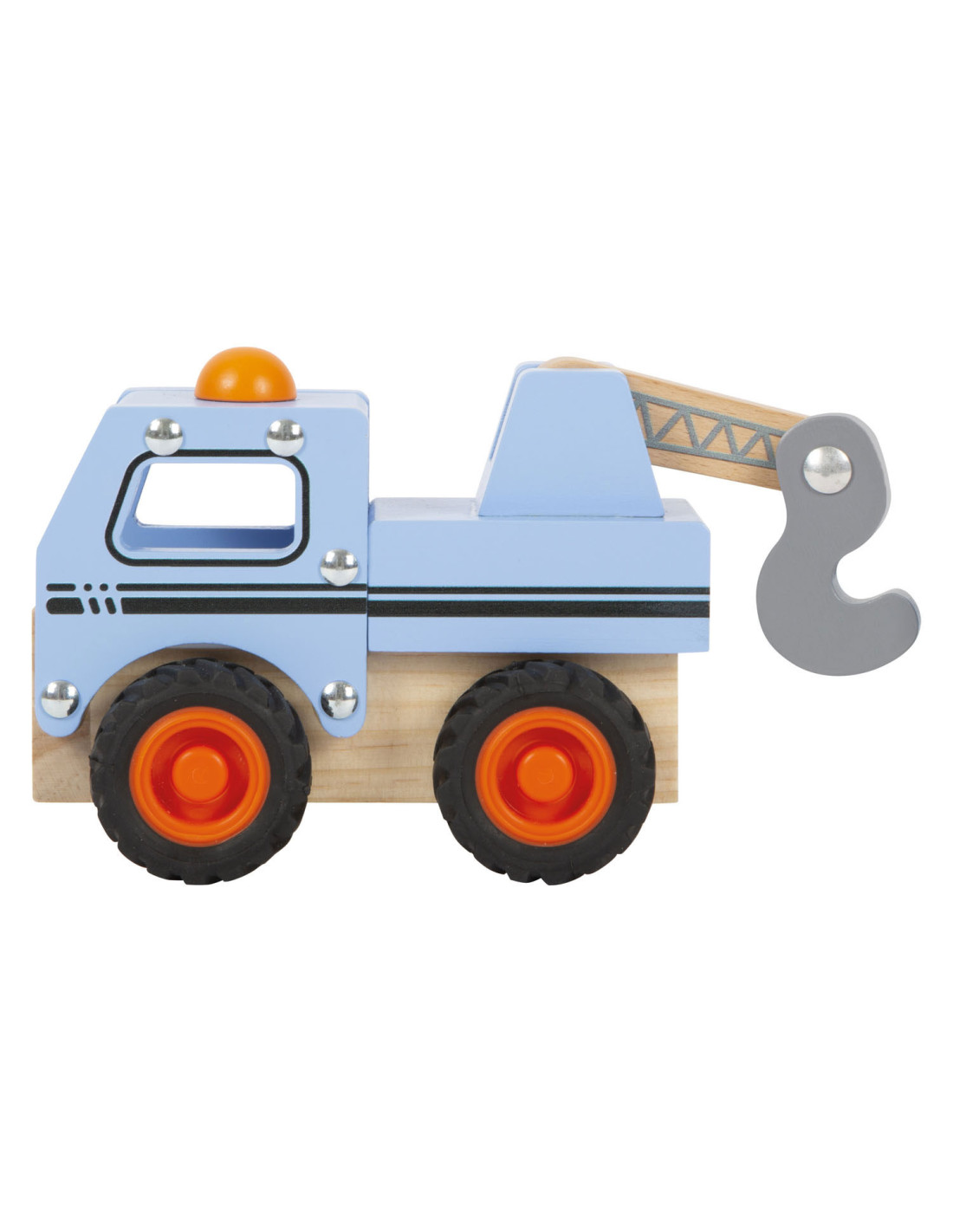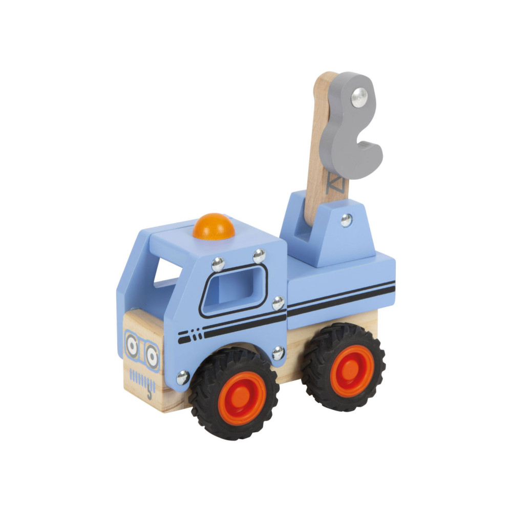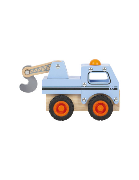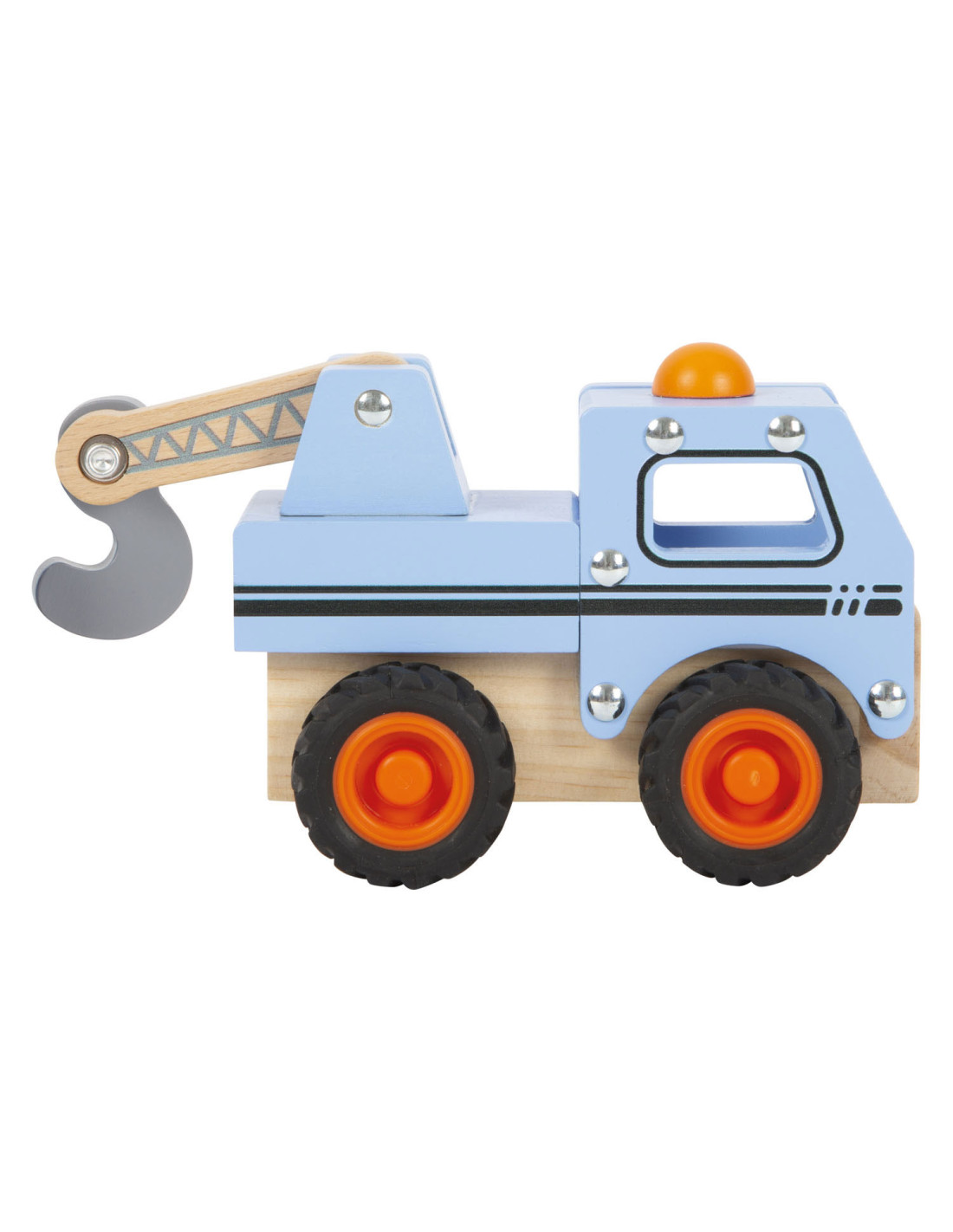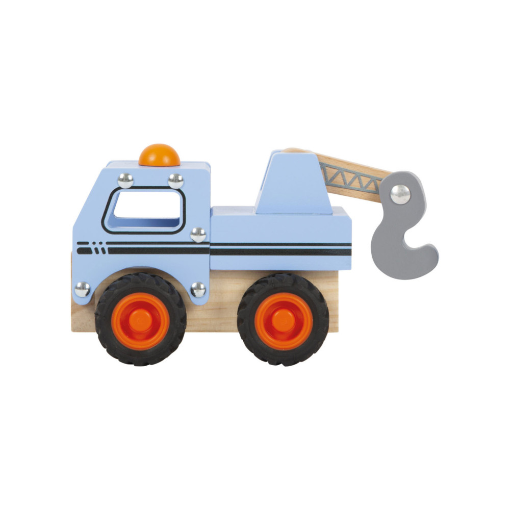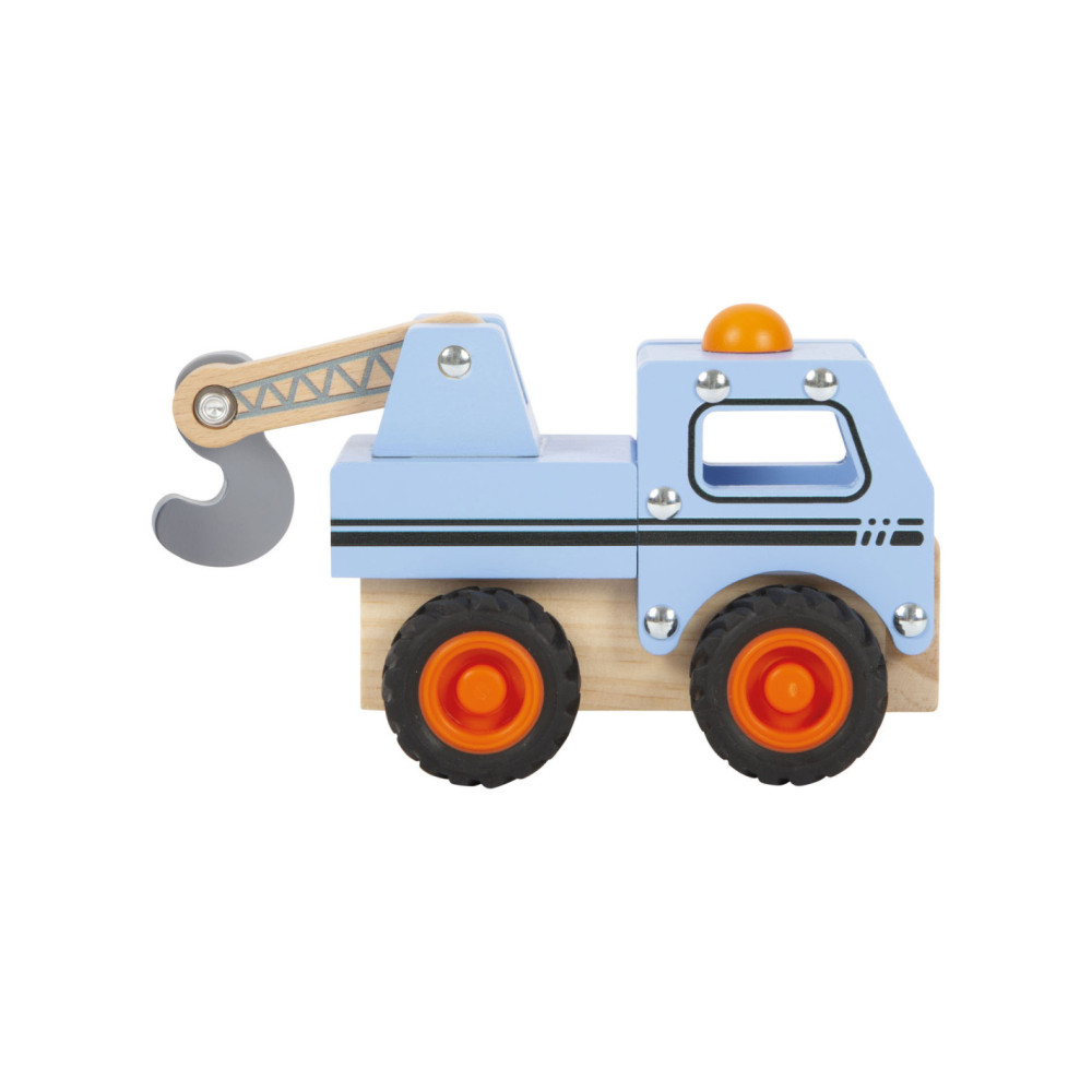 Deze sleepwagen van 100% FSC®-gecertificeerd hout staat op robuuste, rubberen wielen klaar voor actie als de volgende sleepklus zich aandient. Uitgerust met een bewegende autolaadkraan met een haak die als sleepuitrusting kan worden gebruikt, zijn er volop mogelijkheden voor creatief en realistisch rollenspel in de kinderkamer. Dankzij de afgeronde randen en de raamopeningen is hij ook voor kleine kinderhandjes gemakkelijk vast te pakken en te verplaatsen. Perfect voor jonge vrachtwagenfans!