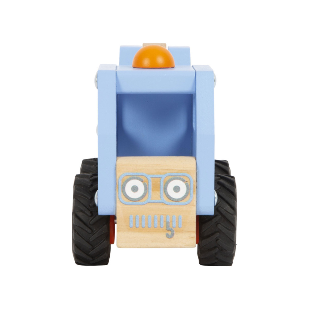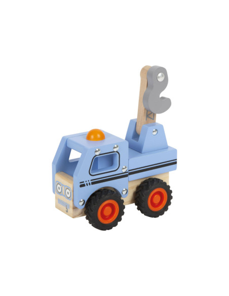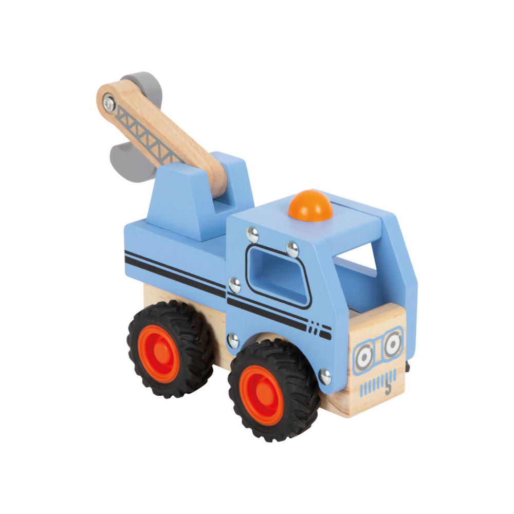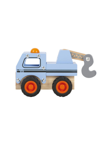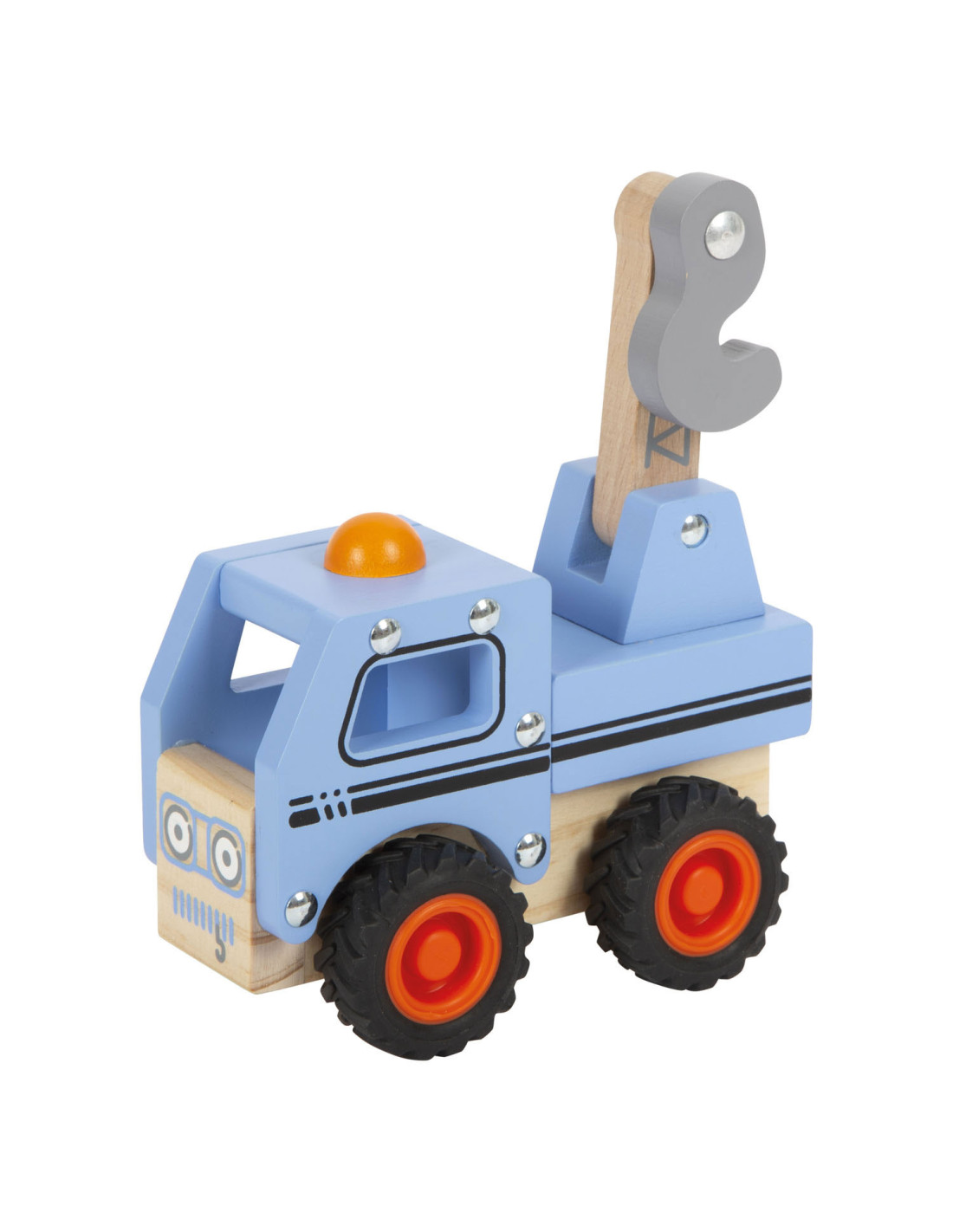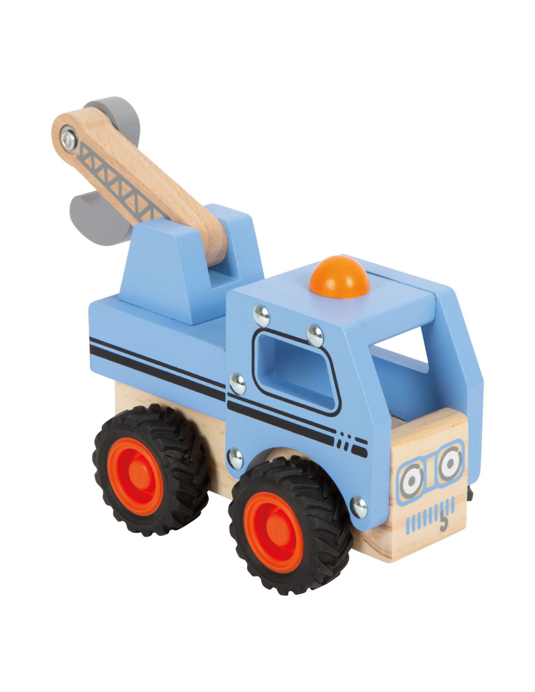 Deze sleepwagen van 100% FSC®-gecertificeerd hout staat op robuuste, rubberen wielen klaar voor actie als de volgende sleepklus zich aandient. Uitgerust met een bewegende autolaadkraan met een haak die als sleepuitrusting kan worden gebruikt, zijn er volop mogelijkheden voor creatief en realistisch rollenspel in de kinderkamer. Dankzij de afgeronde randen en de raamopeningen is hij ook voor kleine kinderhandjes gemakkelijk vast te pakken en te verplaatsen. Perfect voor jonge vrachtwagenfans!