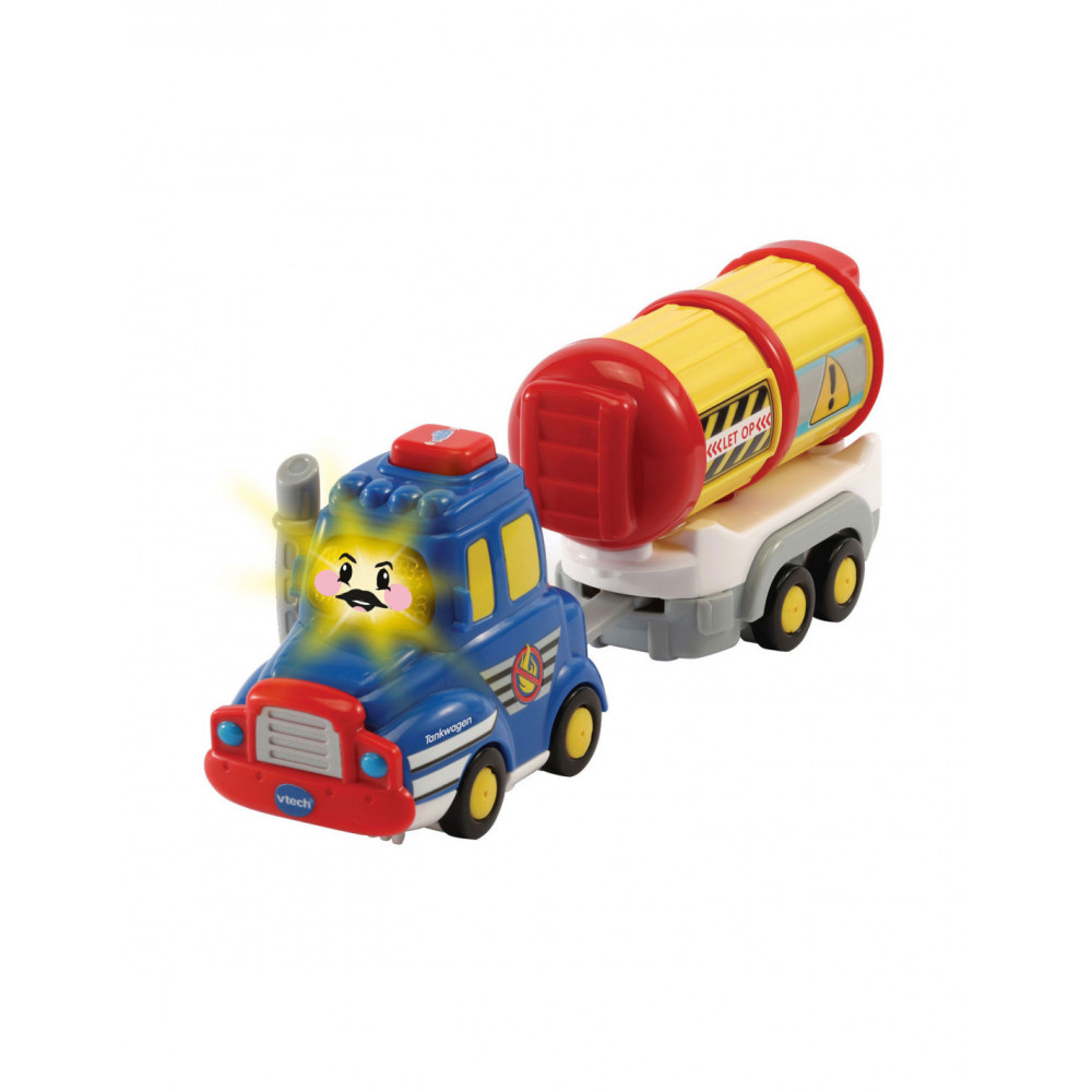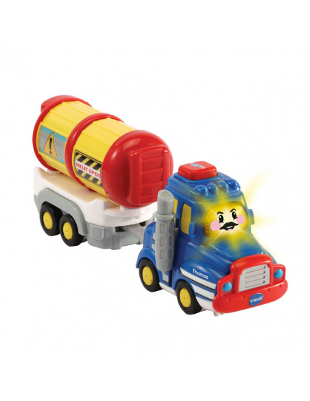 Rijden en leren met de Toet Toet Auto's! Druk op de knipperende gezicht-toets om geluidseffecten, vrolijke zinnetjes en gezongen liedjes te horen. Druk op de actie-toets om de uitlaat te bewegen en grappige geluidjes te horen. Kom mee en ga samen met Thomas Tankwagen de brandstof leveren!