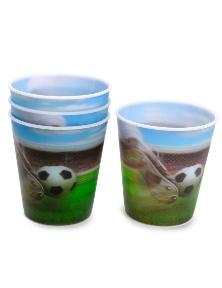 Set van 4 holografische kunststof voetbal bekers.