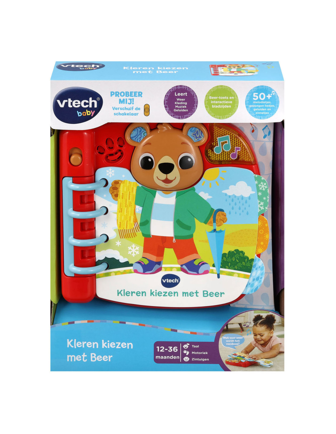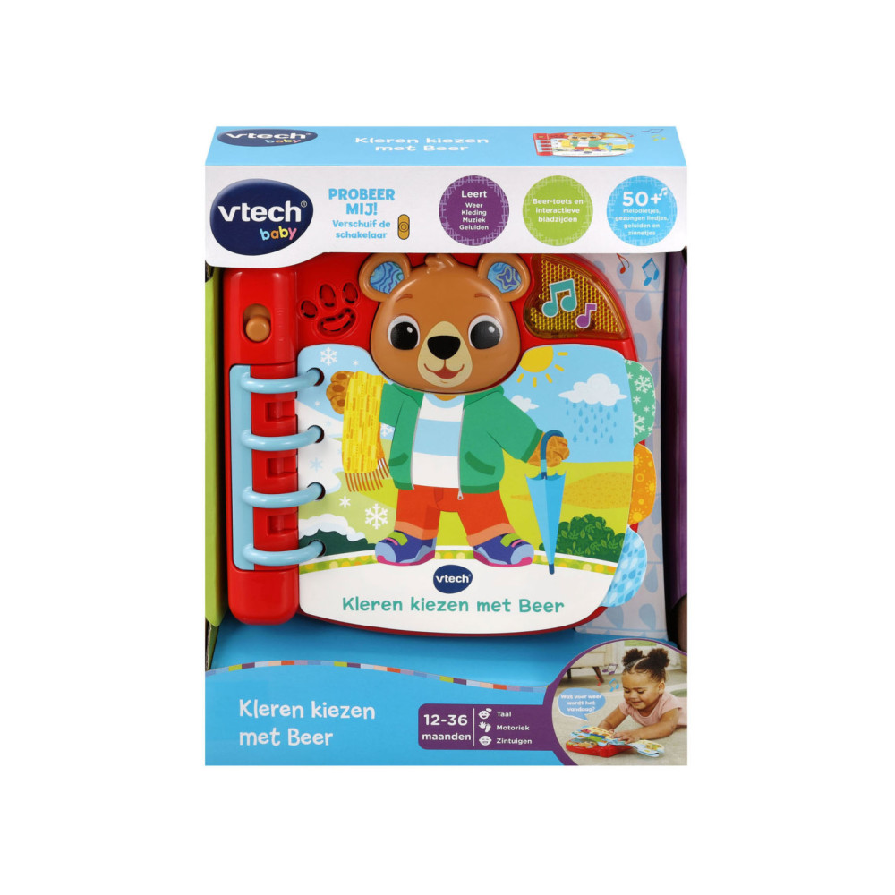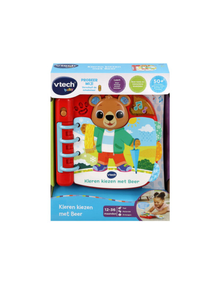 Het vrolijke boekje 'Kleren kiezen met Beer' laat kleintjes spelenderwijs kennismaken met weersomstandigheden en de kleding die daarbij past. Sla de bladzijden om en luister naar de vrolijke reacties. Druk op de beer-toets om grappige zinnetjes, gezongen liedjes en melodietjes te horen op elke bladzijde. Open het boek en ga op ontdekking!