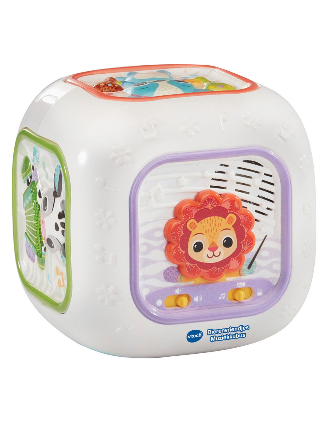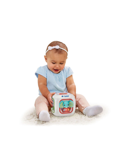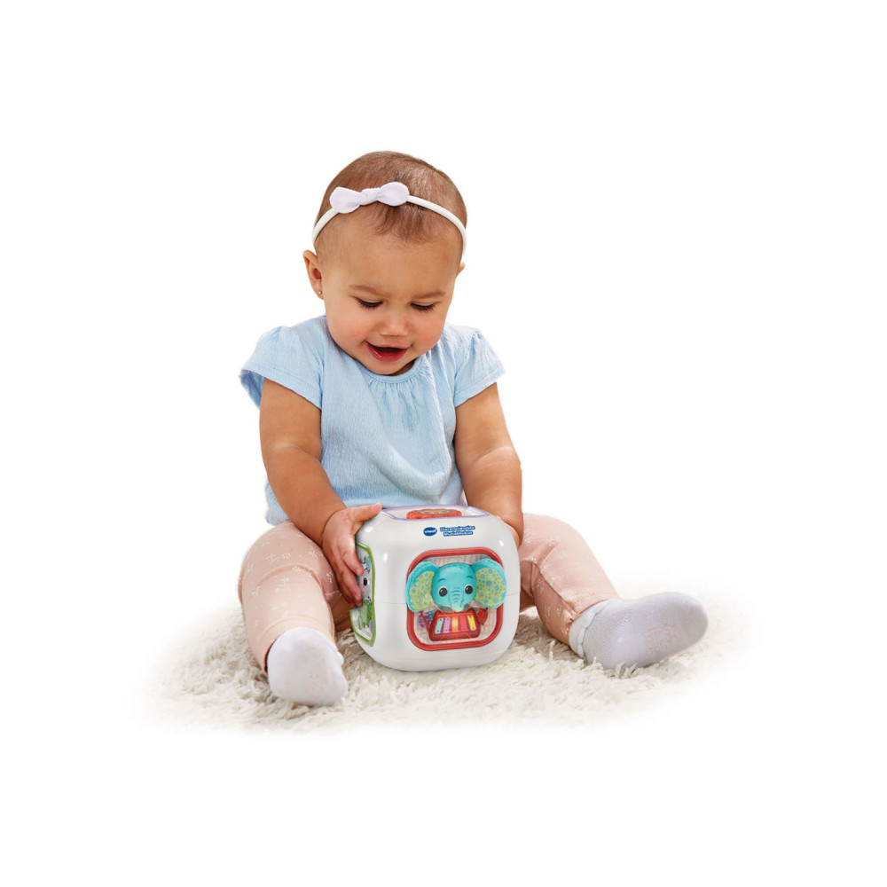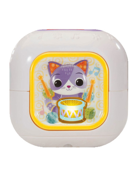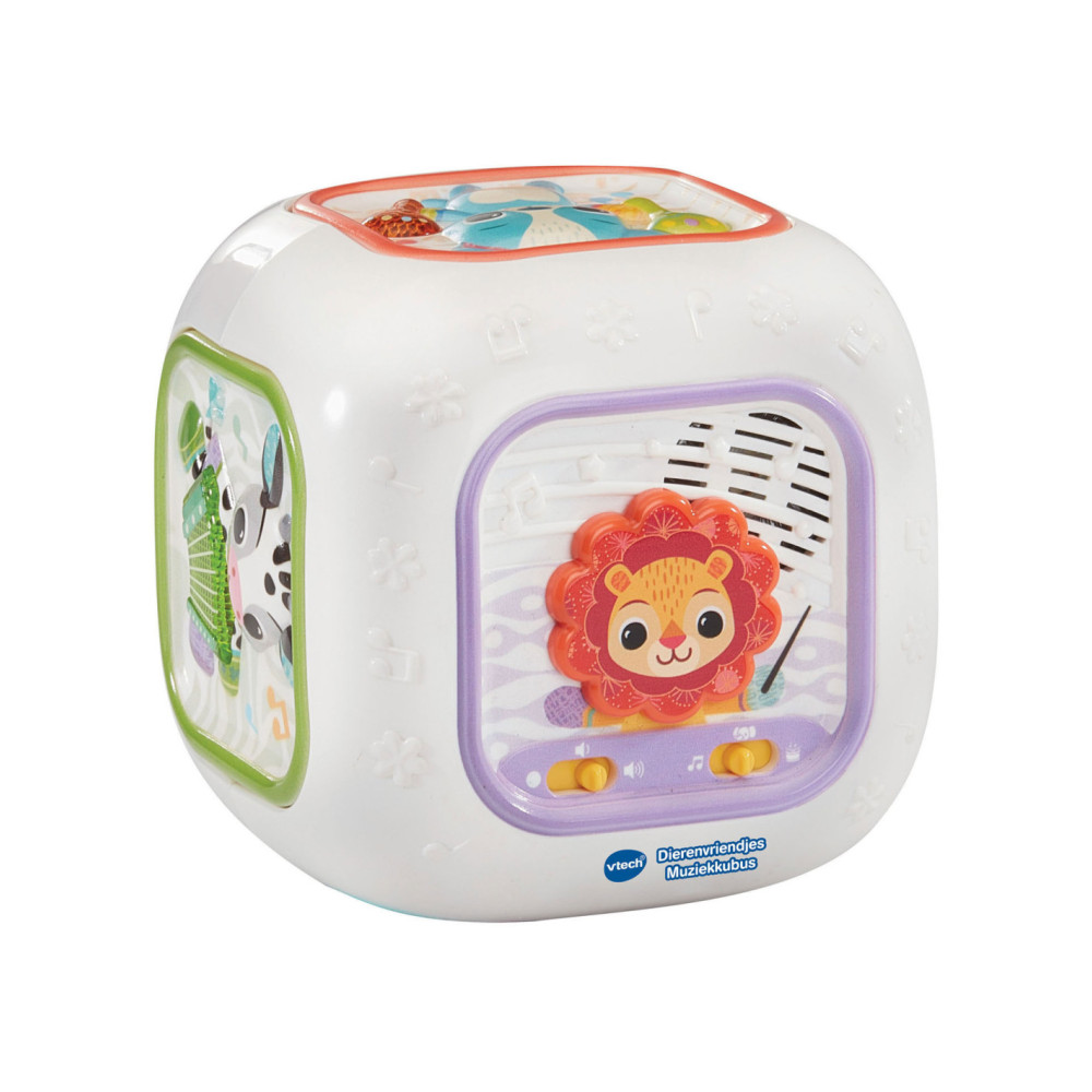 Laten we muziek maken! Druk op de toetsen van deze muzikale kubus en maak kennis met dieren, muziekinstrumenten en (klassieke) muziek. Voeg instrumenten of geluiden toe aan een melodie, luister naar de vrolijk gezongen liedjes en ontdek de verschillende texturen van de kubus. Elke kant is interessant!