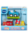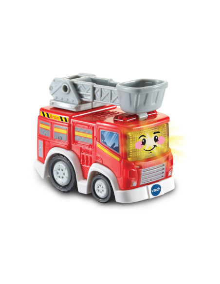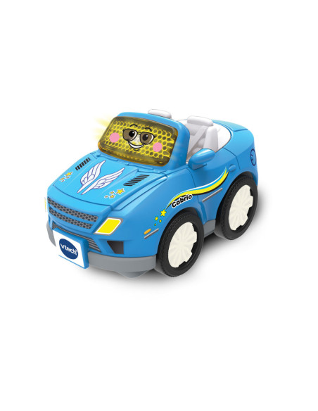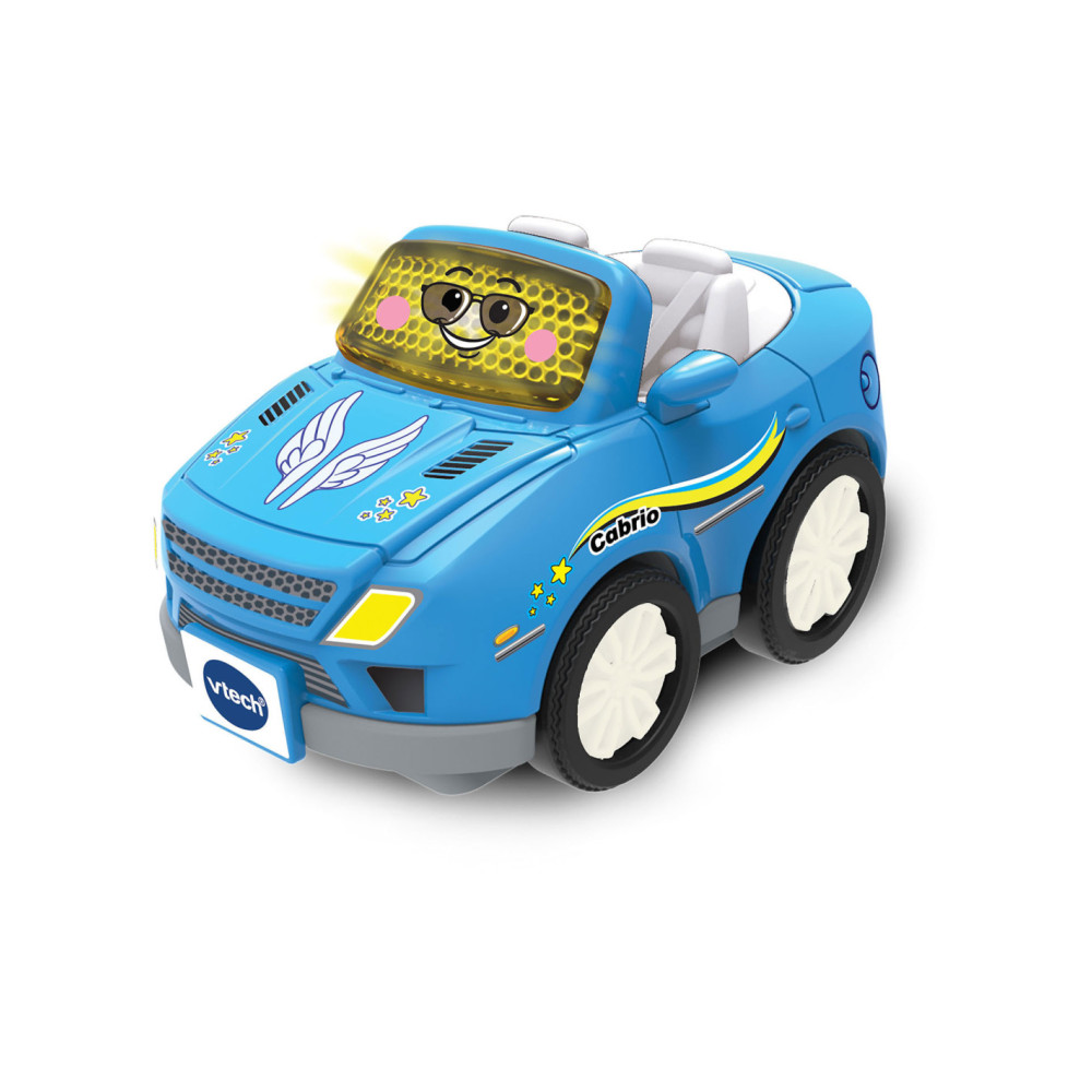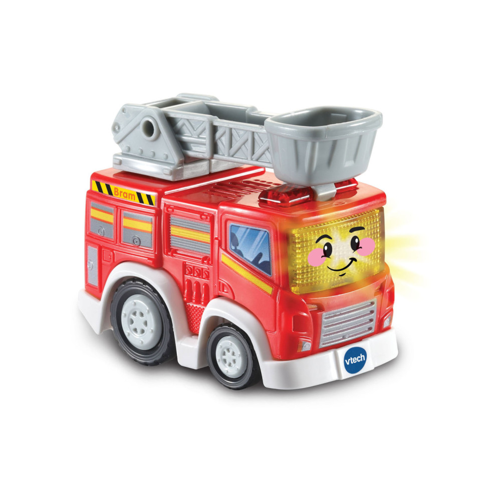 Druk op de knipperende gezicht-toets om geluidseffecten, vrolijke zinnetjes en gezongen liedjes te horen. Beweeg handmatig het beweegbare onderdeel van het voertuig om vrolijke zinnetjes en grappige geluiden te horen. Kom mee en ga samen met Collin Cabrio, Sepp Cementwagen en Bram Brandweer op avontuur in Toet Toet Stad!