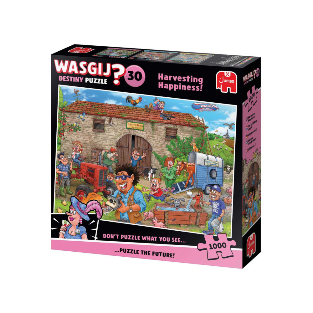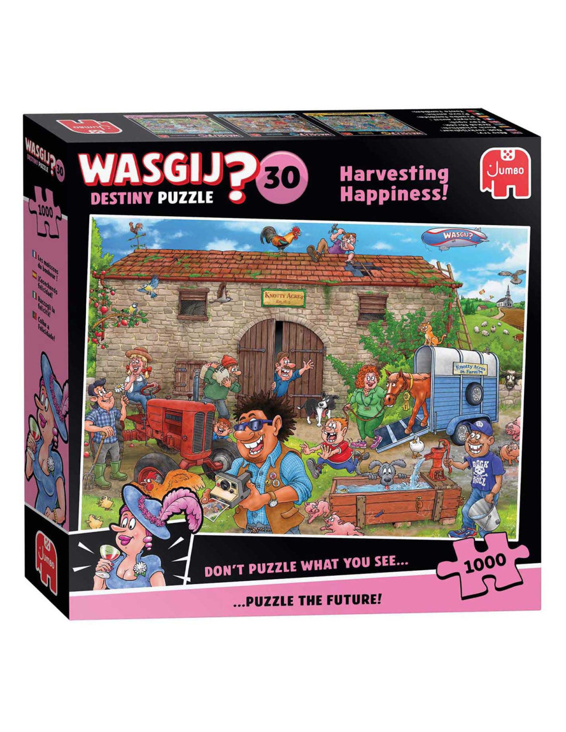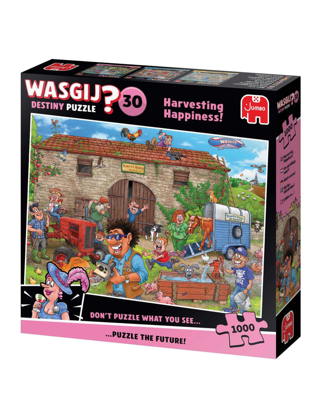 Welkom op de 'Knotty Acres' boerderij, waar de hanen kraaien, de tractoren over de akkers rijden en de oude schuur barst van de werktuigen, het veevoer en de nieuwsgierige dieren. Het leven op de boerderij is een modderige en drukke bedoening, maar zit vol charme, sfeer en constante chaos. Net als de seizoenen verandert ook het leven op het platteland. Is deze oude schuur toe aan vernieuwing of zit er een heel ander soort verandering aan te komen? Neem een kijkje in de toekomst en stel je voor hoe deze boerderij er vandaag de dag uitziet. Dit is de afbeelding die je gaat puzzelen! Kenmerken: Legpuzzel van 1000 stukjes voor volwassenen Puzzel niet de afbeelding van de doos, maar gebruik je verbeelding om de Wasgij oplossing bij elkaar te puzzelen! Afmeting gelegde puzzel: 68 x 49 cm Over Wasgij Deze Wasgij legpuzzels van Jumbo zijn speciaal ontwikkelt voor volwassenen. Anders dan bij andere puzzels, maak je bij Wasgij niet een afbeelding van de doos na maar moet je zelf je fantasie gebruiken om de puzzelplaat compleet te maken! Er zijn drie verschillende concepten: Original, Mystery en Destiny. Bij Wasgij Destiny moet je de hints en je fantasie gebruiken om er achter te komen hoe de toekomst eruit zal zien!