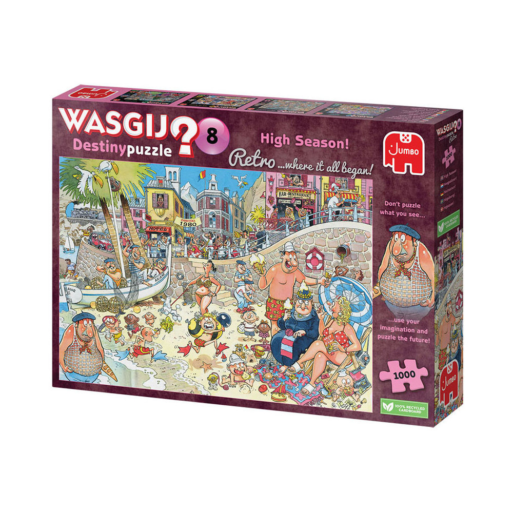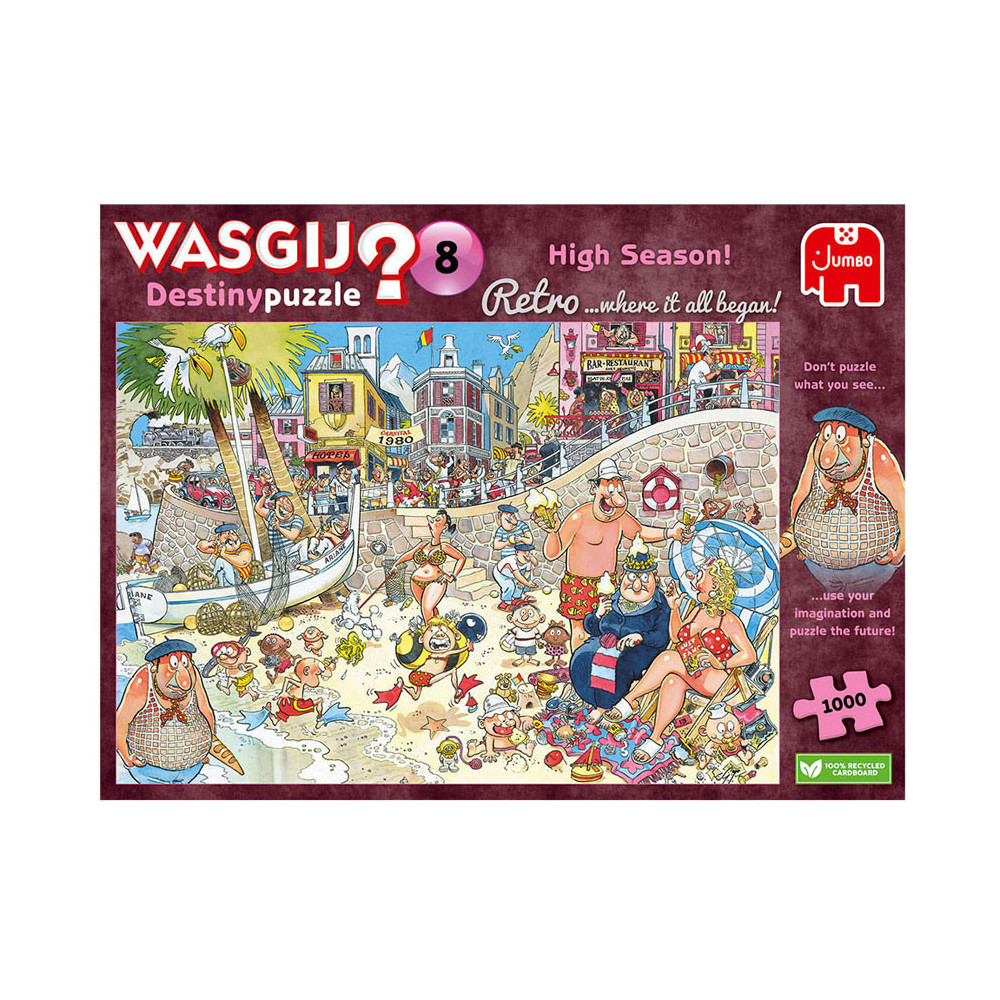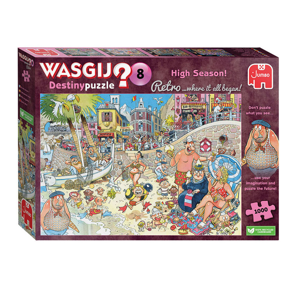 Kijk naar dit idyllische strand aan de middellandse zee in de jaren '80. Sommige dingen veranderen nooit, maar isalles op deze plek nog steeds zo rustgevend vandaag de dag? gebruik je verbeelding en nieuwsgierigheid om te ontdekken wat er zalgebeuren in de toekomst op de wasgij destinypuzzle. Probeer je in te beelden wat er door de tijd veranderd is; dat is het plaatje dat je moetpuzzelen. Kenmerken: - legpuzzel van 1000 stukjes voor volwassenen - puzzel niet de afbeelding van de doos, maar gebruik je verbeelding om de wasgij oplossing bij elkaar te puzzelen! - afmeting gelegde puzzel: 68 x 49 cm over wasgij deze wasgij legpuzzels van jumbo zijn speciaal ontwikkelt voor volwassenen. Anders dan bij andere puzzels, maak je bij wasgij niet een afbeelding van de doos na maar moet je zelf je fantasie gebruiken om de puzzelplaat compleet te maken! er zijn drie verschillende concepten: original, mystery en destiny. Bij wasgij destiny moet je de hints en je fantasie gebruiken om er achter te komen hoe de toekomst eruit zal zien!