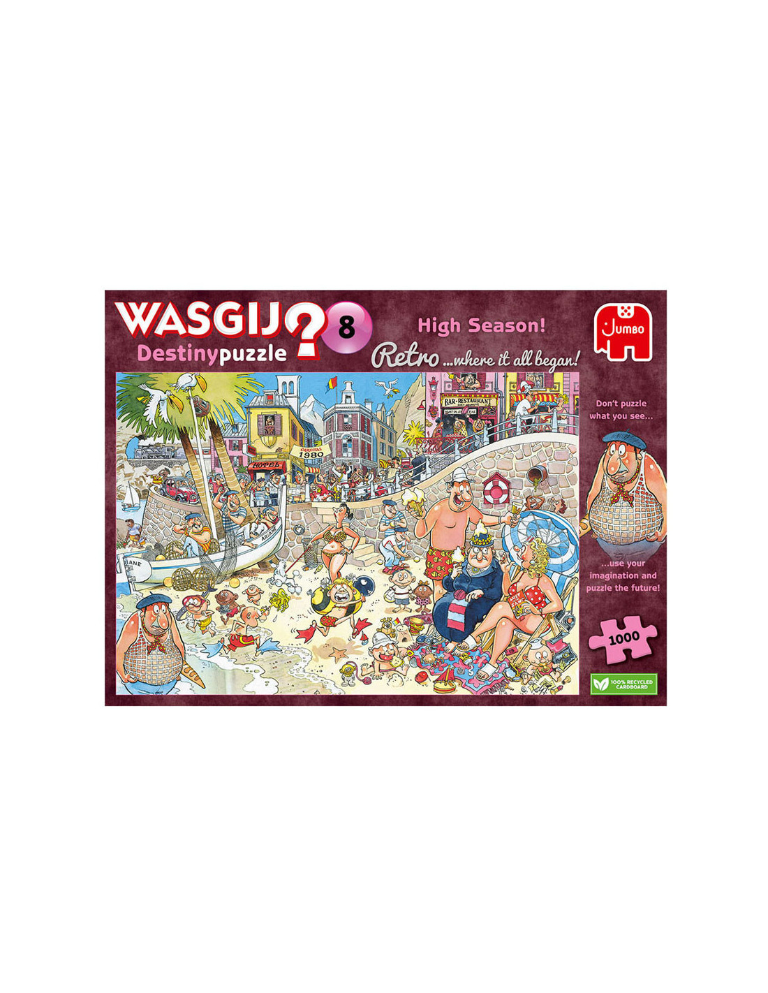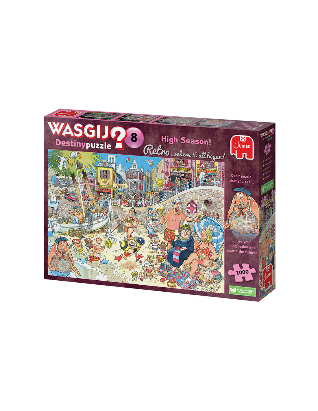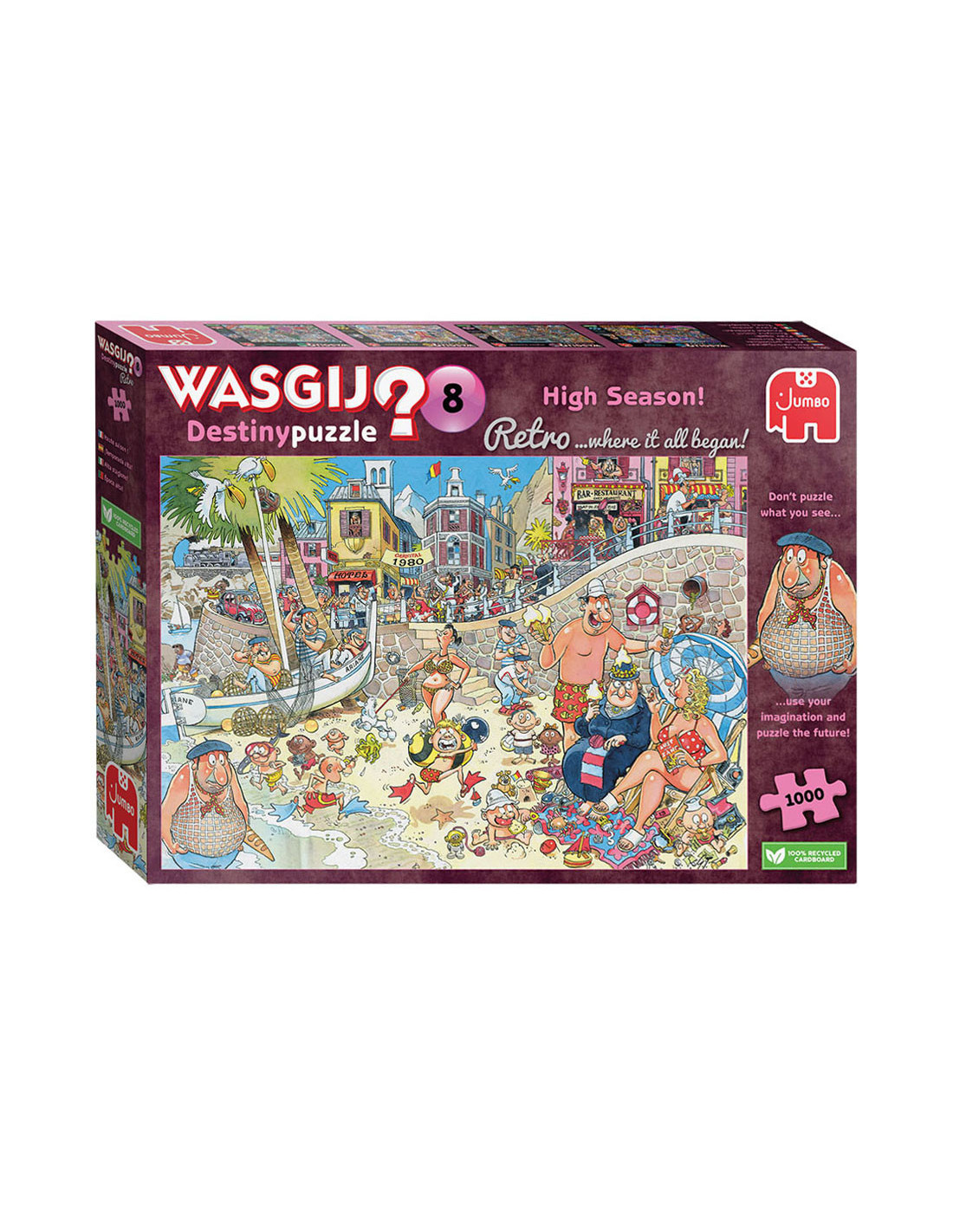 Kijk naar dit idyllische strand aan de middellandse zee in de jaren '80. Sommige dingen veranderen nooit, maar isalles op deze plek nog steeds zo rustgevend vandaag de dag? gebruik je verbeelding en nieuwsgierigheid om te ontdekken wat er zalgebeuren in de toekomst op de wasgij destinypuzzle. Probeer je in te beelden wat er door de tijd veranderd is; dat is het plaatje dat je moetpuzzelen. Kenmerken: - legpuzzel van 1000 stukjes voor volwassenen - puzzel niet de afbeelding van de doos, maar gebruik je verbeelding om de wasgij oplossing bij elkaar te puzzelen! - afmeting gelegde puzzel: 68 x 49 cm over wasgij deze wasgij legpuzzels van jumbo zijn speciaal ontwikkelt voor volwassenen. Anders dan bij andere puzzels, maak je bij wasgij niet een afbeelding van de doos na maar moet je zelf je fantasie gebruiken om de puzzelplaat compleet te maken! er zijn drie verschillende concepten: original, mystery en destiny. Bij wasgij destiny moet je de hints en je fantasie gebruiken om er achter te komen hoe de toekomst eruit zal zien!
