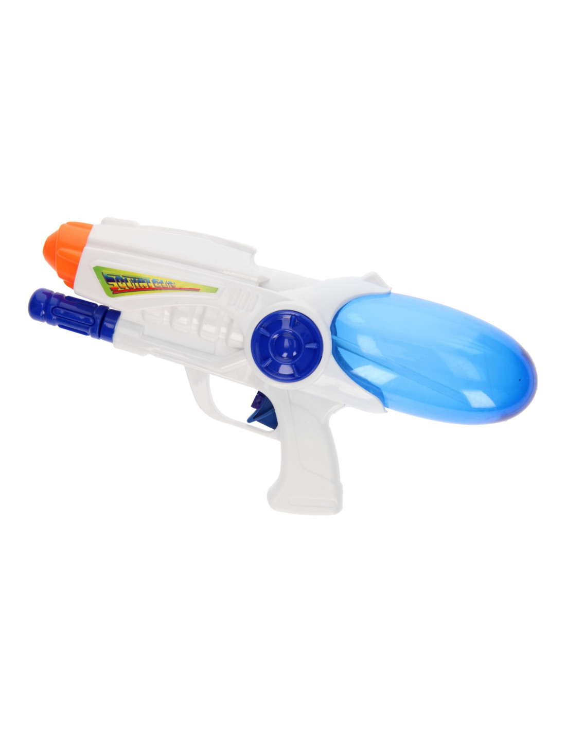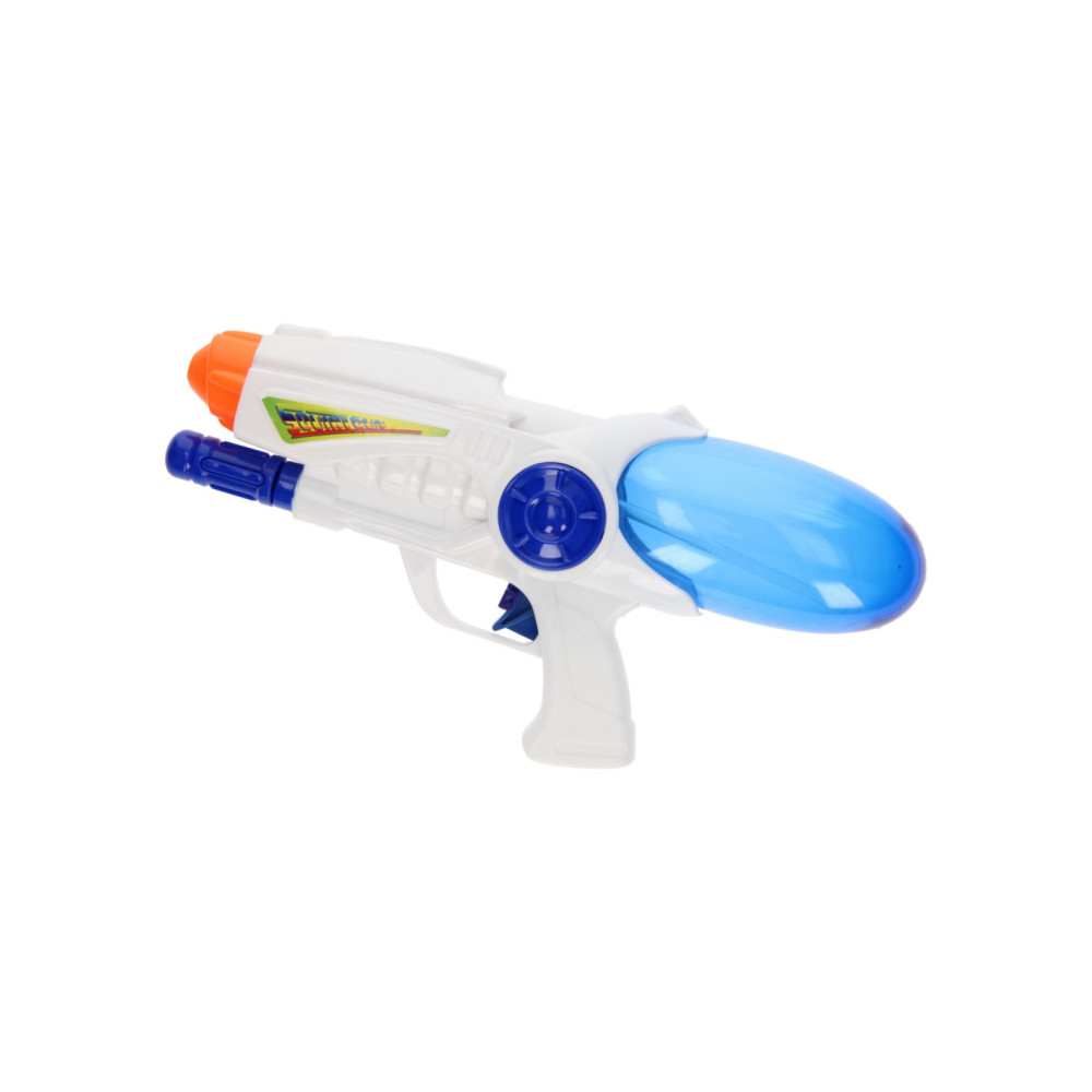 Vul het waterpistool met water, even pompen en spuiten maar! Dankzij de doorzichtige koker kun je precies zien hoeveel water je nog hebt. Super handig! Met wie start jij een watergevecht?