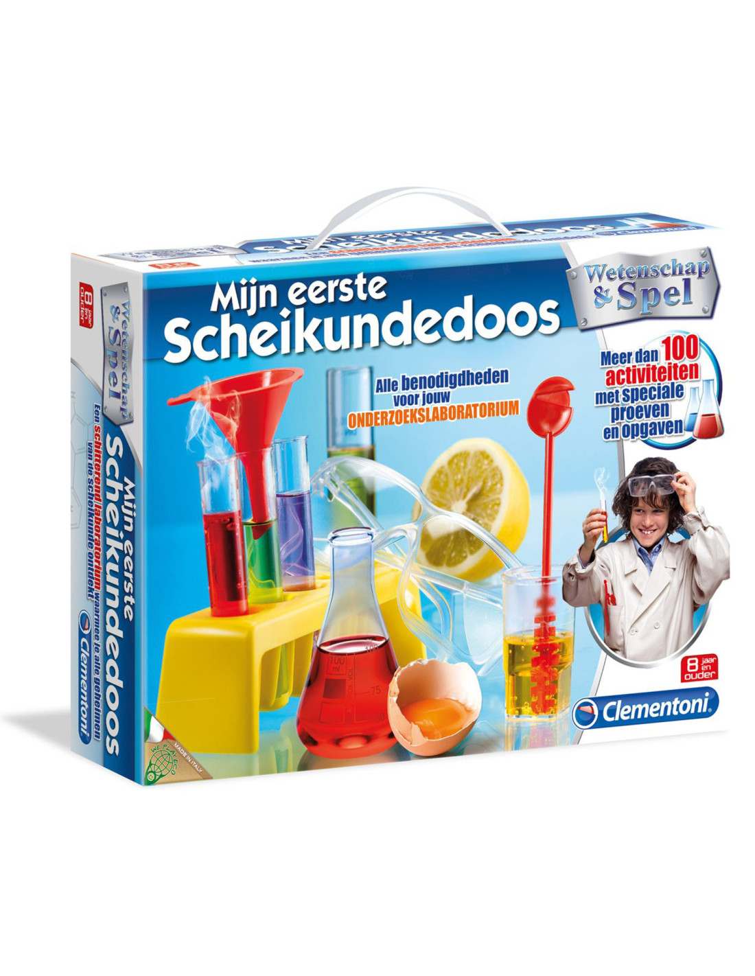 Wordt een echte wetenschapper met deze scheikundedoos. In deze doos zit alles wat jij nodig hebt voor jouw eigen onderzoekslaboratorium! Zo leer en ontdek jij de geheimen van de scheikunde. De geïllustreerde handleiding begeleidt je tijdens de proeven en opgaven, zo weet je zeker dat het goed gaat. In deze doos zitten meer dan 100 activiteiten!